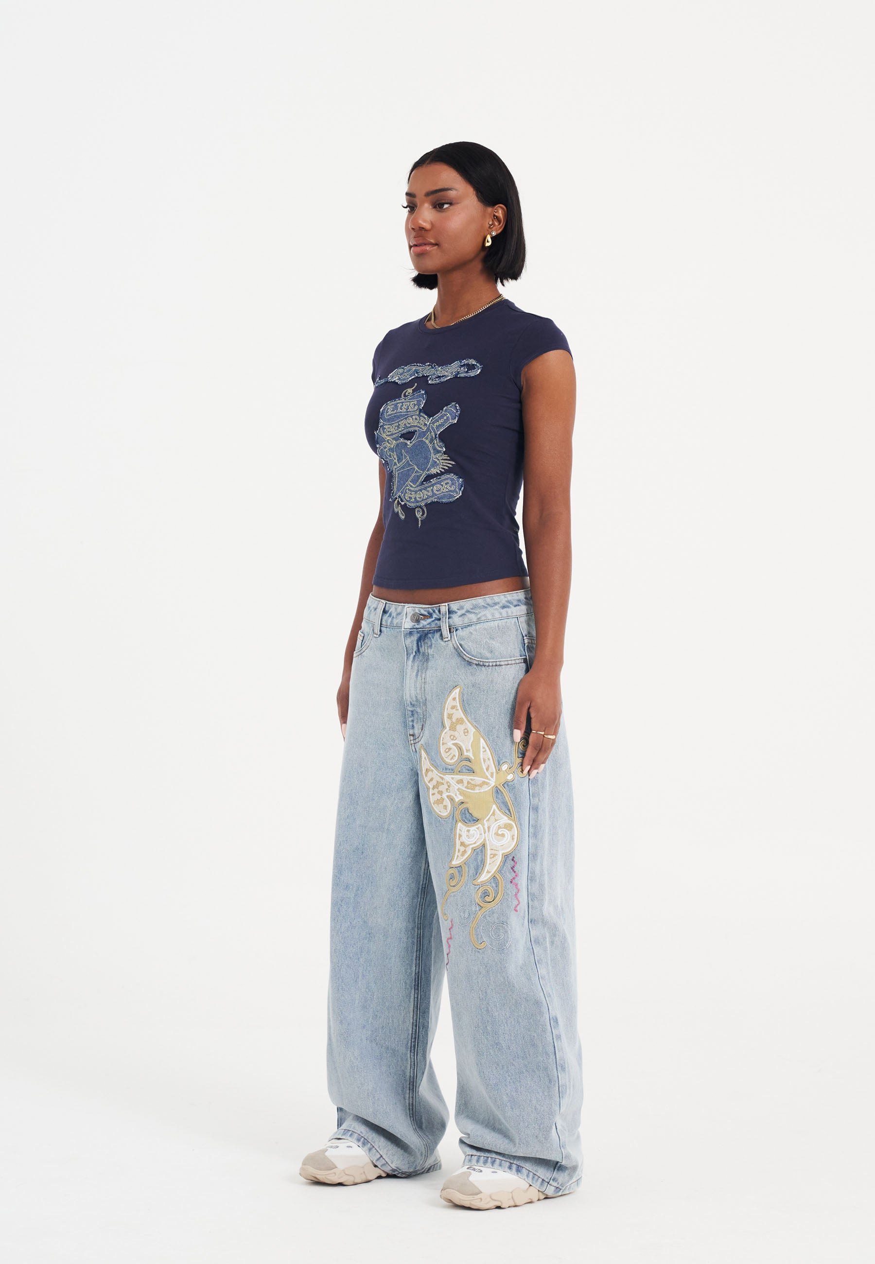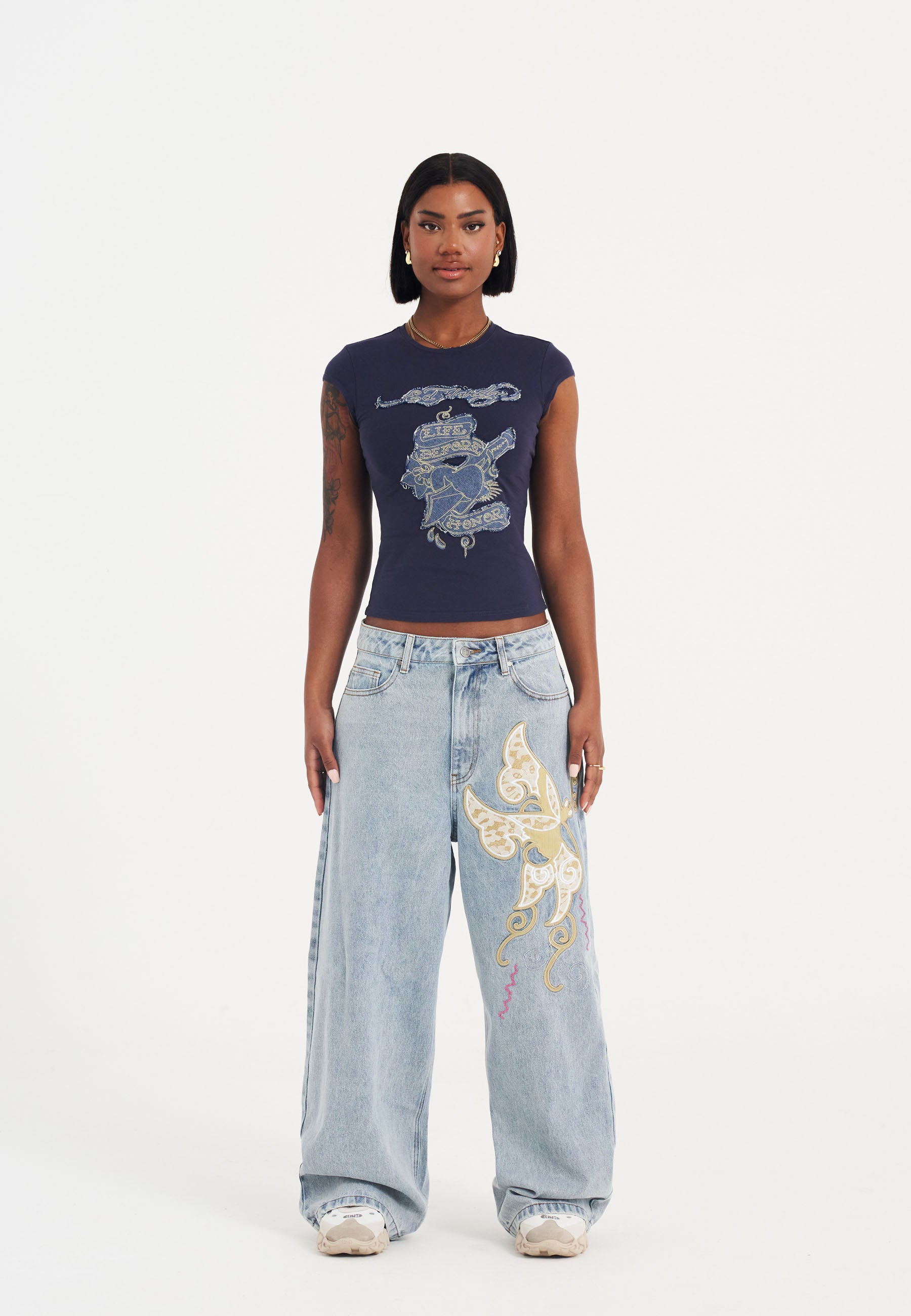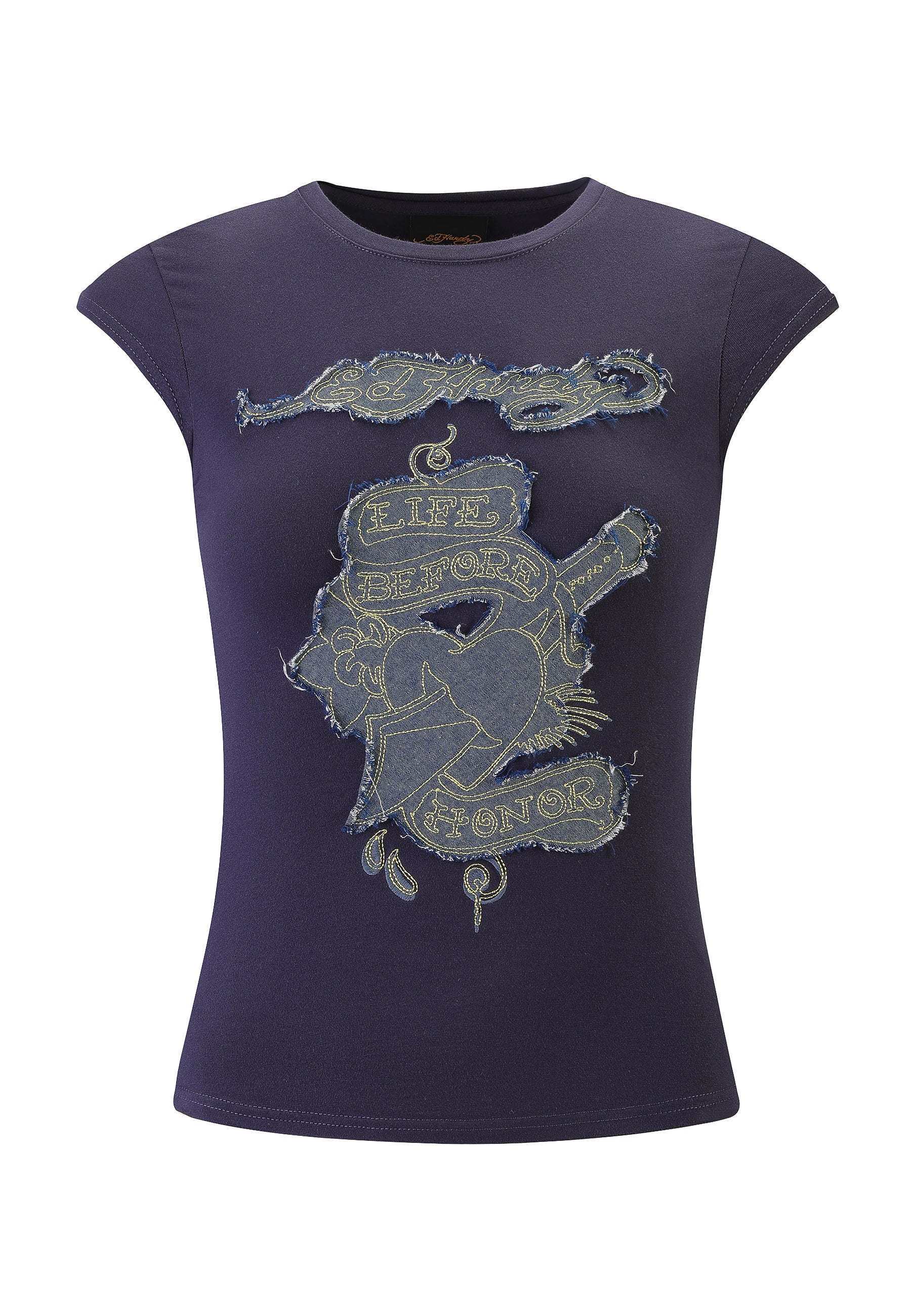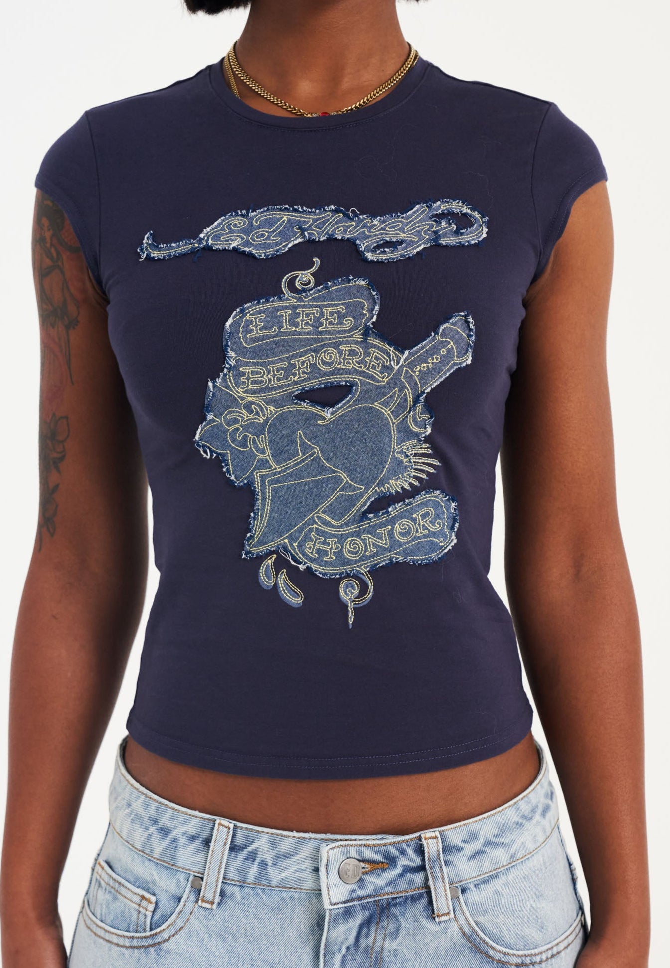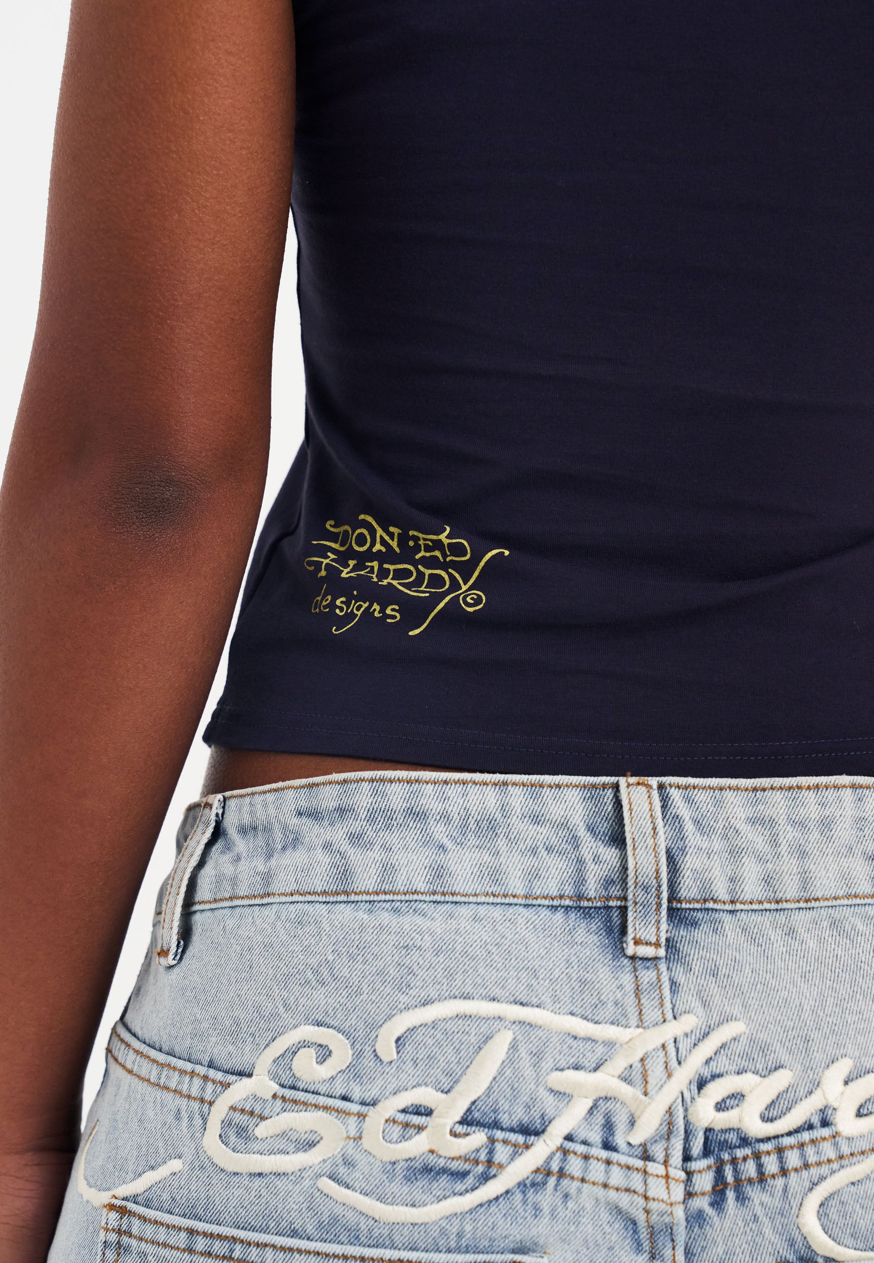 Introducing new-season applique graphic detailing with a denim chest graphic and logo that embodies the new era of Ed Hardy. Finished with a 'Don Ed Designs' logo at the back hem for an iconic touch.