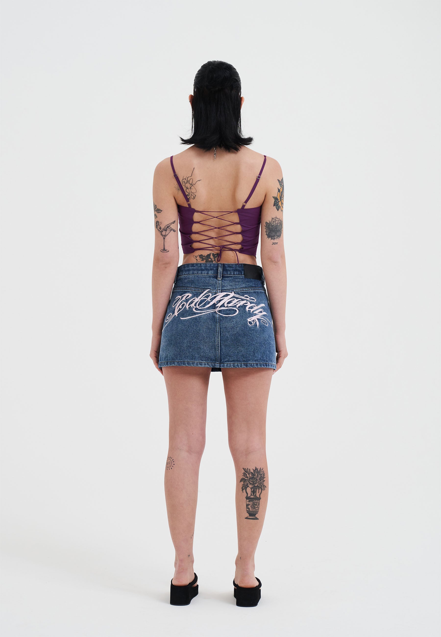 Women's Apparel: Denim Pleated Mini Skirts and Flared Jeans