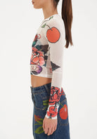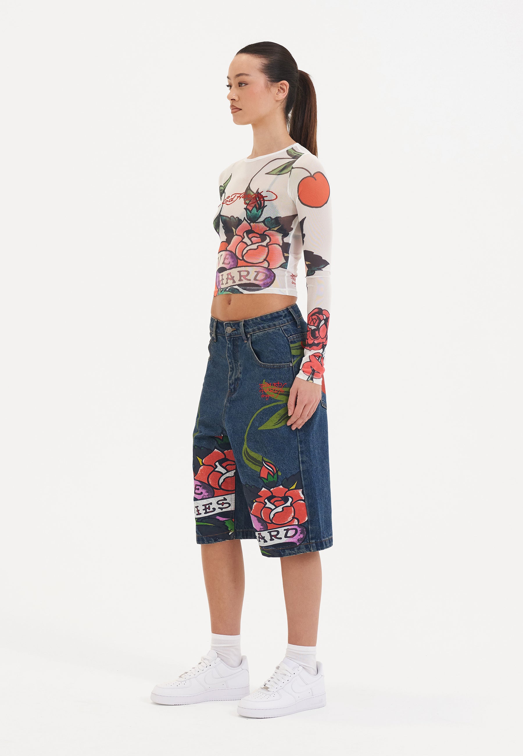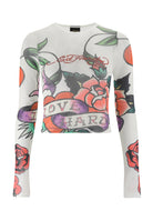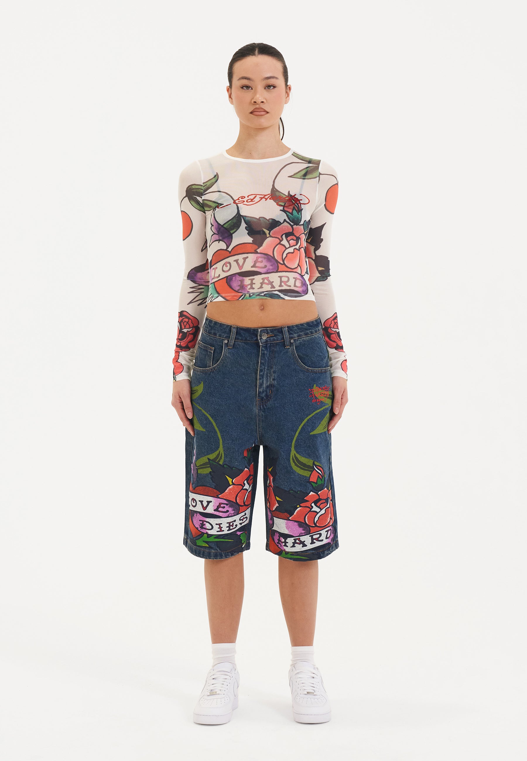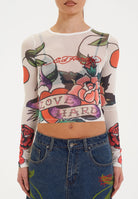 Womens Love Hard Mesh Long Sleeve Tshirt Top - White