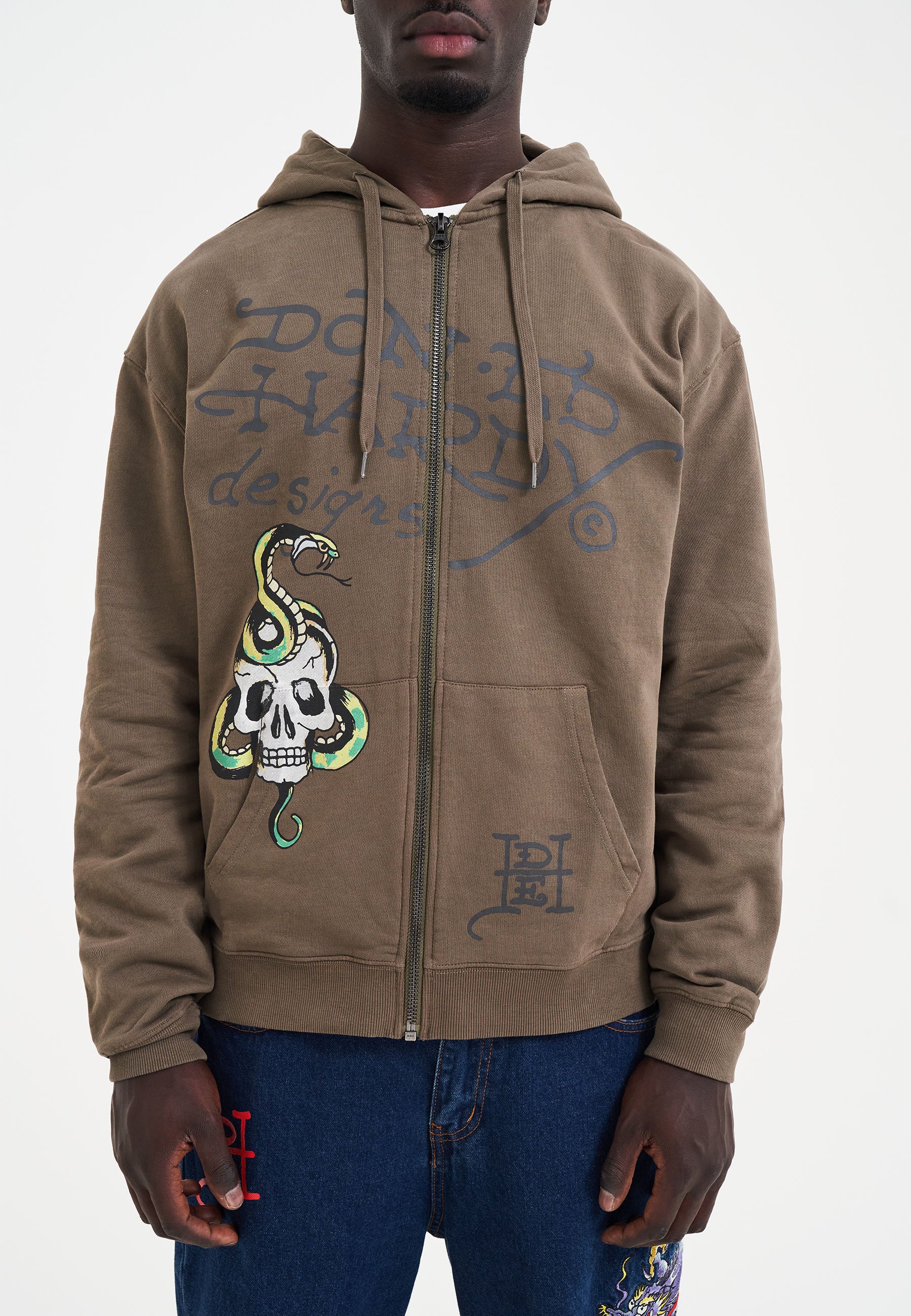 Mens Eye Ball Zip Through Hoodie - Khaki