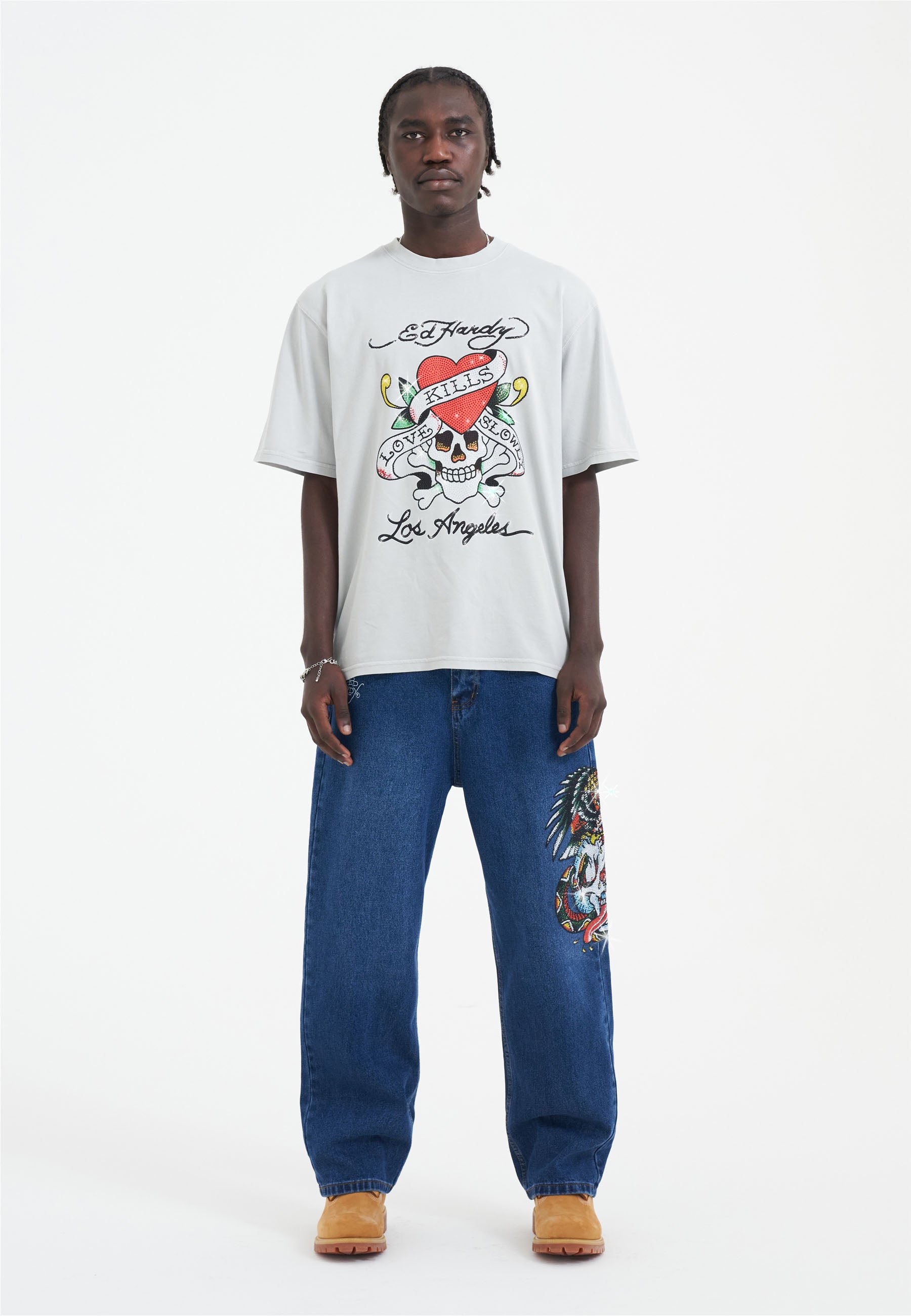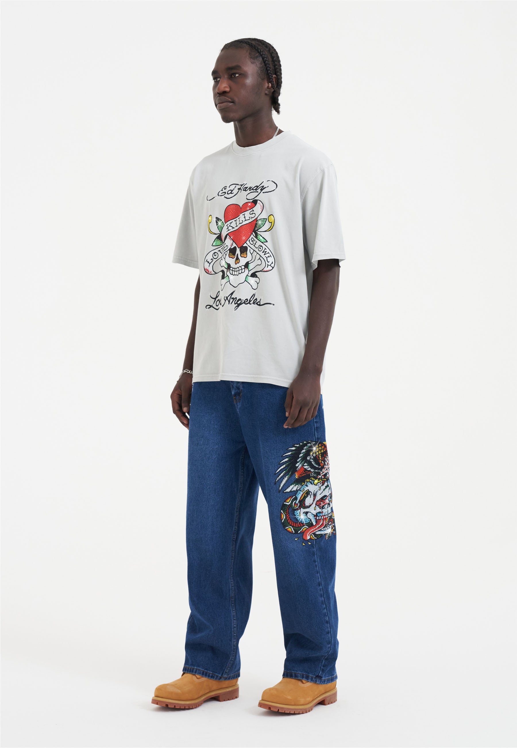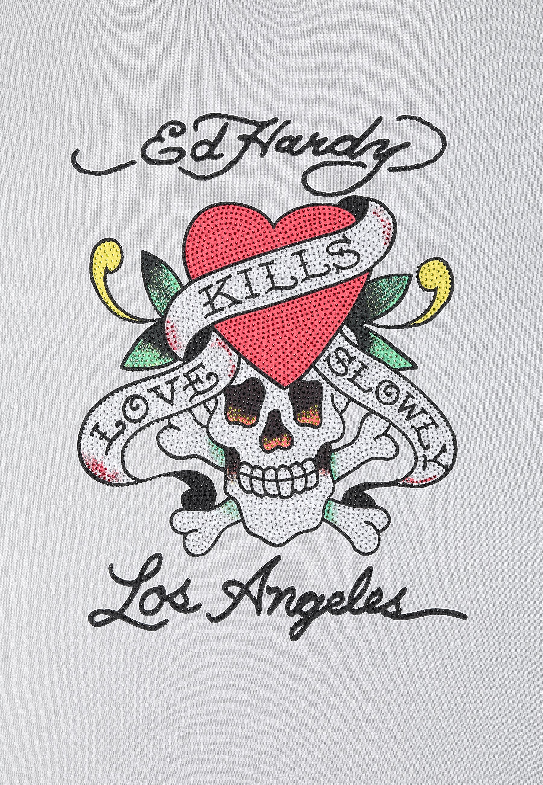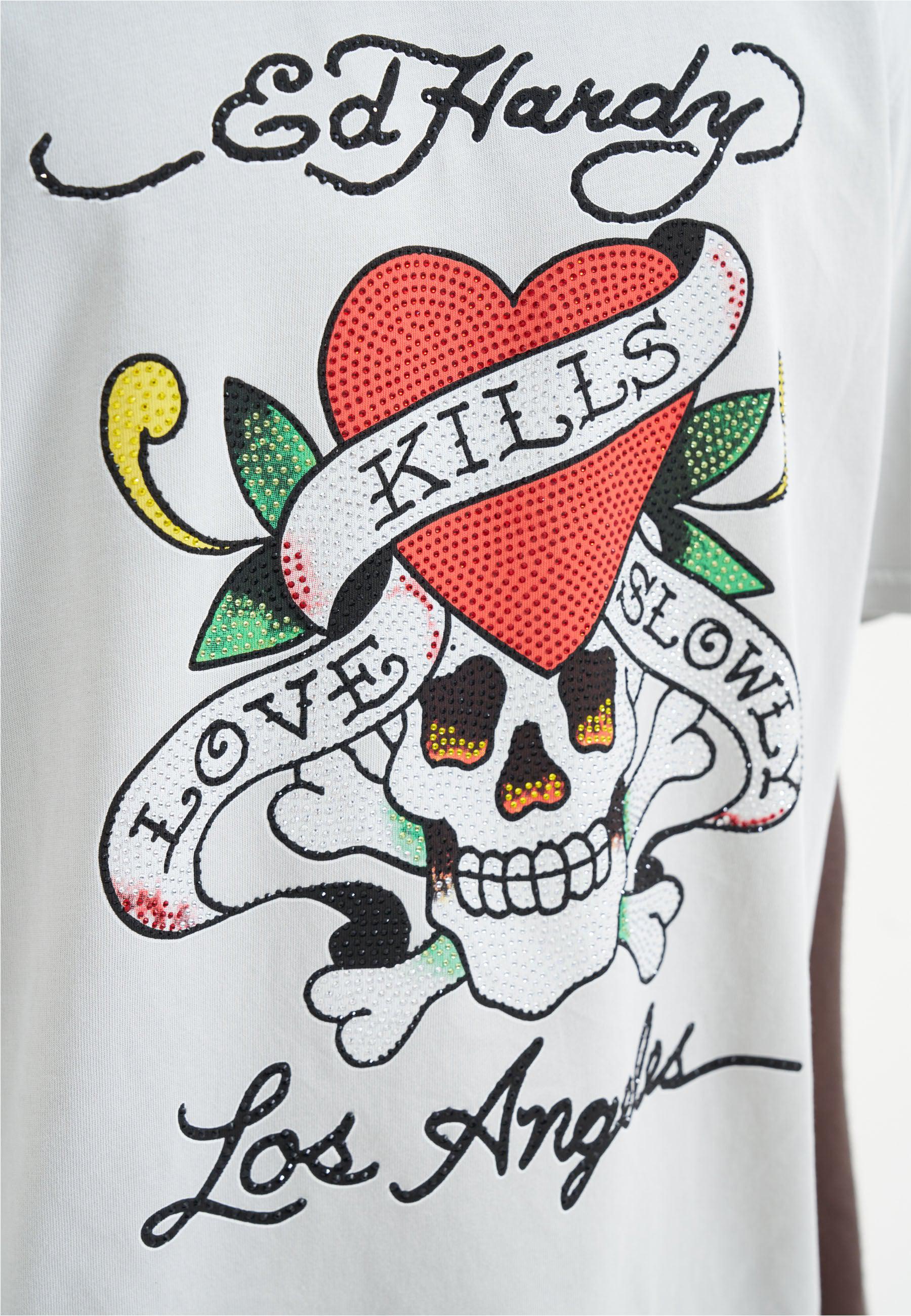 Disrupt and rebel in the Love Kills Slowly Diamante T-Shirt. Featuring full-colour diamante graphics for a new era of Ed Hardy.
