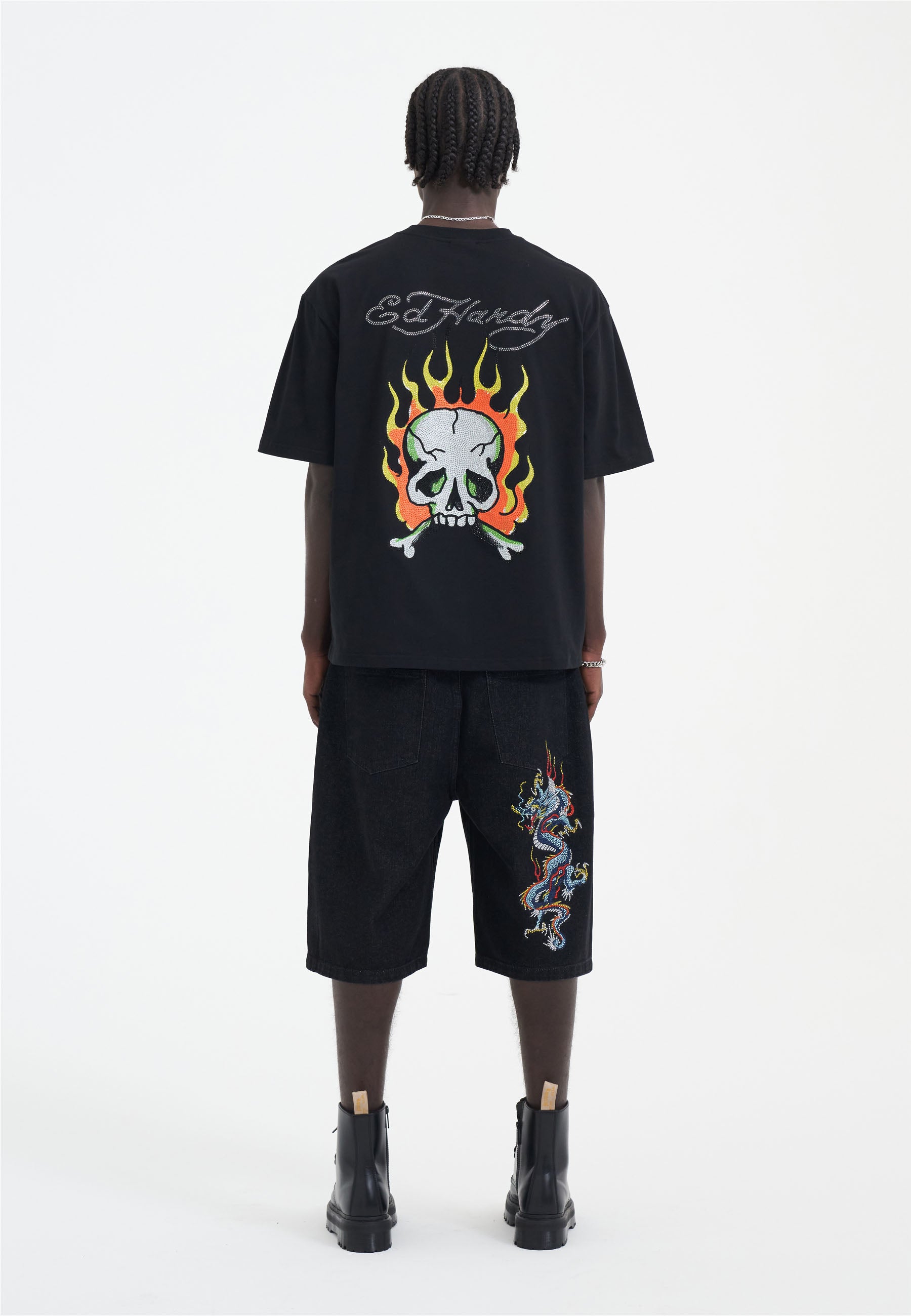 Revolt in Style: The Skull Flame Diamante Tee transforms NYC grit into festival glam with a striking full-colour diamante graphic for SS24.