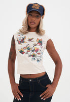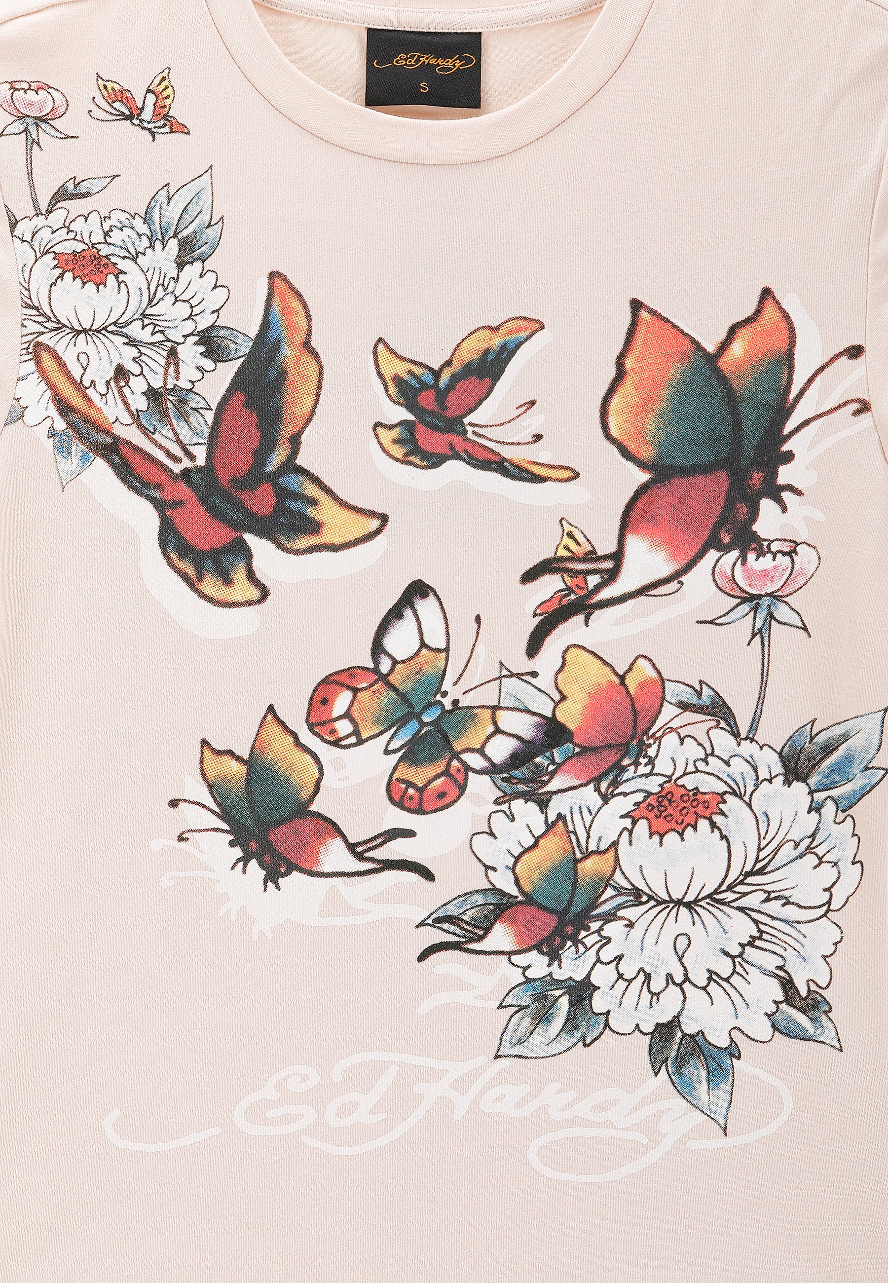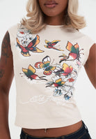 WOMENS BUTTERFLY FLORAL BABY T-SHIRT in Sand