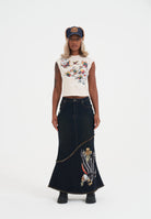 Women's Apparel: Denim Pleated Mini Skirts and Flared Jeans