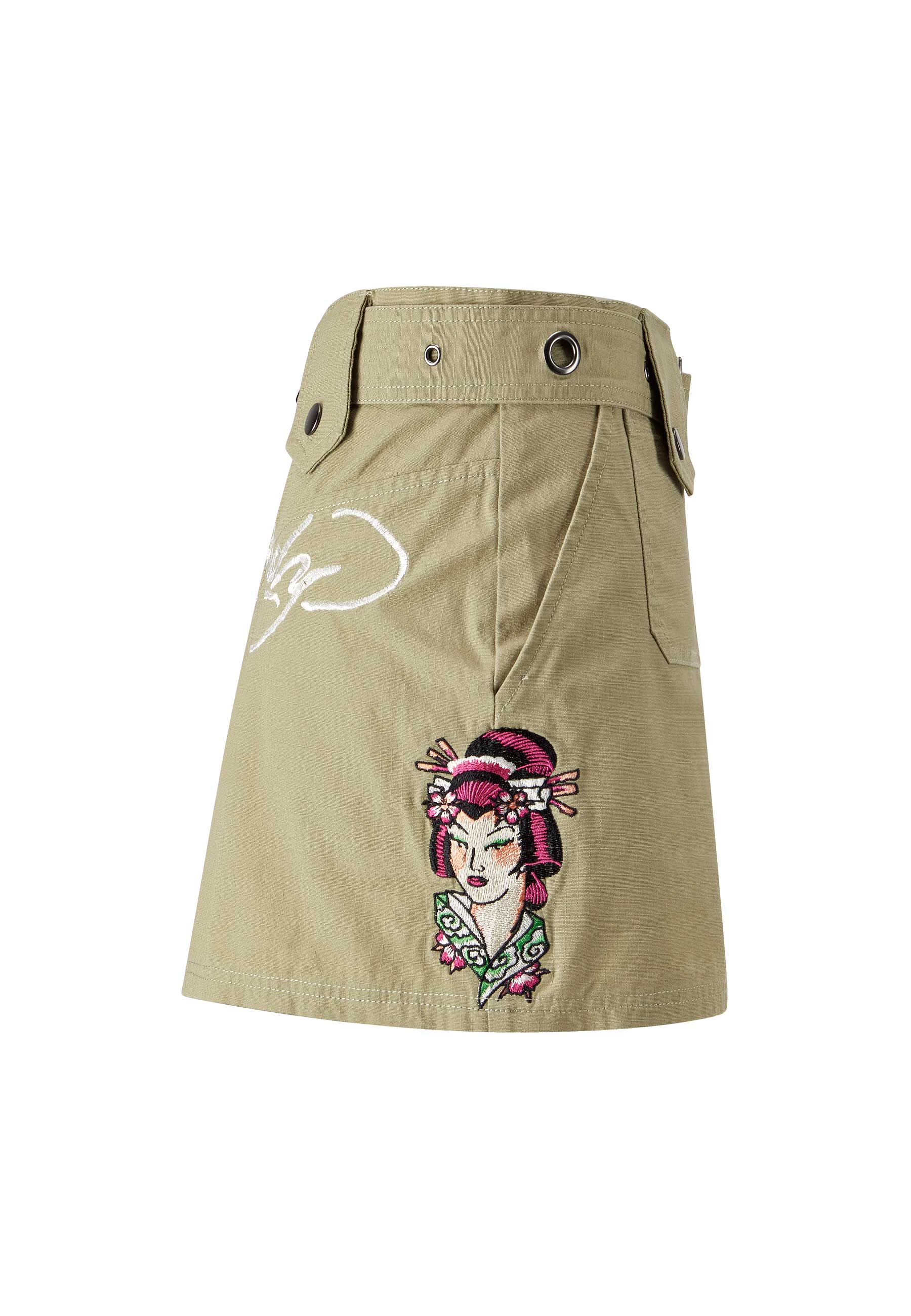 Womens Geisha Girl Cargo Mini Skirt - Green