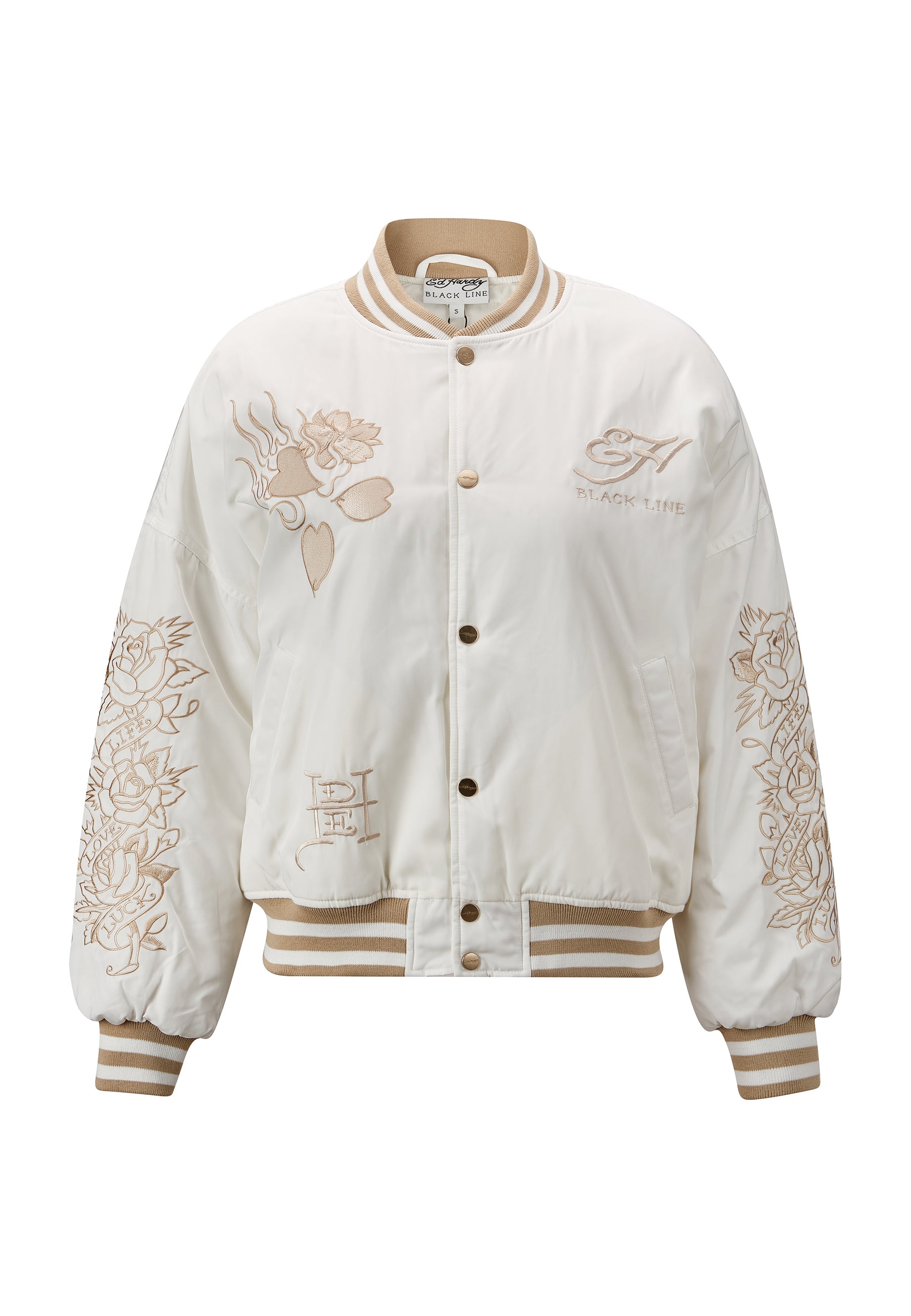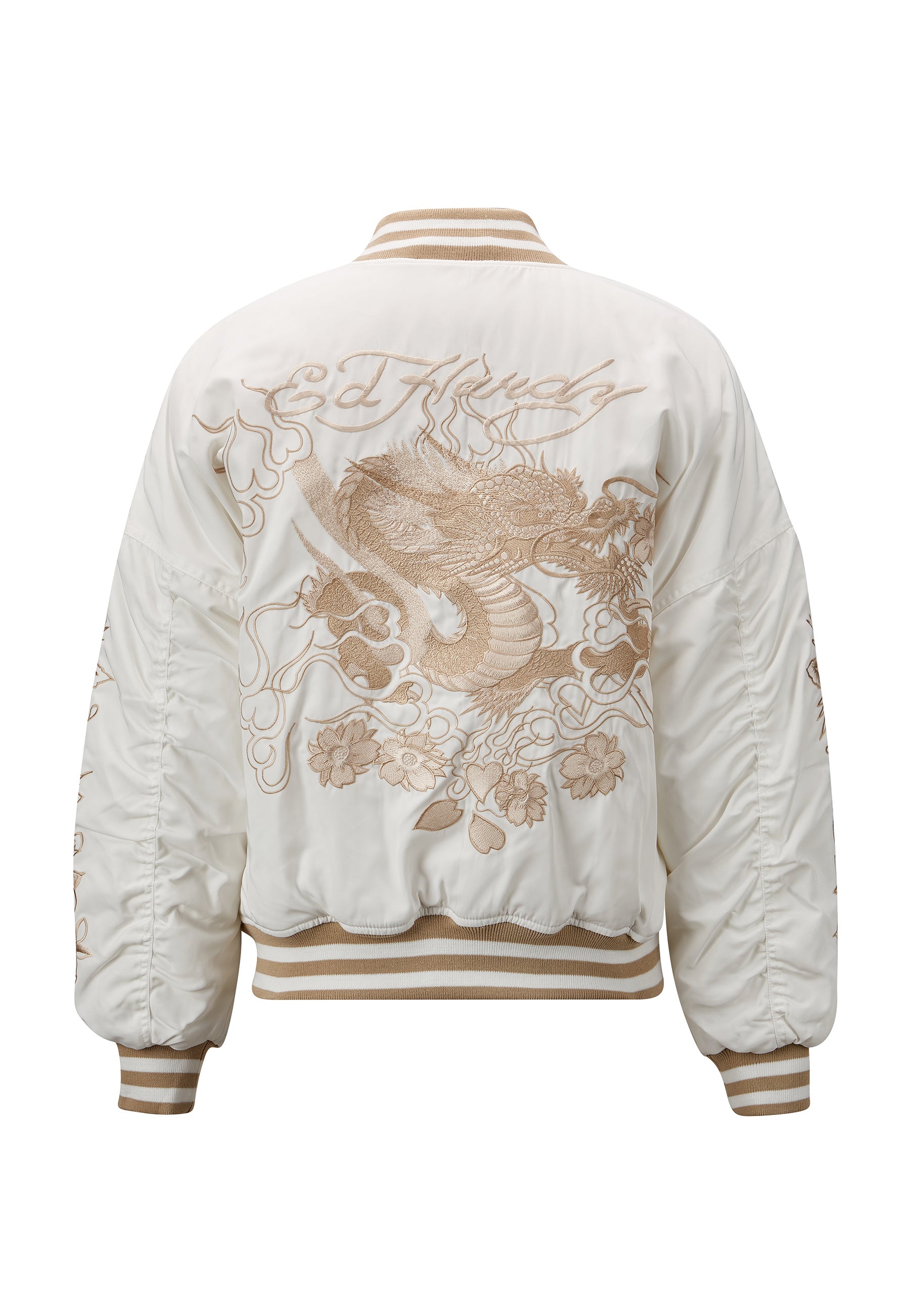 Introducing the Women's Vintage-Dragon Varsity Bomber Jacket, a testament to Ed Hardy's enduring legacy in fashion.