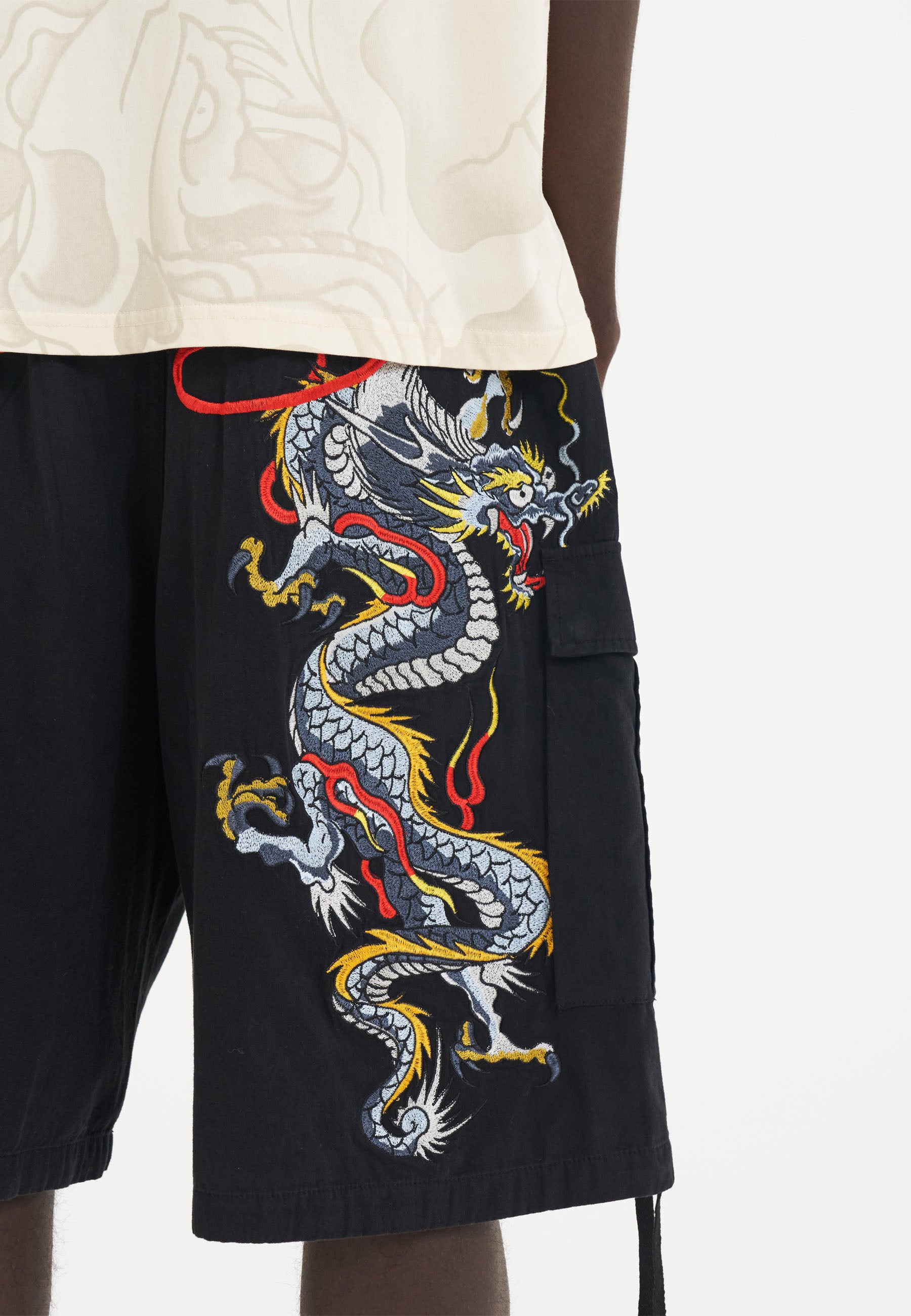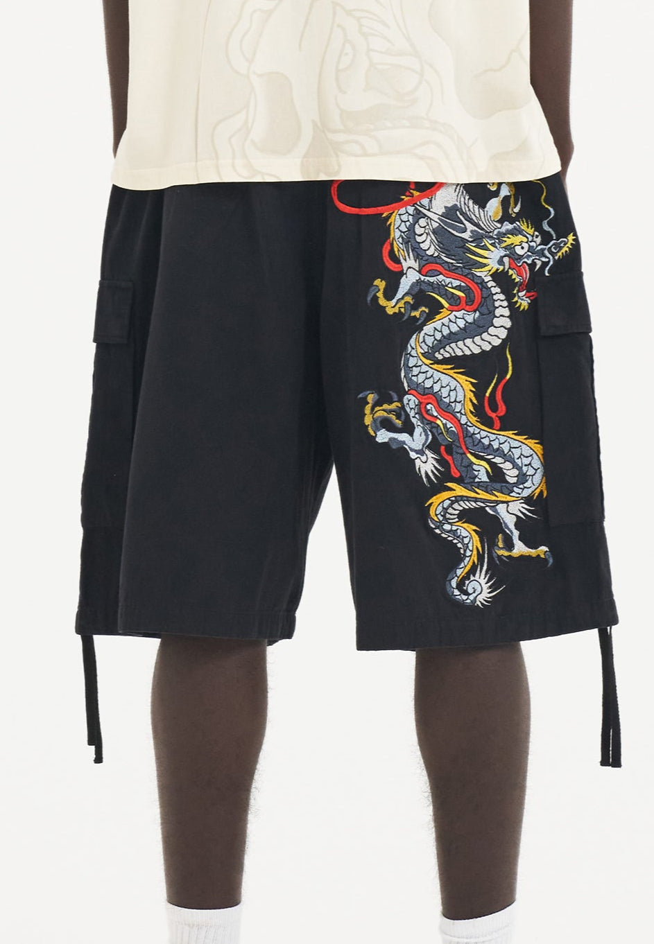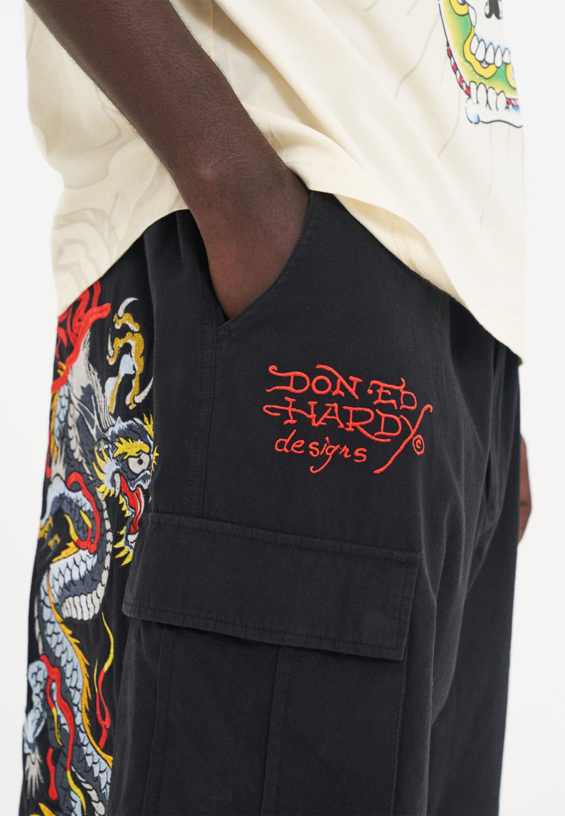 Make a fearless statement with the Dragon Crawl Cargo Shorts, drawing inspiration from New York's Punks and DIY patches.