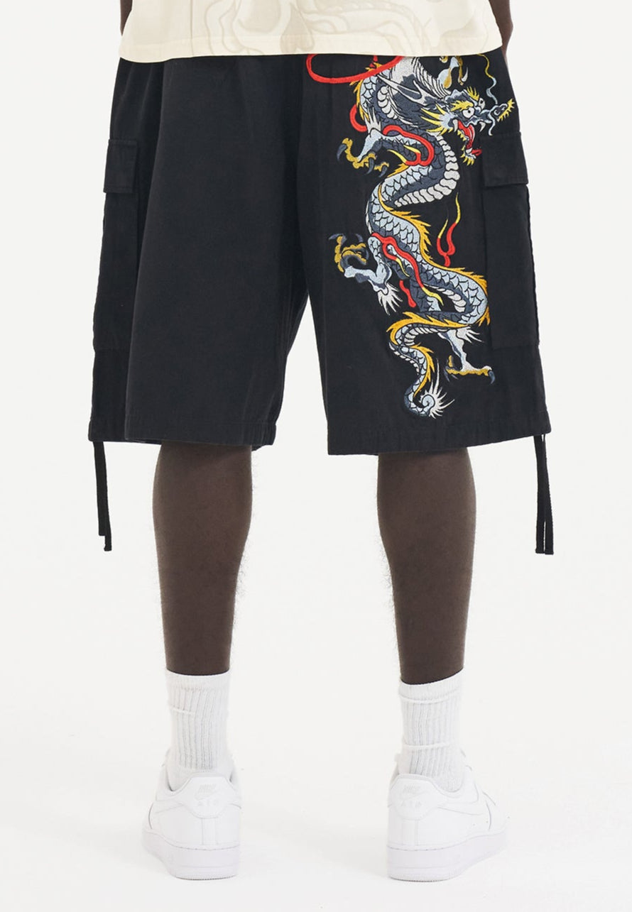 Mens Dragon Crawl Woven Cargo Shorts - Black