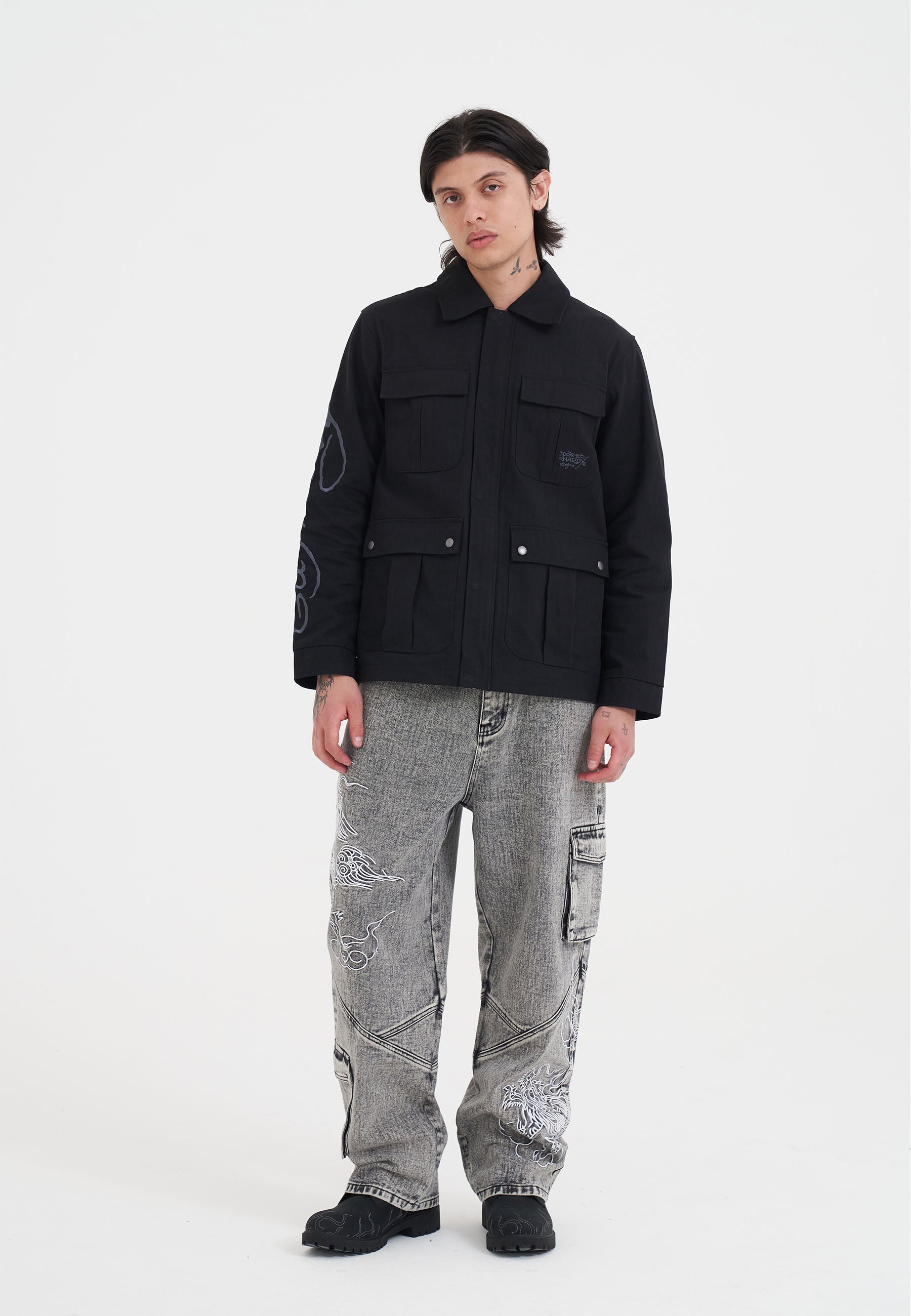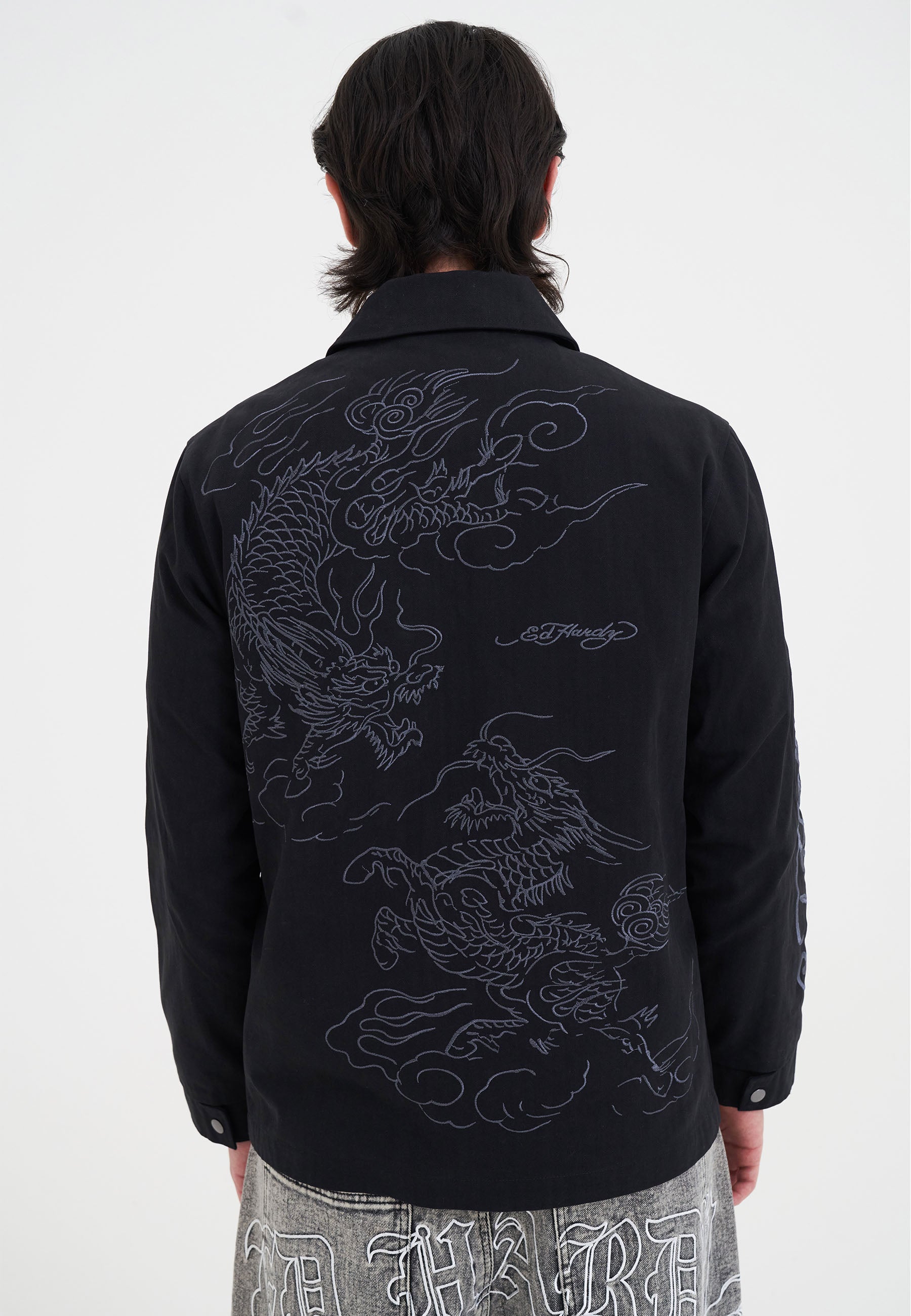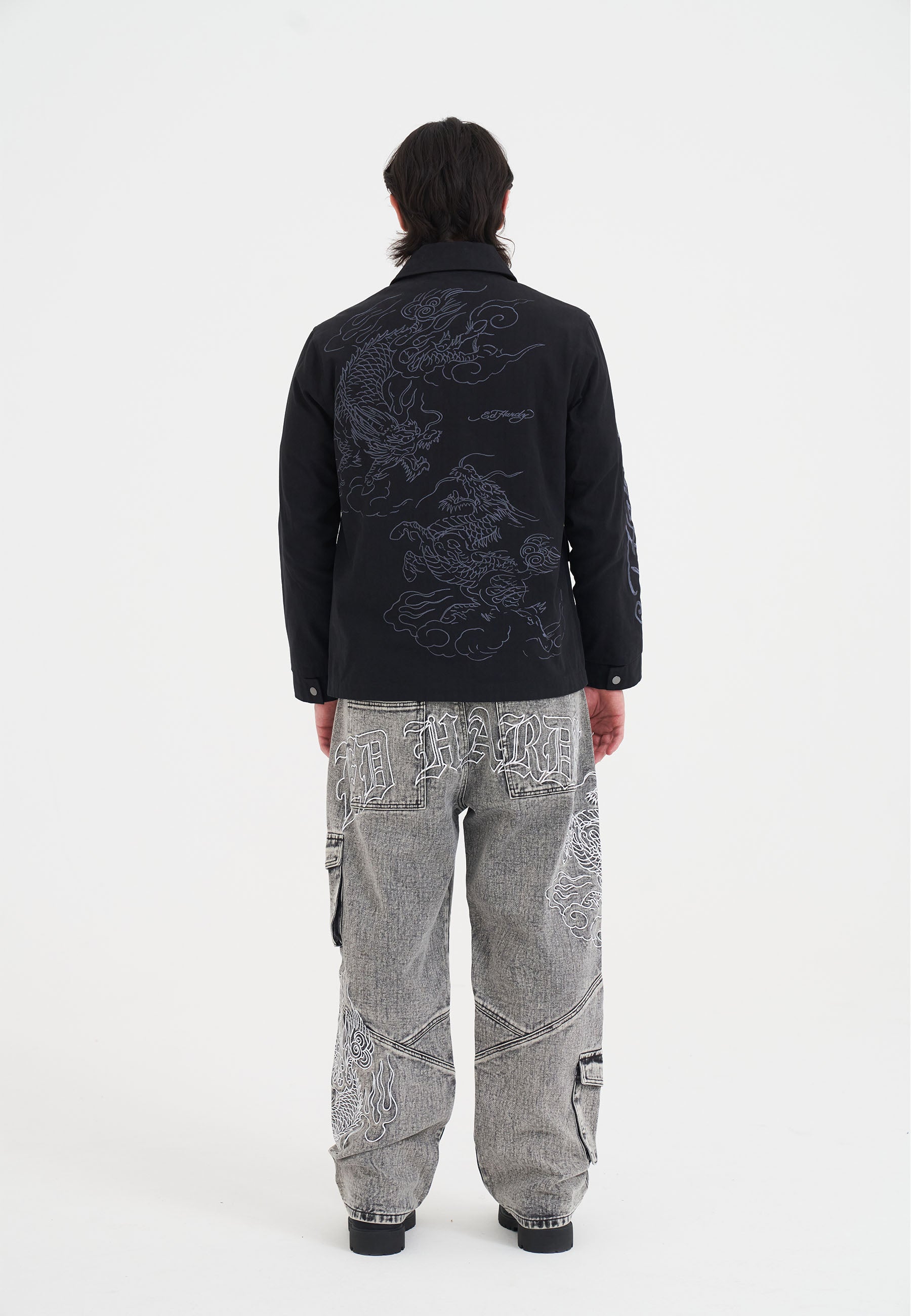 MENS OUTLINE DRAGON CHORE JACKET in Black