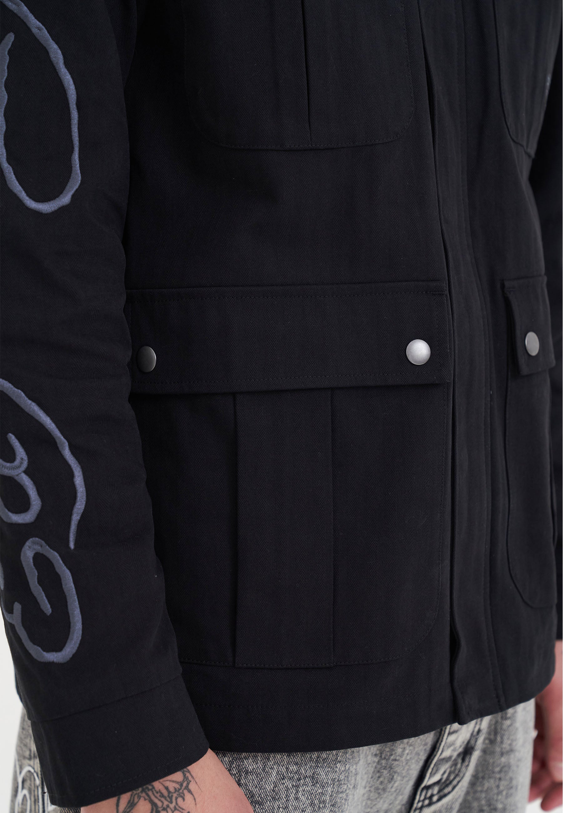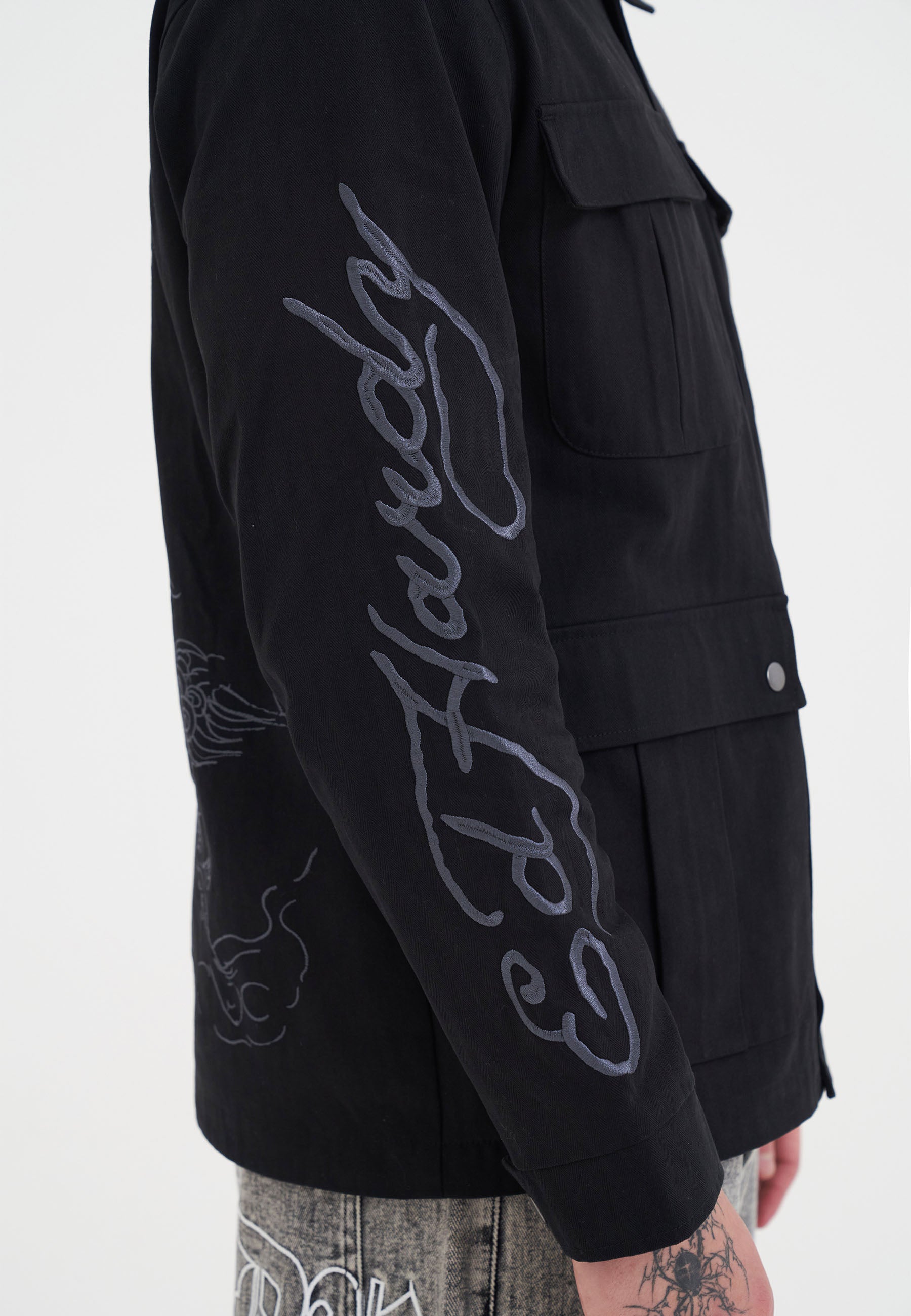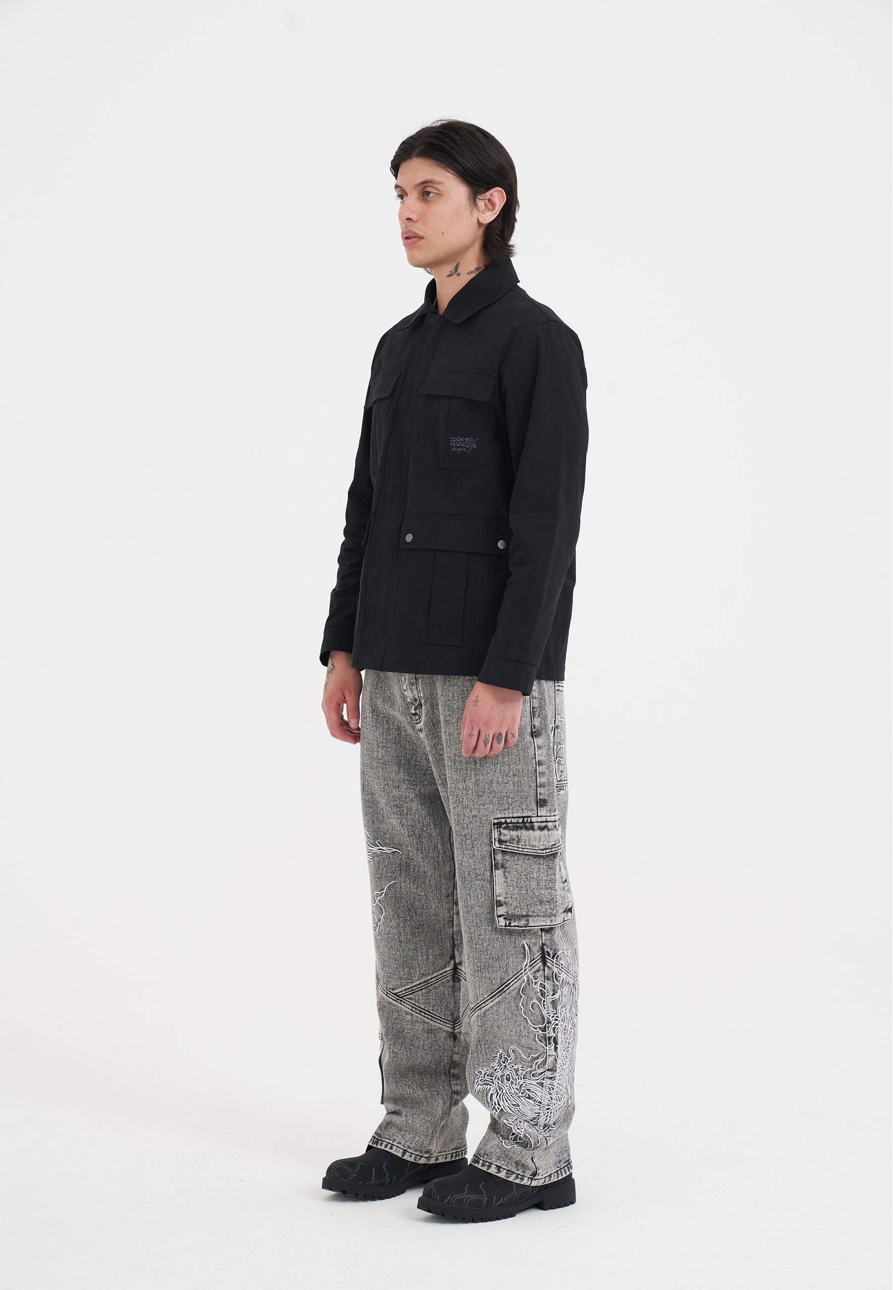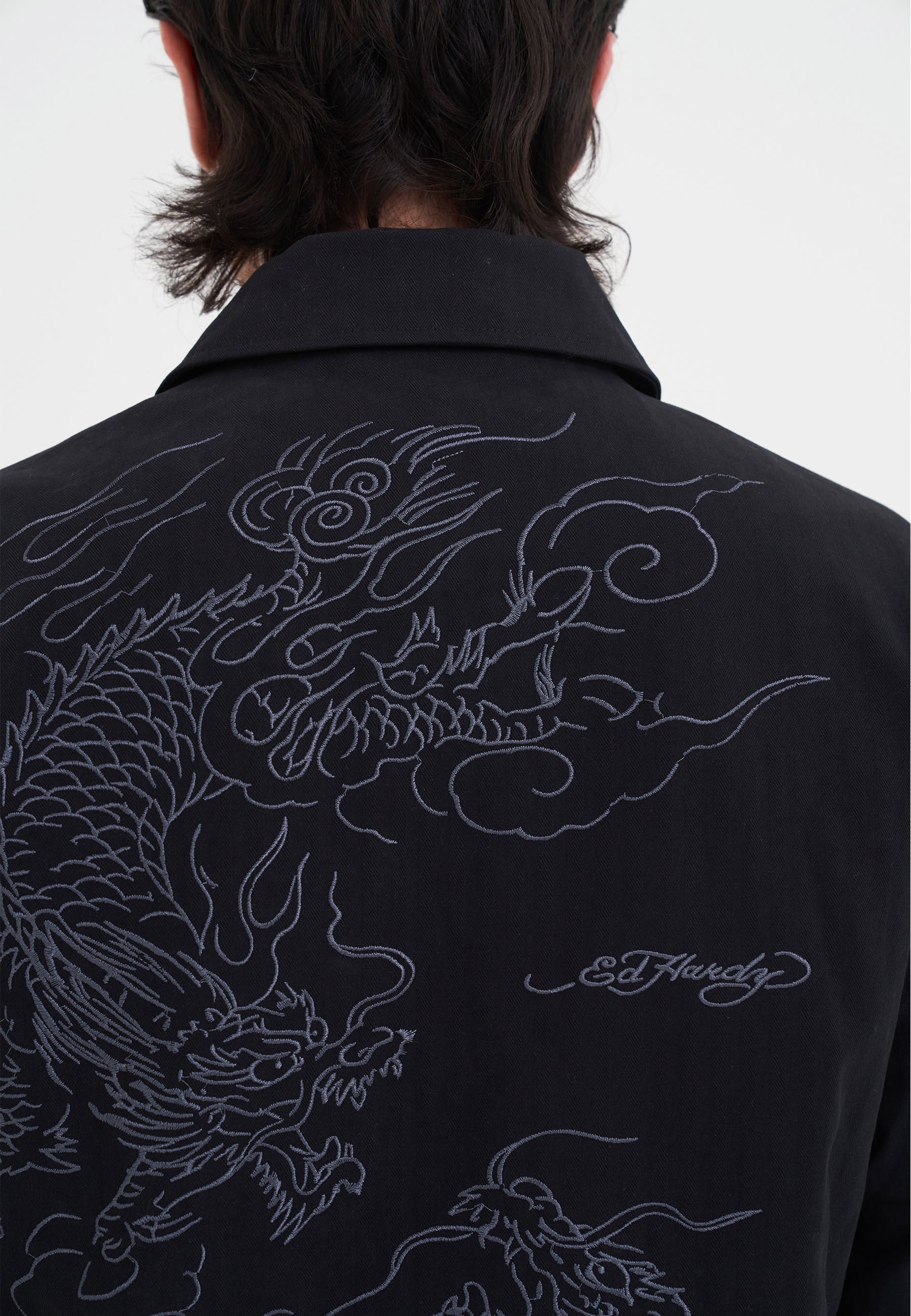 MENS OUTLINE DRAGON CHORE JACKET in Black