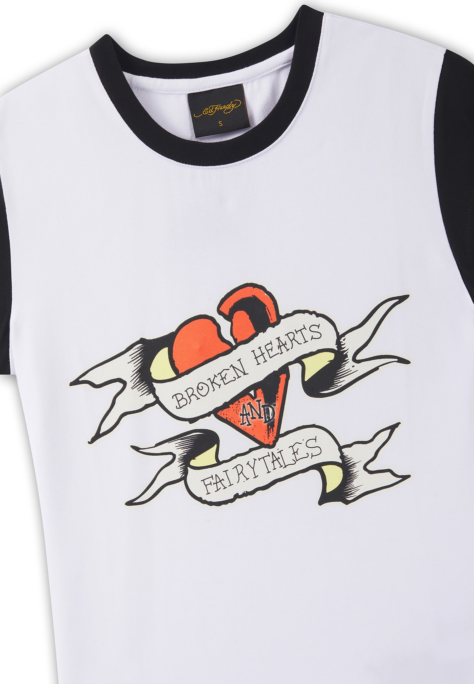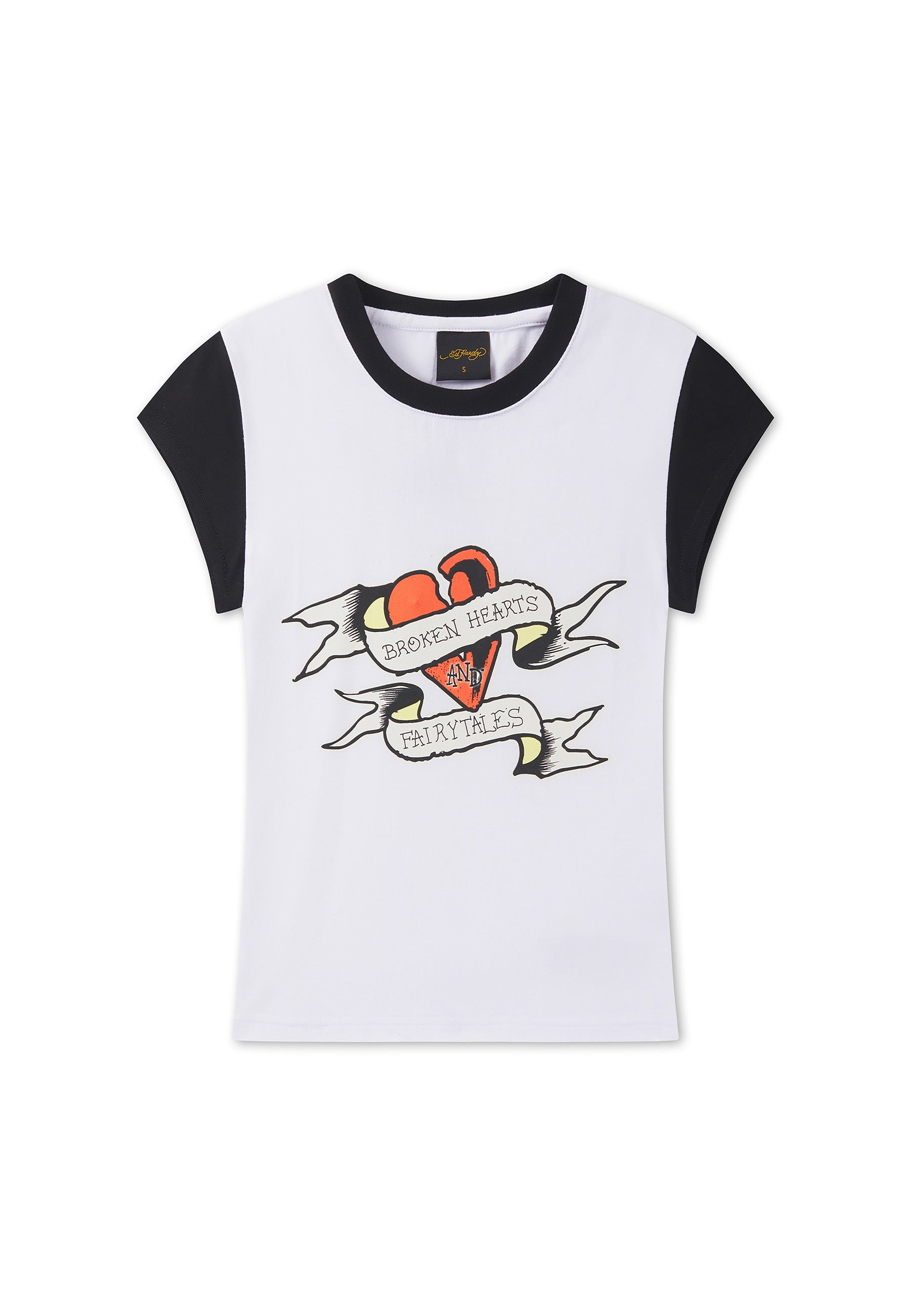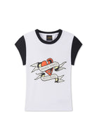 Womens Broken Hearts Contrast Fitted Baby Tee - White