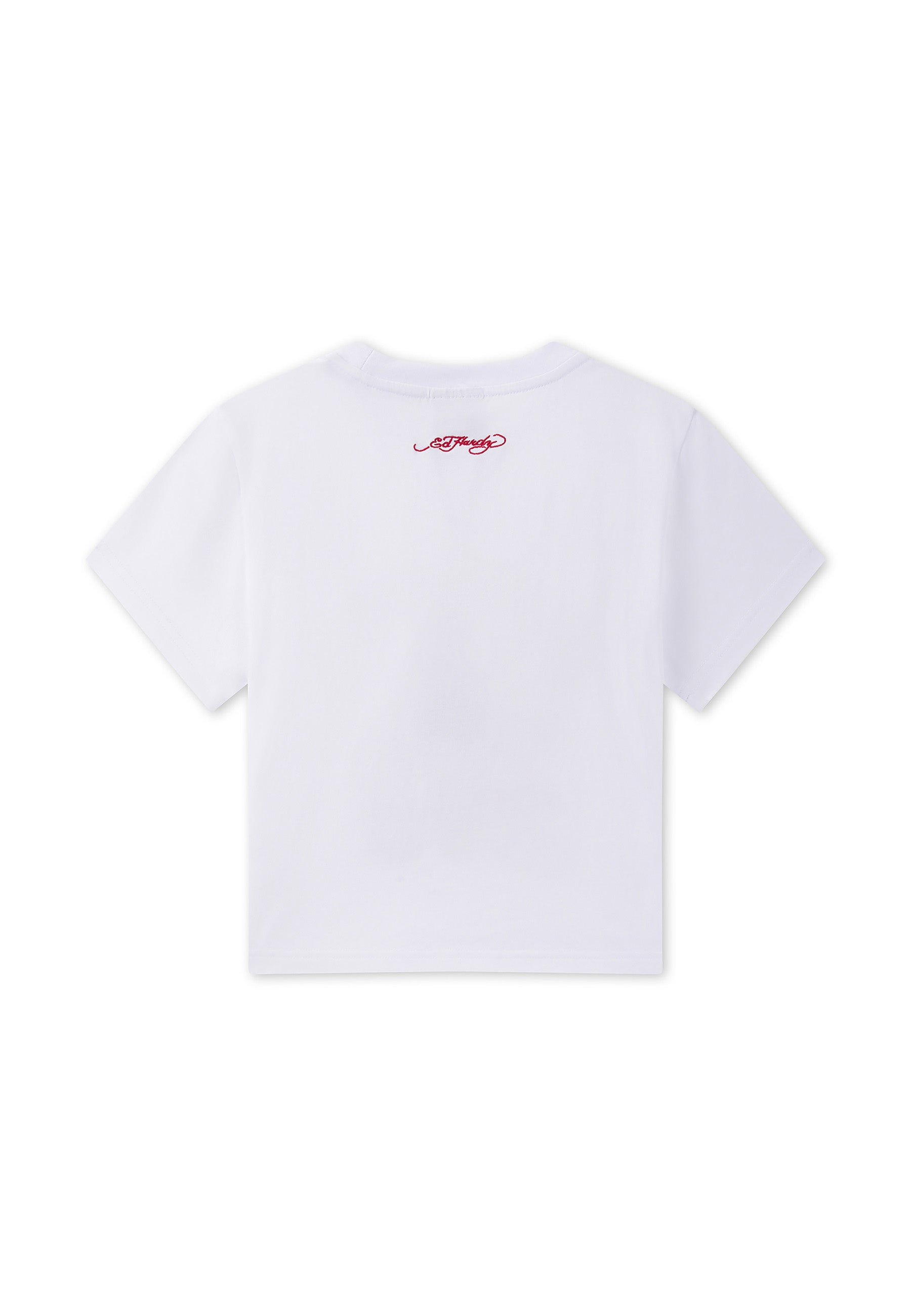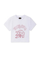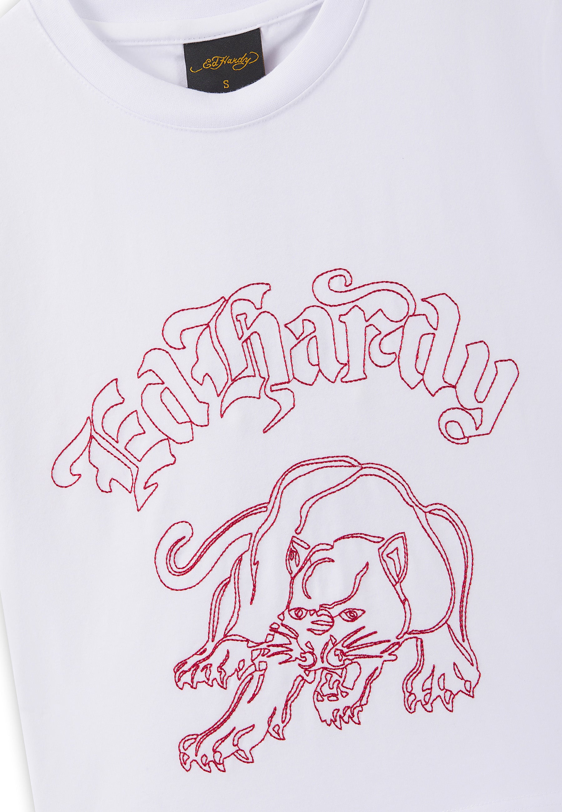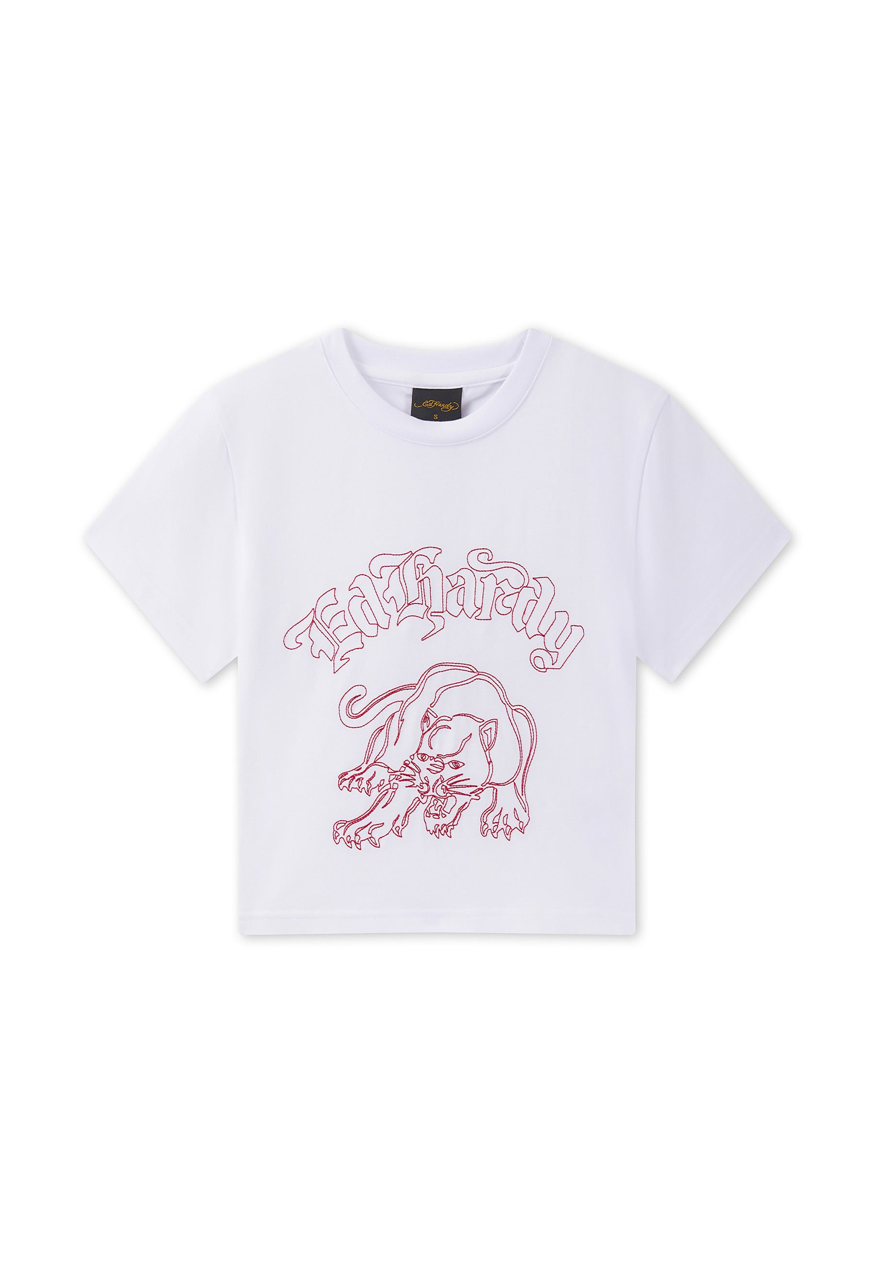 Womens Panther Embroidered Fitted Baby Tee - White
