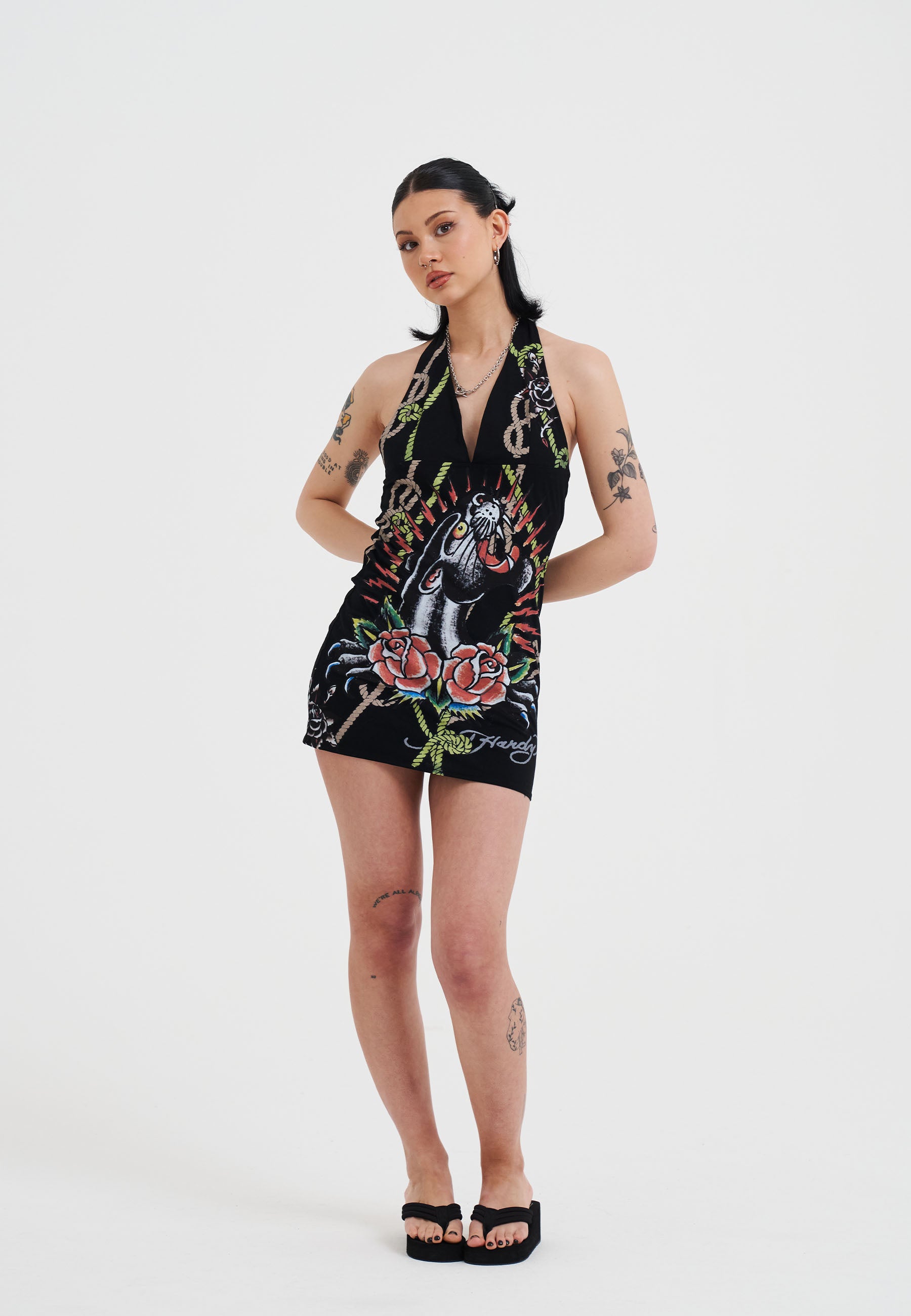 PANTHER LIGHT HALTER NECK MINI DRESS