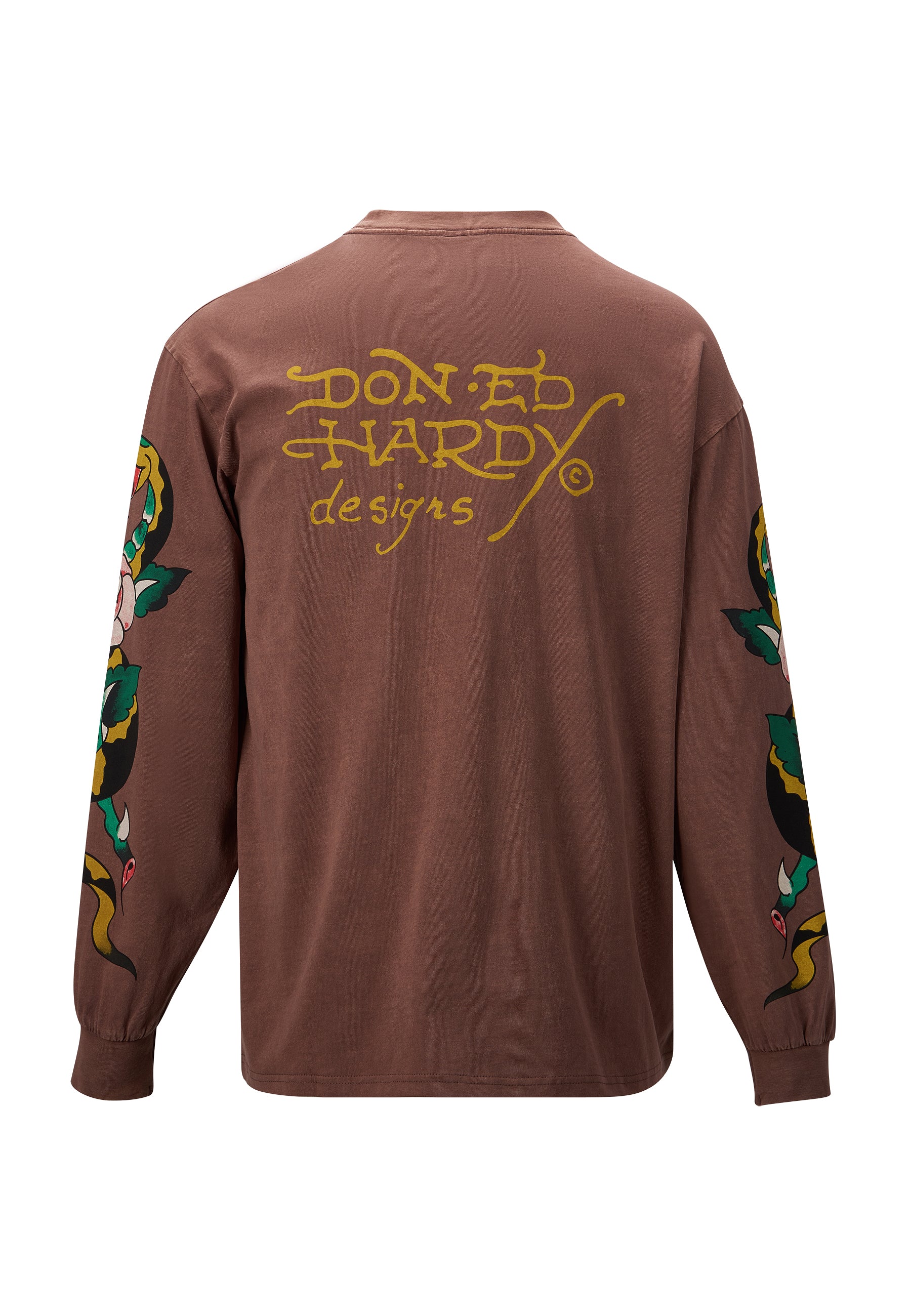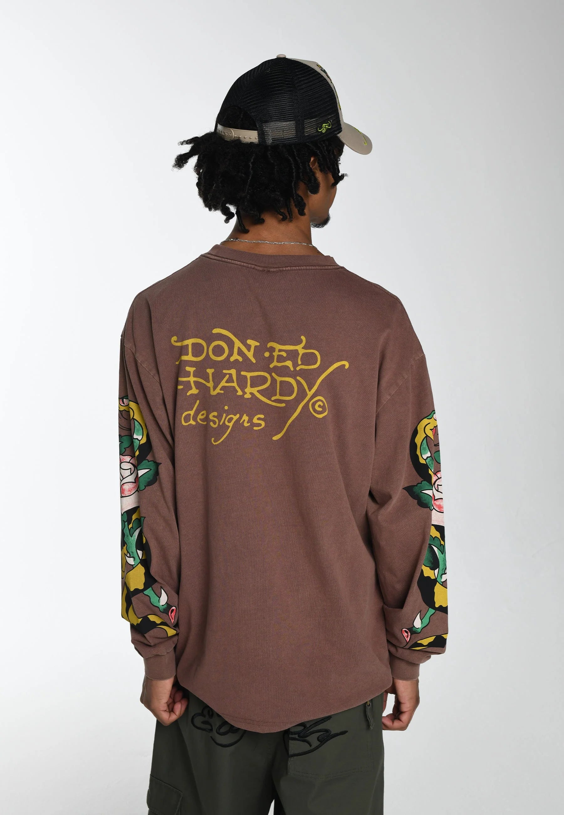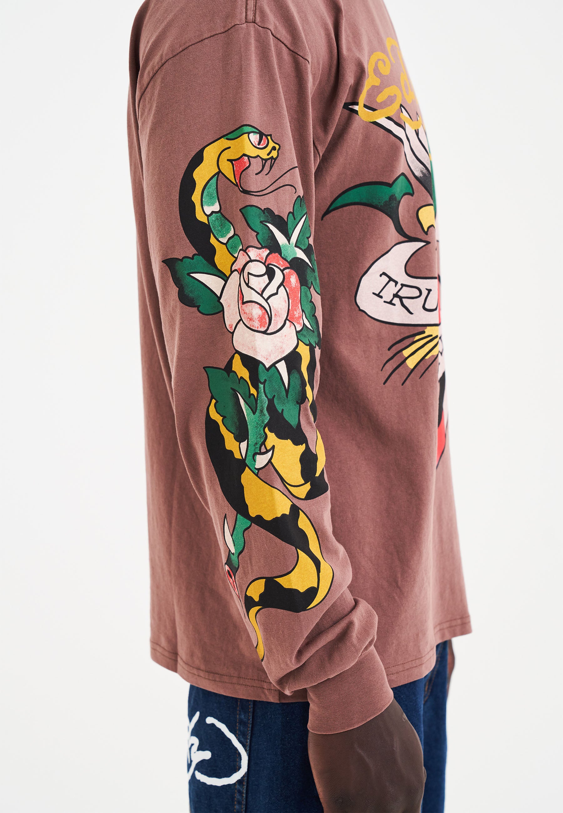 Mens True-Till-Rose-Snake Long Sleeve T-Shirt - Brown