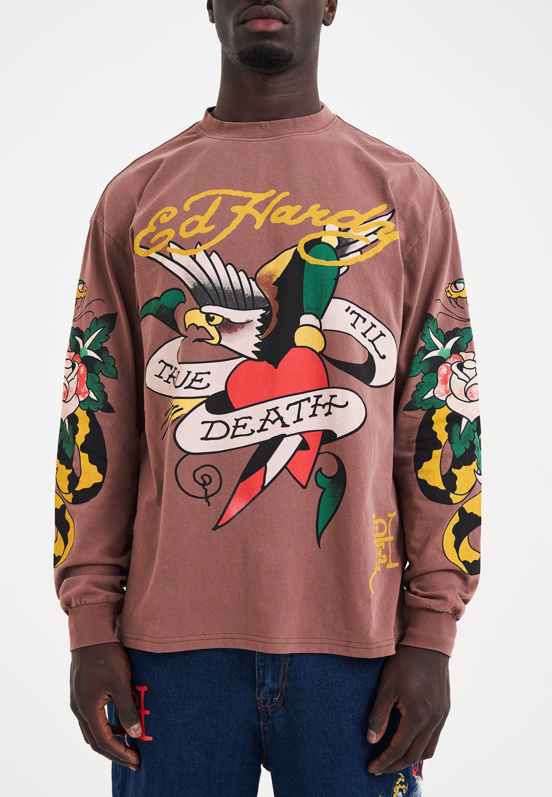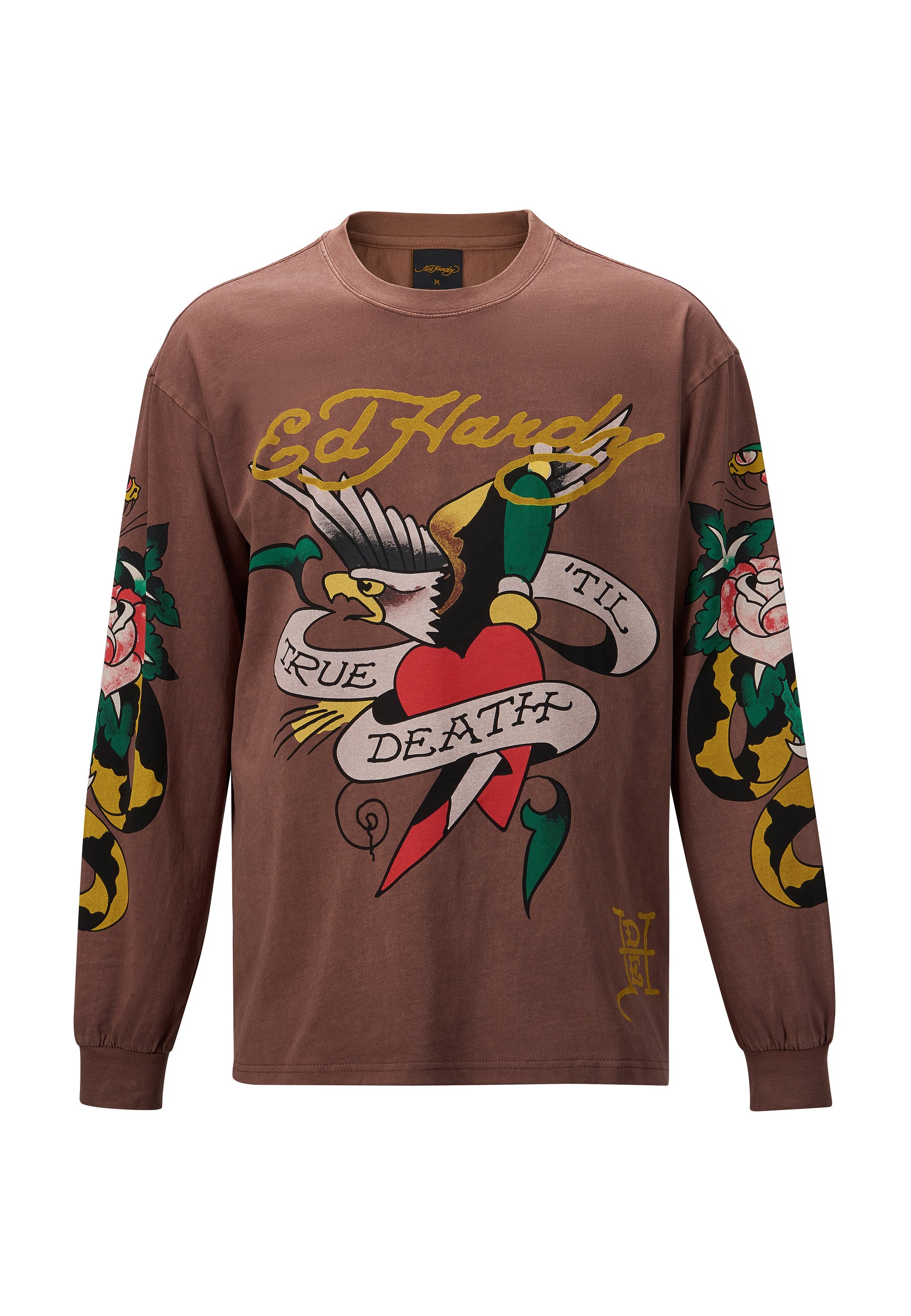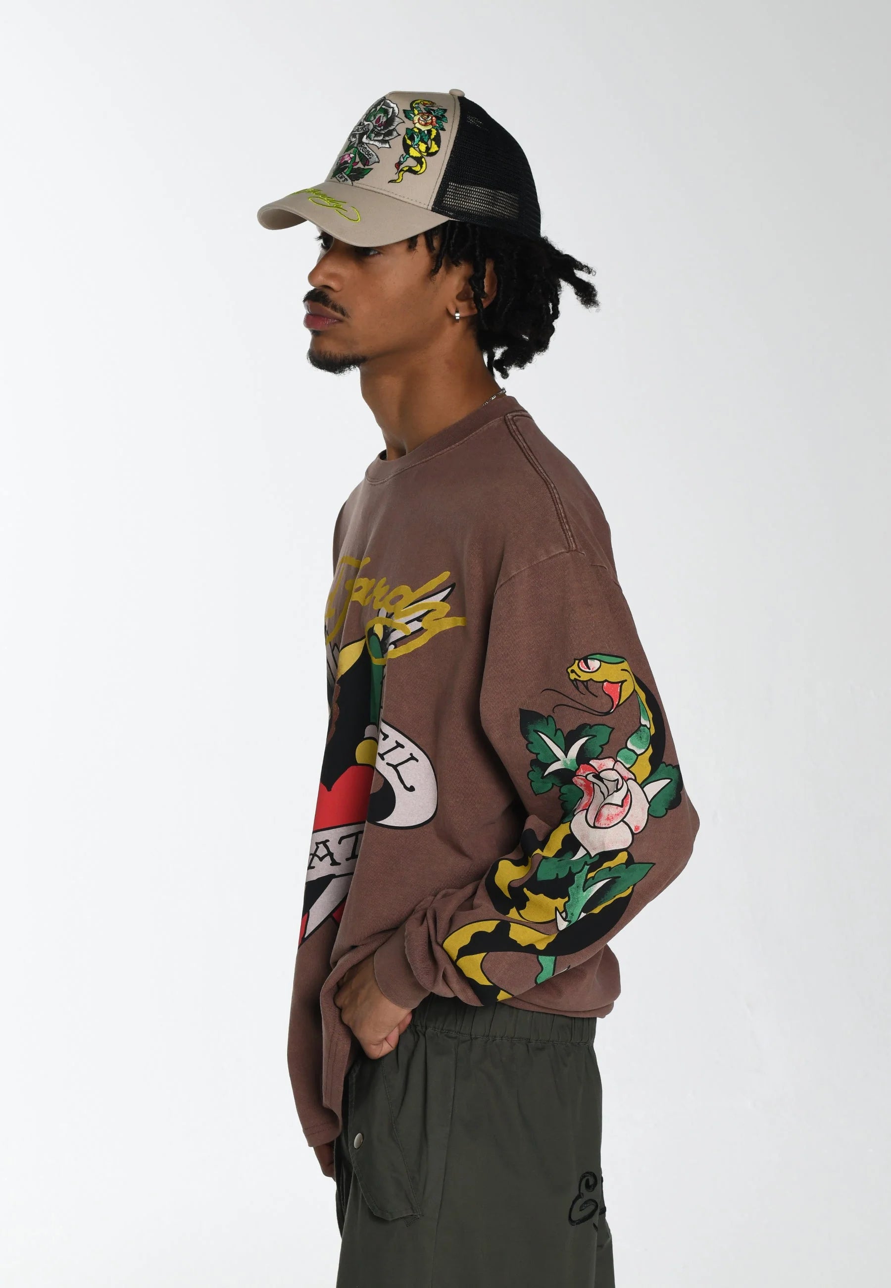 Mens True-Till-Rose-Snake Long Sleeve T-Shirt - Brown