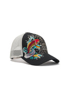 Unisex Embroidered 1971 Koi Fish 5 Panel Trucker Cap - Black