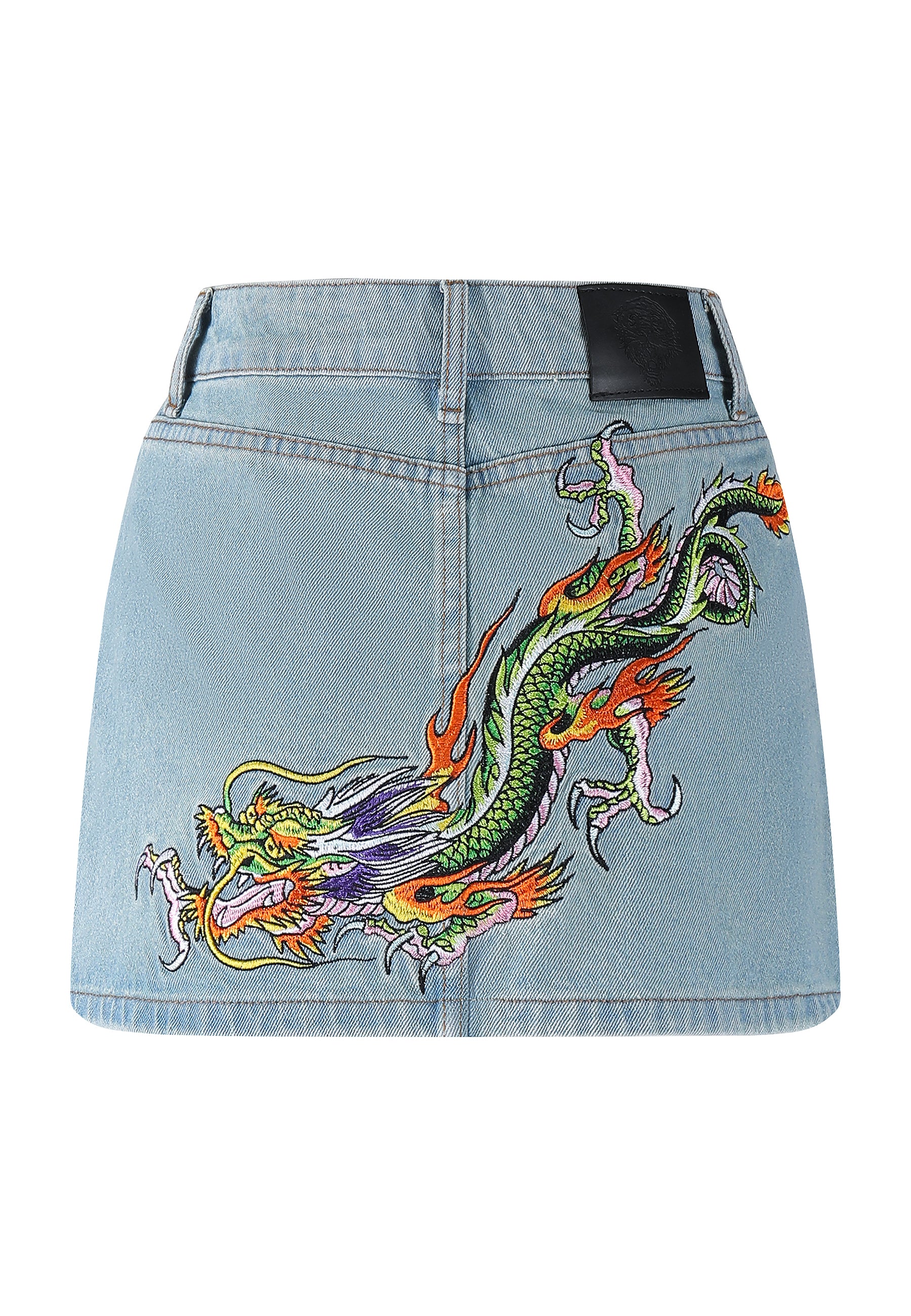 Crafted with inspiration from Punk design, the Crawling Dragon Denim Mini Skirt is a bold statement in itself.