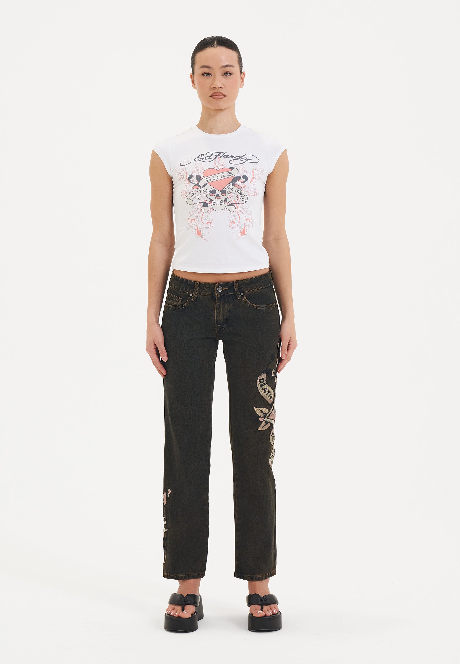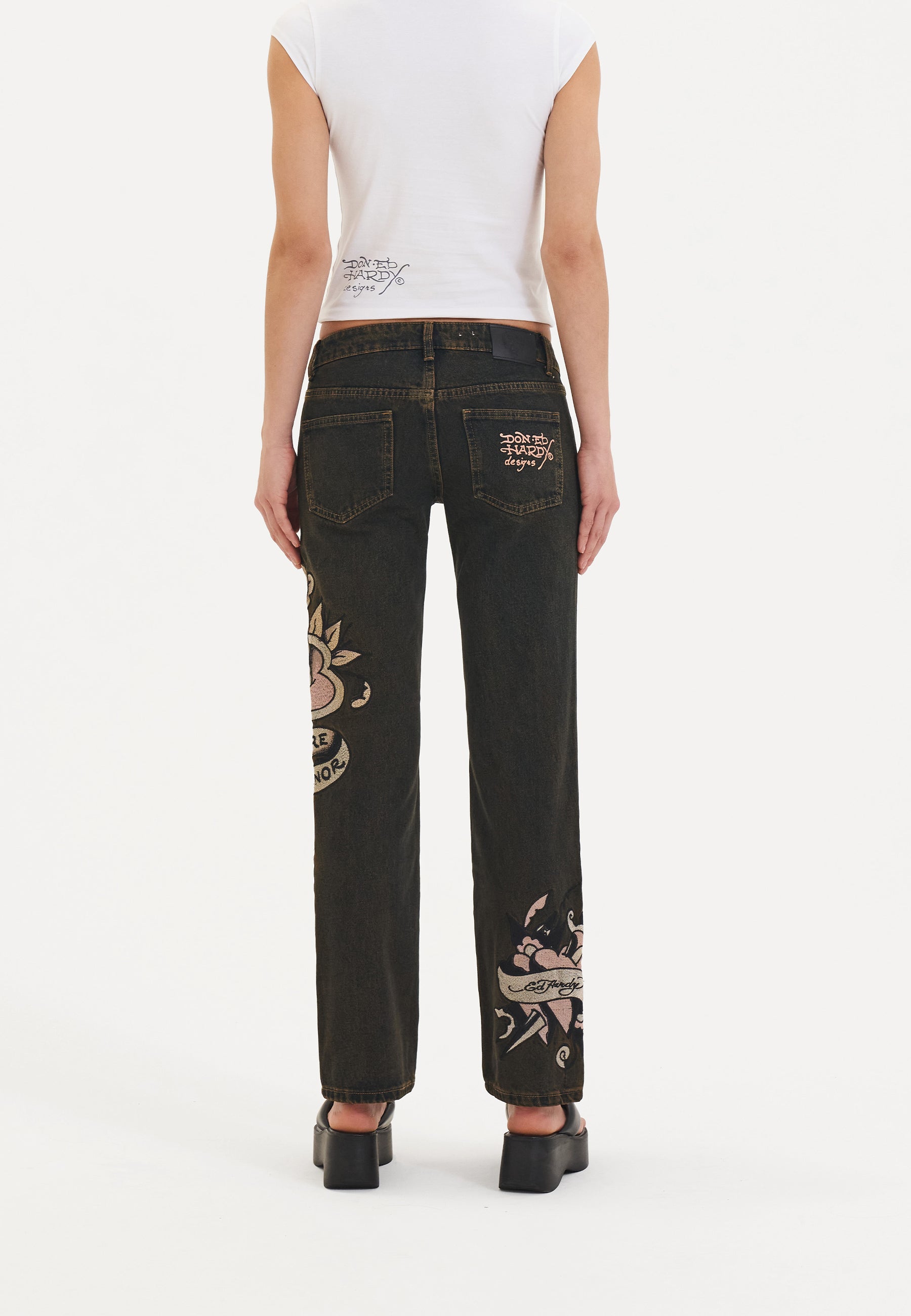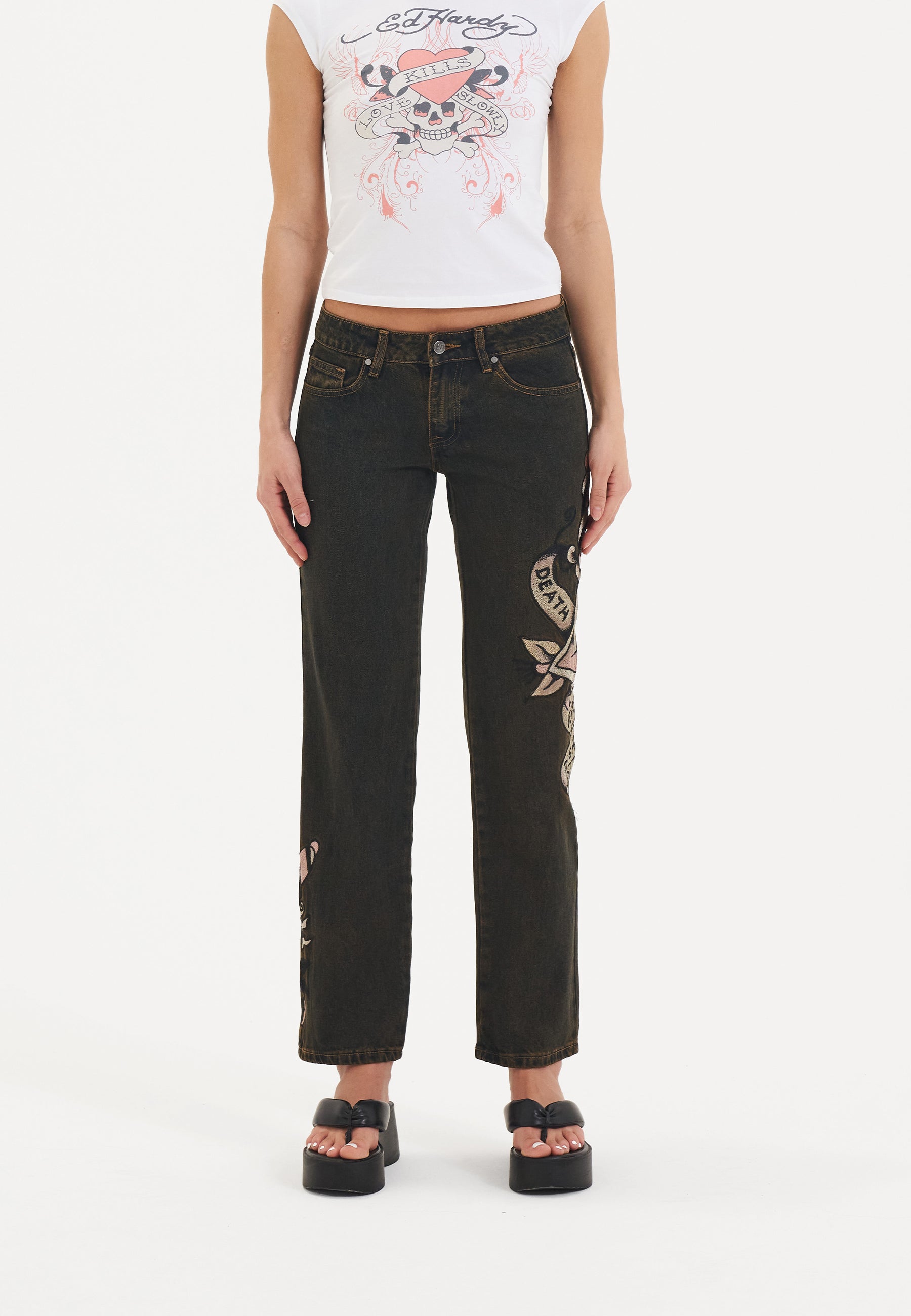 Womens Death & Dishonour Straight Denim Trousers Jeans - Black