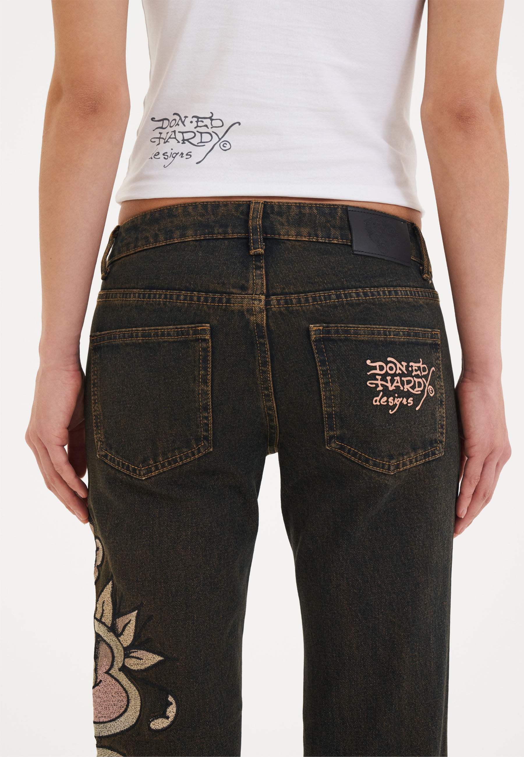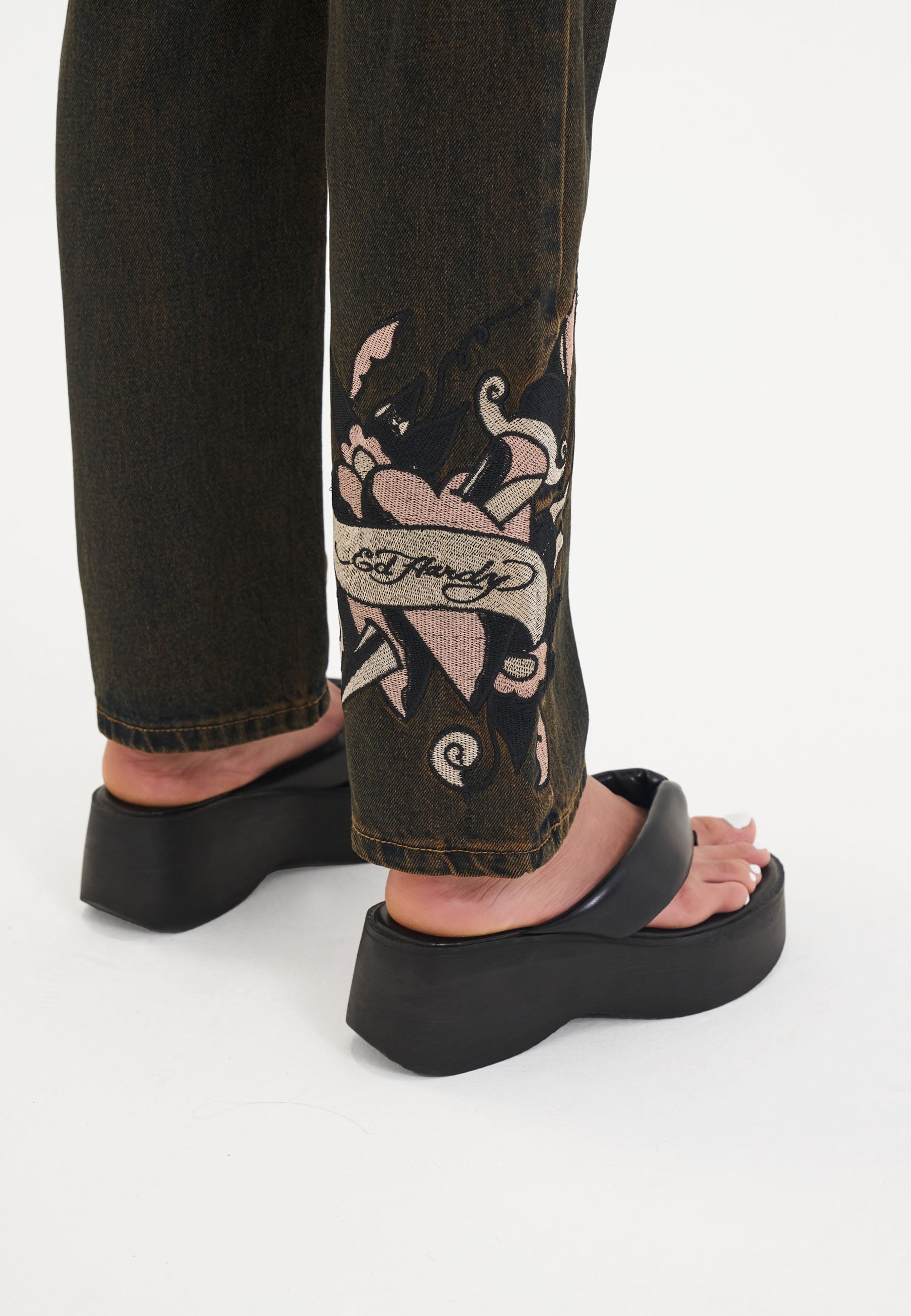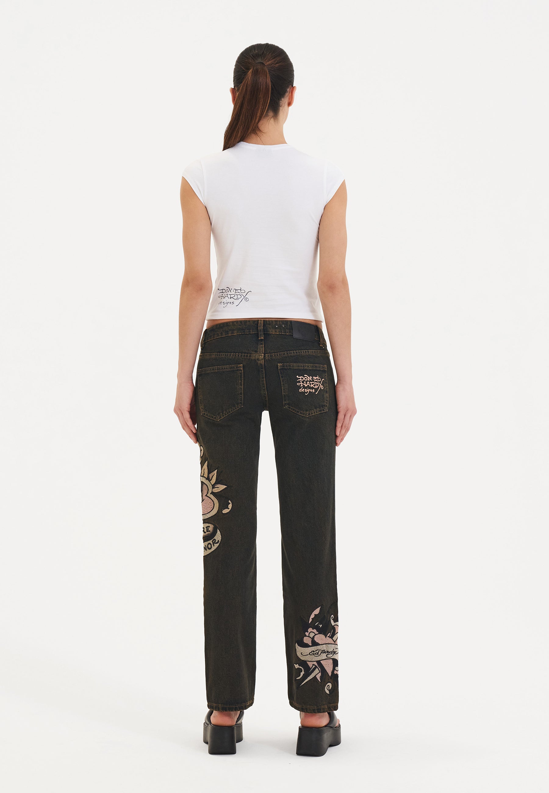 Womens Death & Dishonour Straight Denim Trousers Jeans - Black