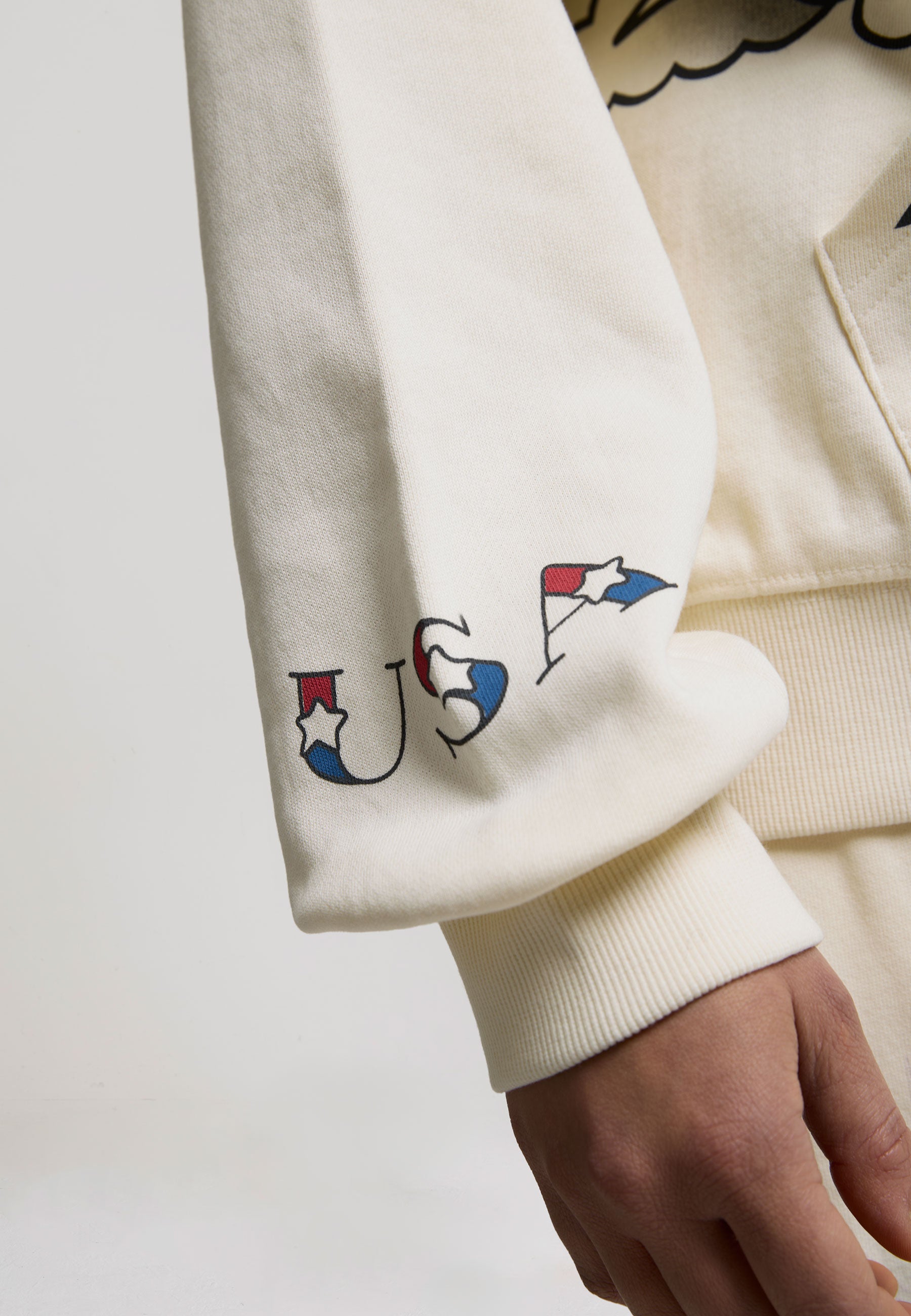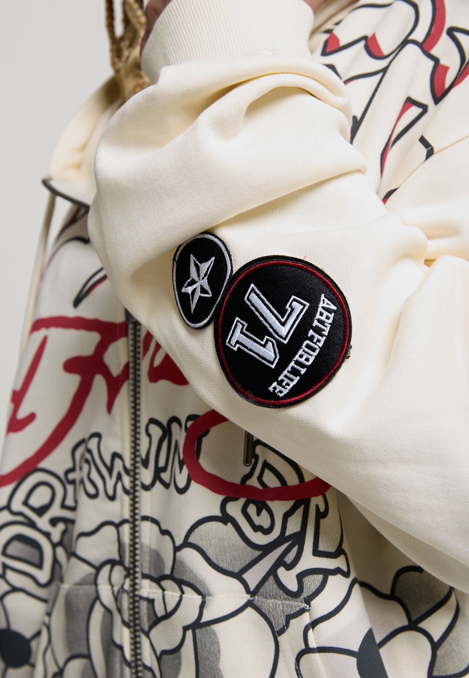 Womens Gothic Roses Relaxed Zip Thru Hoodie in Ecru