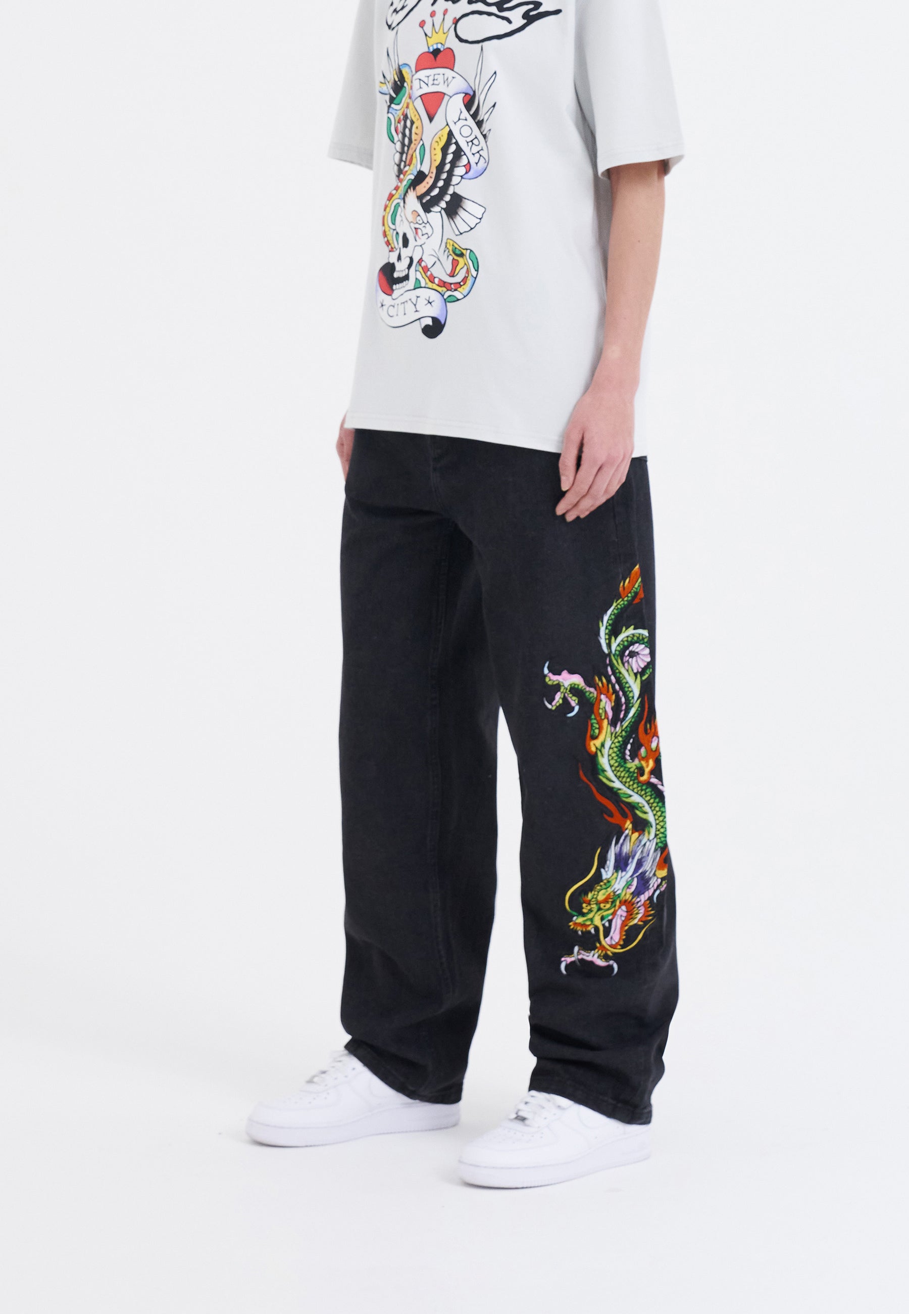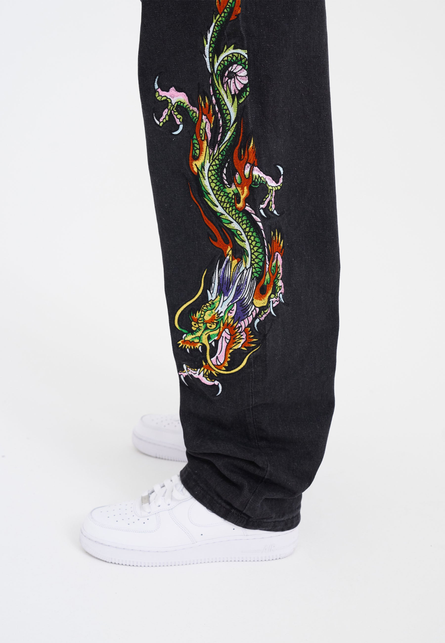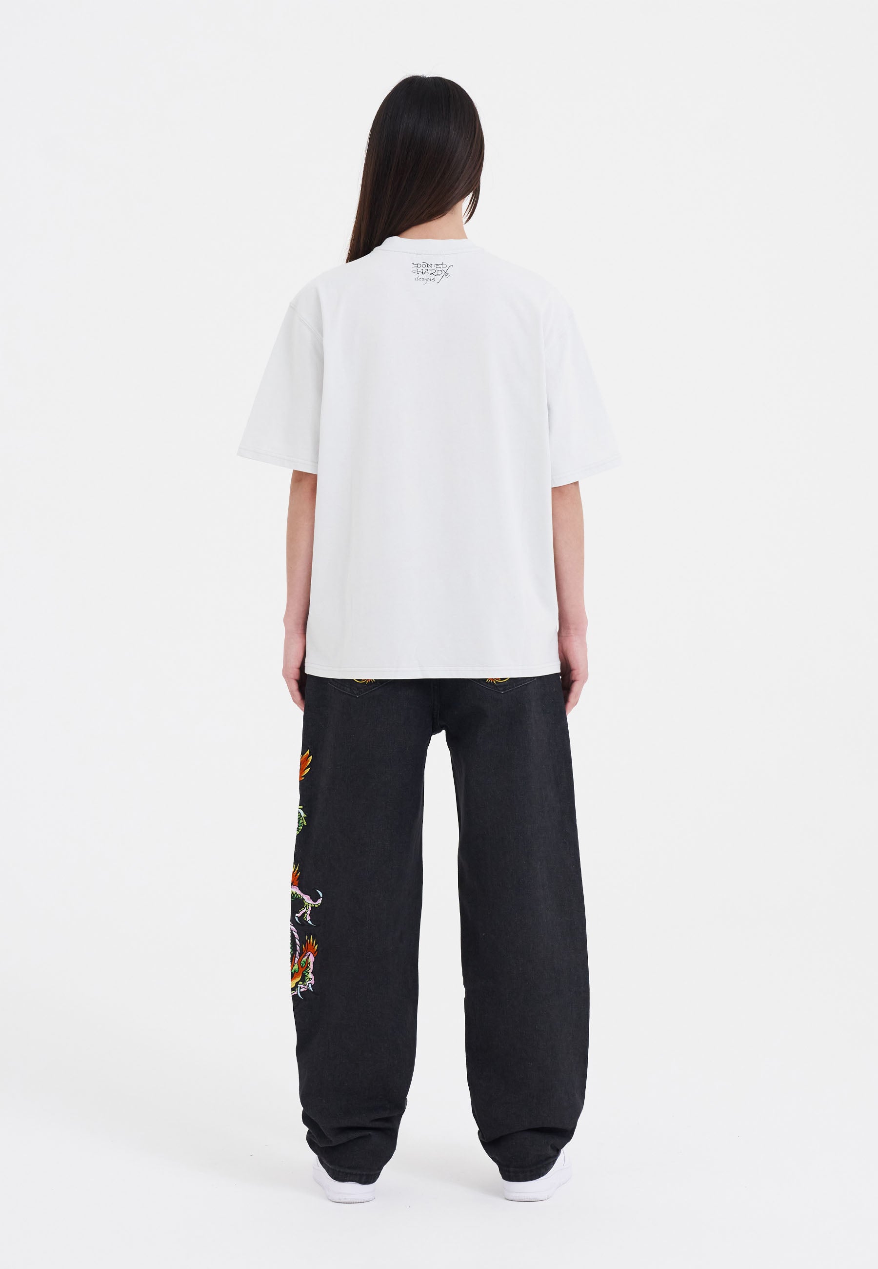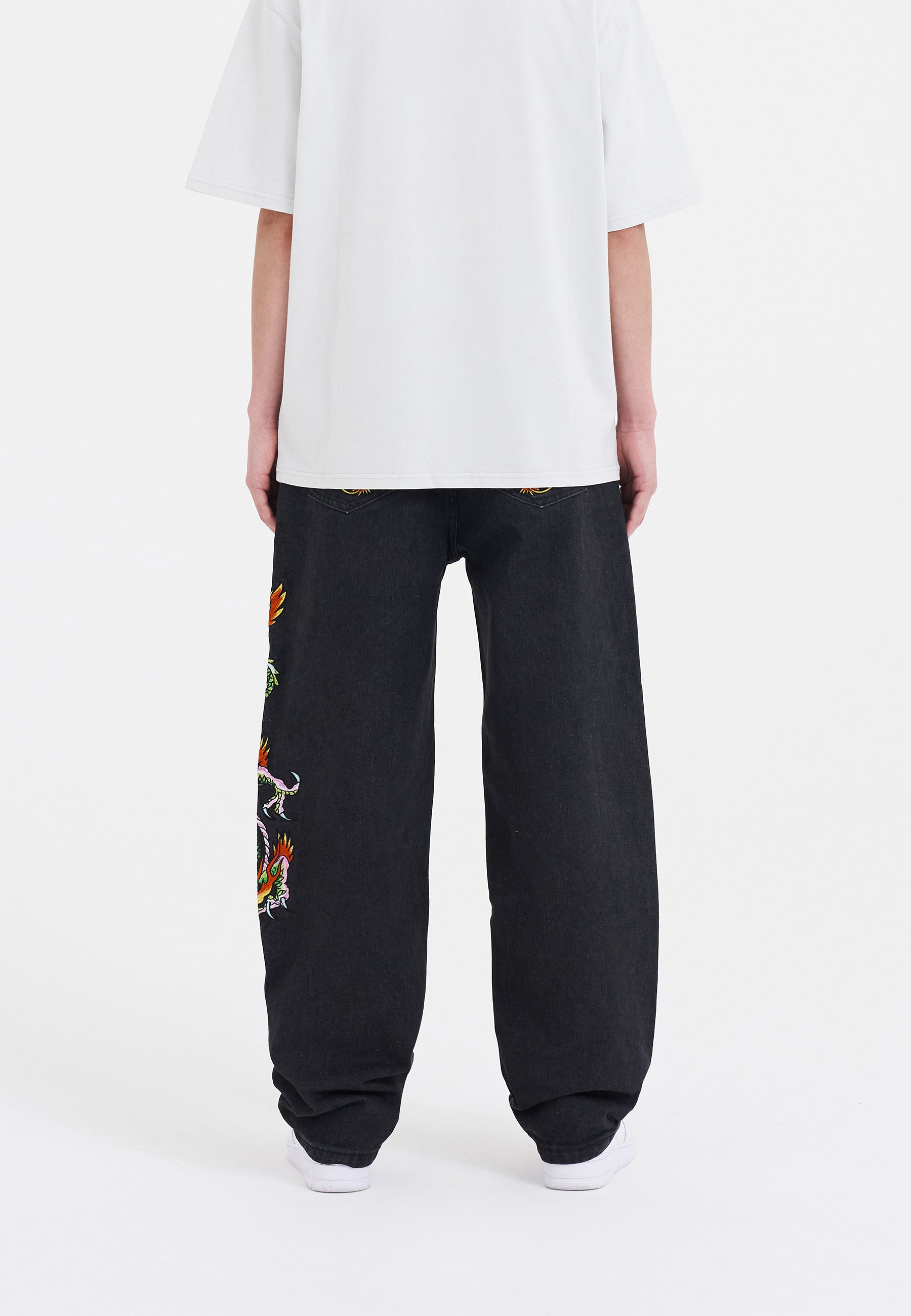 Womens Crawling Dragon Relaxed Fit Denim Trousers Jeans - Black