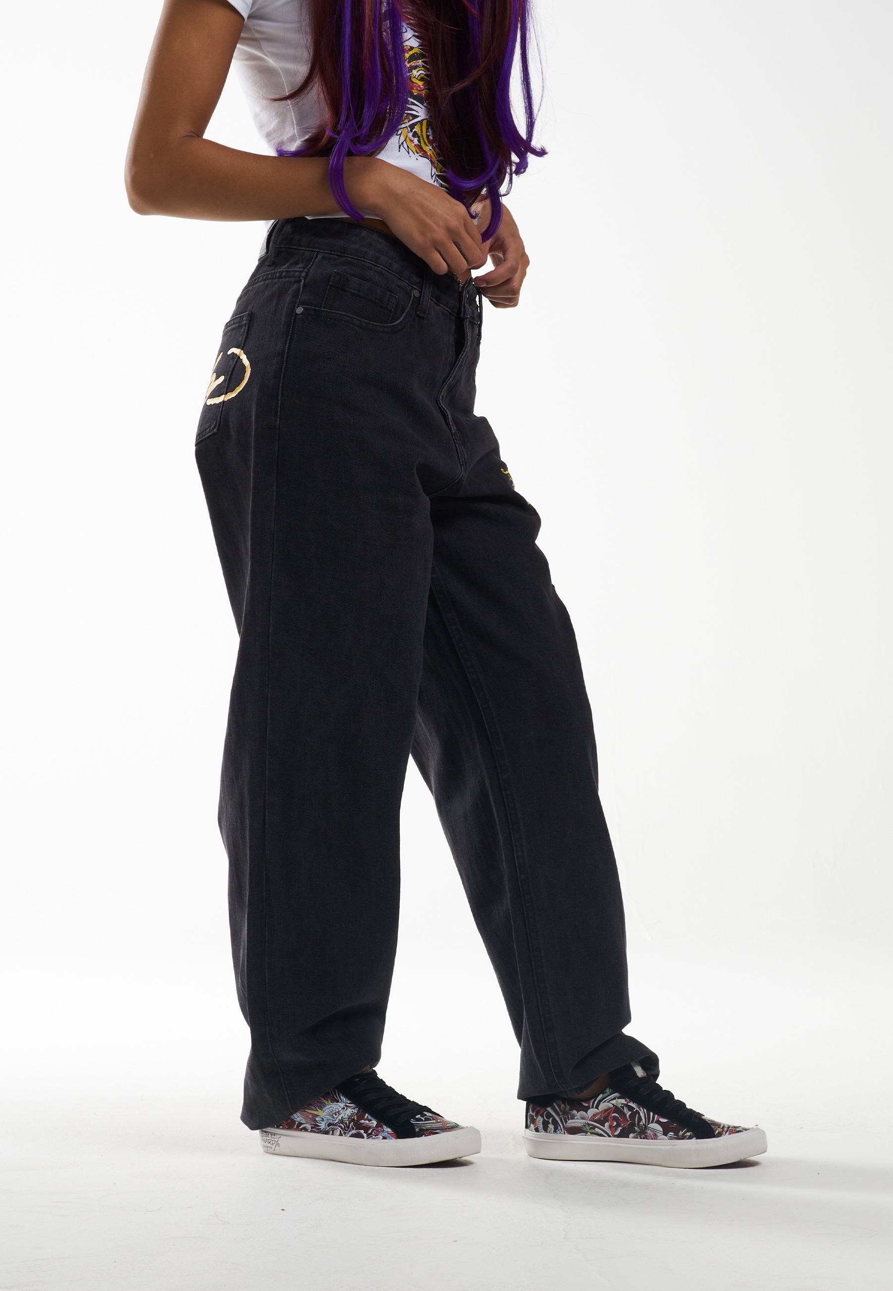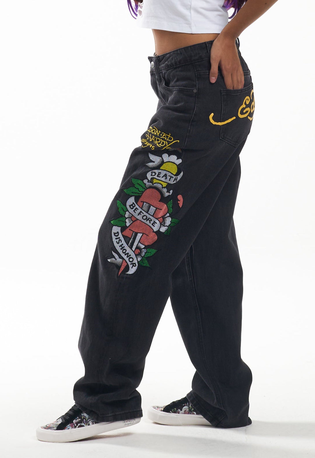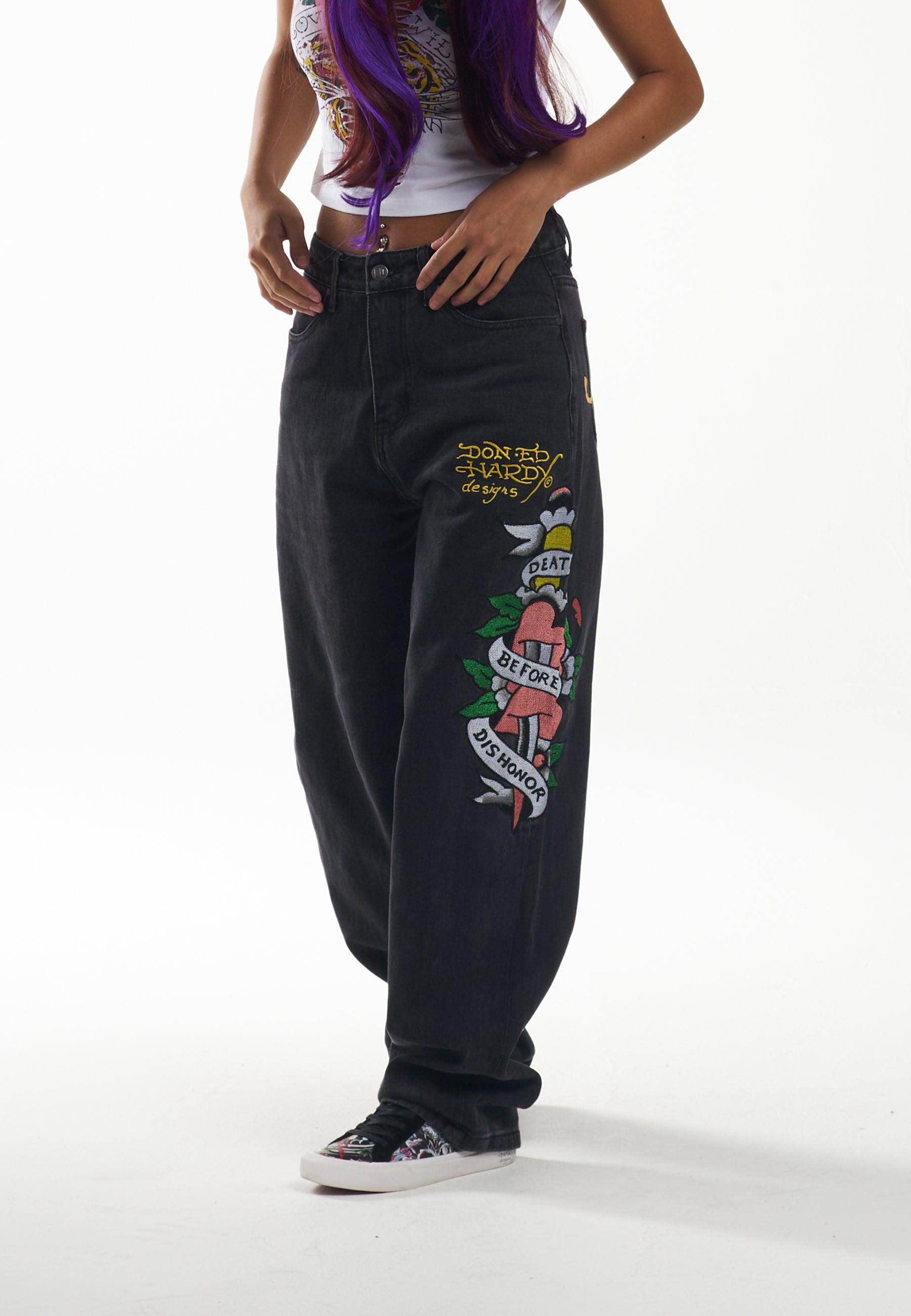 Womens Death Before Dishonour Relaxed Fit Denim Trousers Jeans - Black