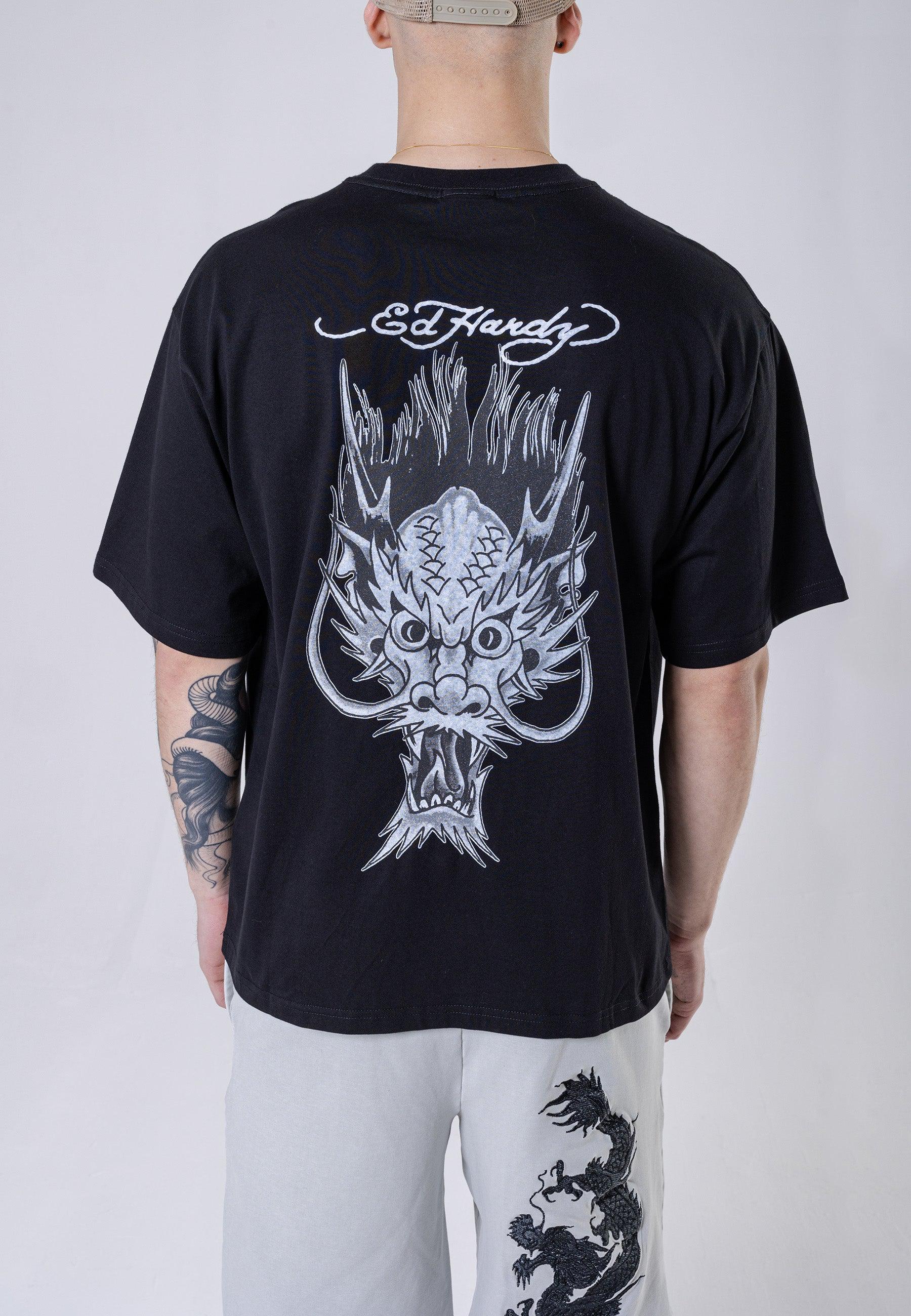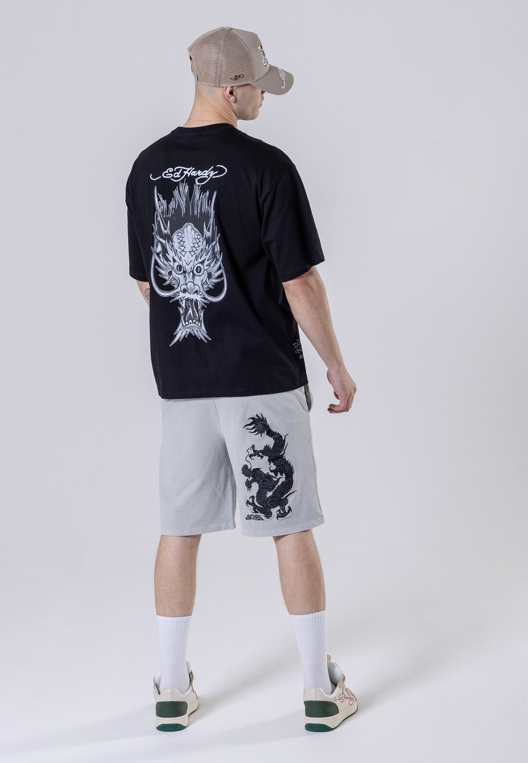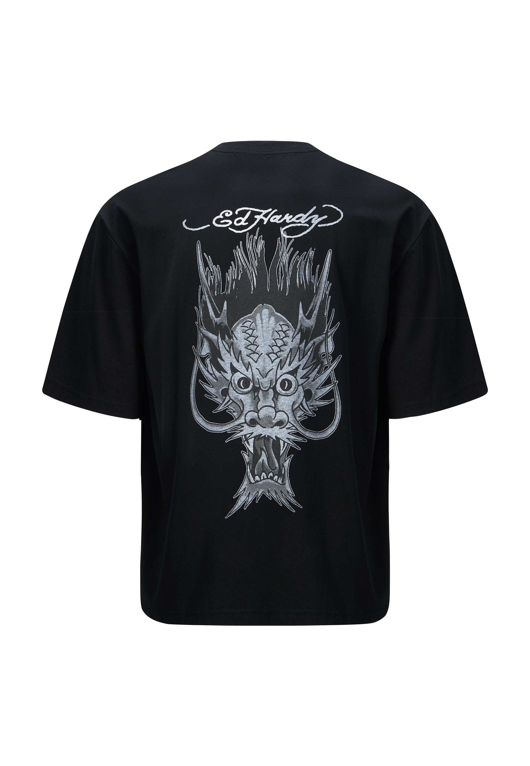 The Drags-Back-Tonal monochromatic tee features The Don's original dragon head print in high definition greyscale print in large-scale back print, as well as the signature across the chest and hip.