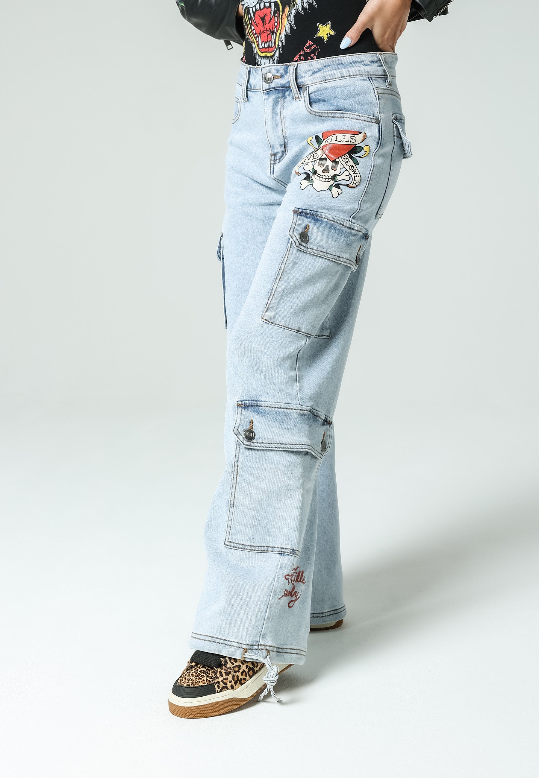 Womens Love-Kills Cargo Trousers Jeans - Bleach