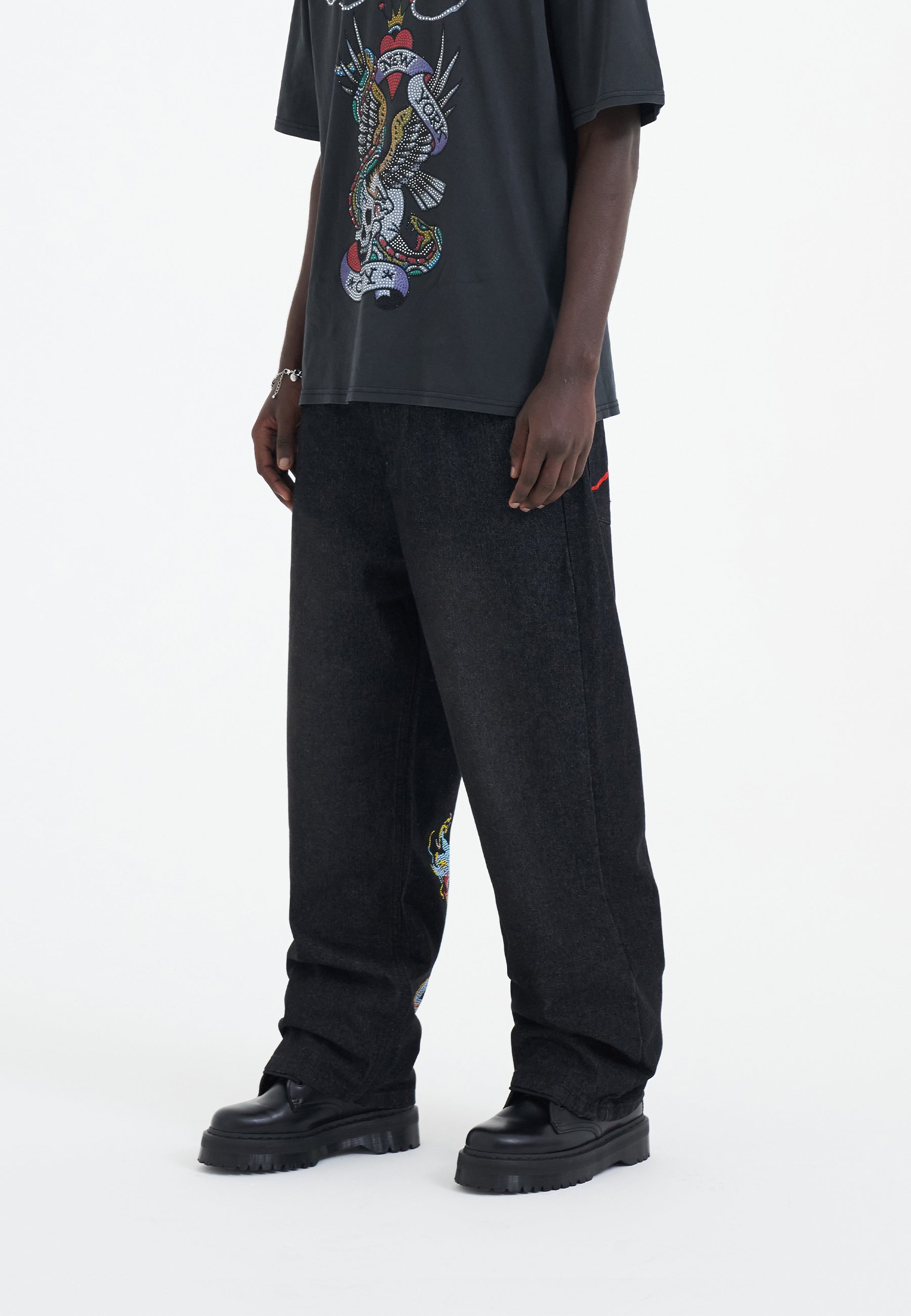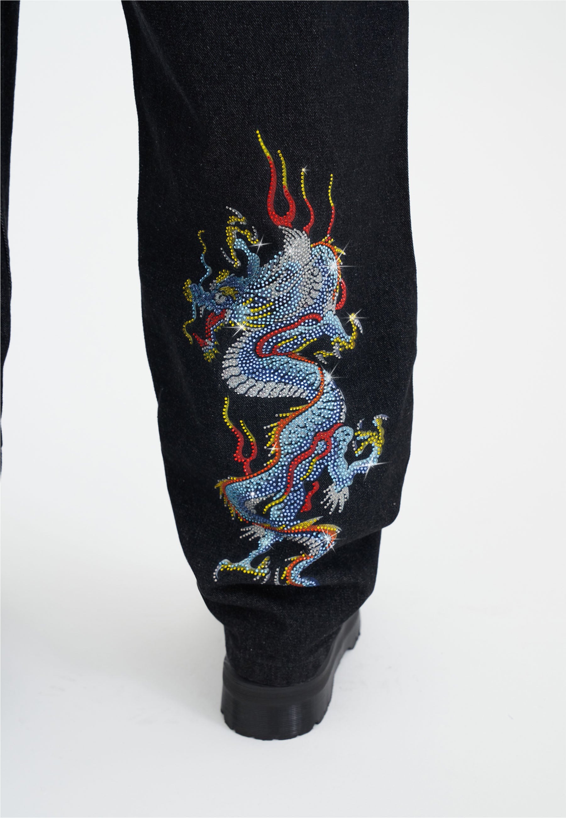 Introducing the Battle Dragon Jean, a bold leap into a new era of design, where full-colour diamante artworks adorn premium 100% cotton denim, from front to back.