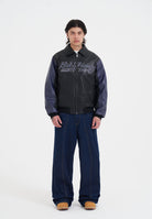 MENS DEAD OR ALIVE VEGAN LEATHER JACKET in Black/Blue