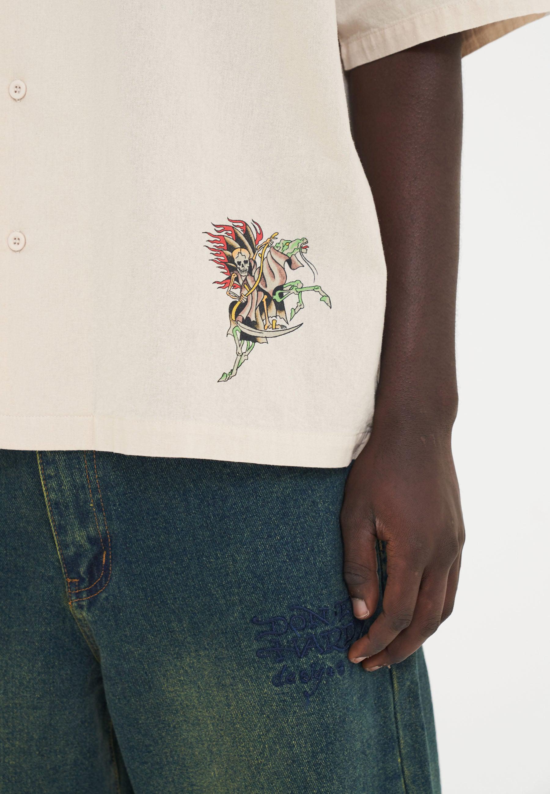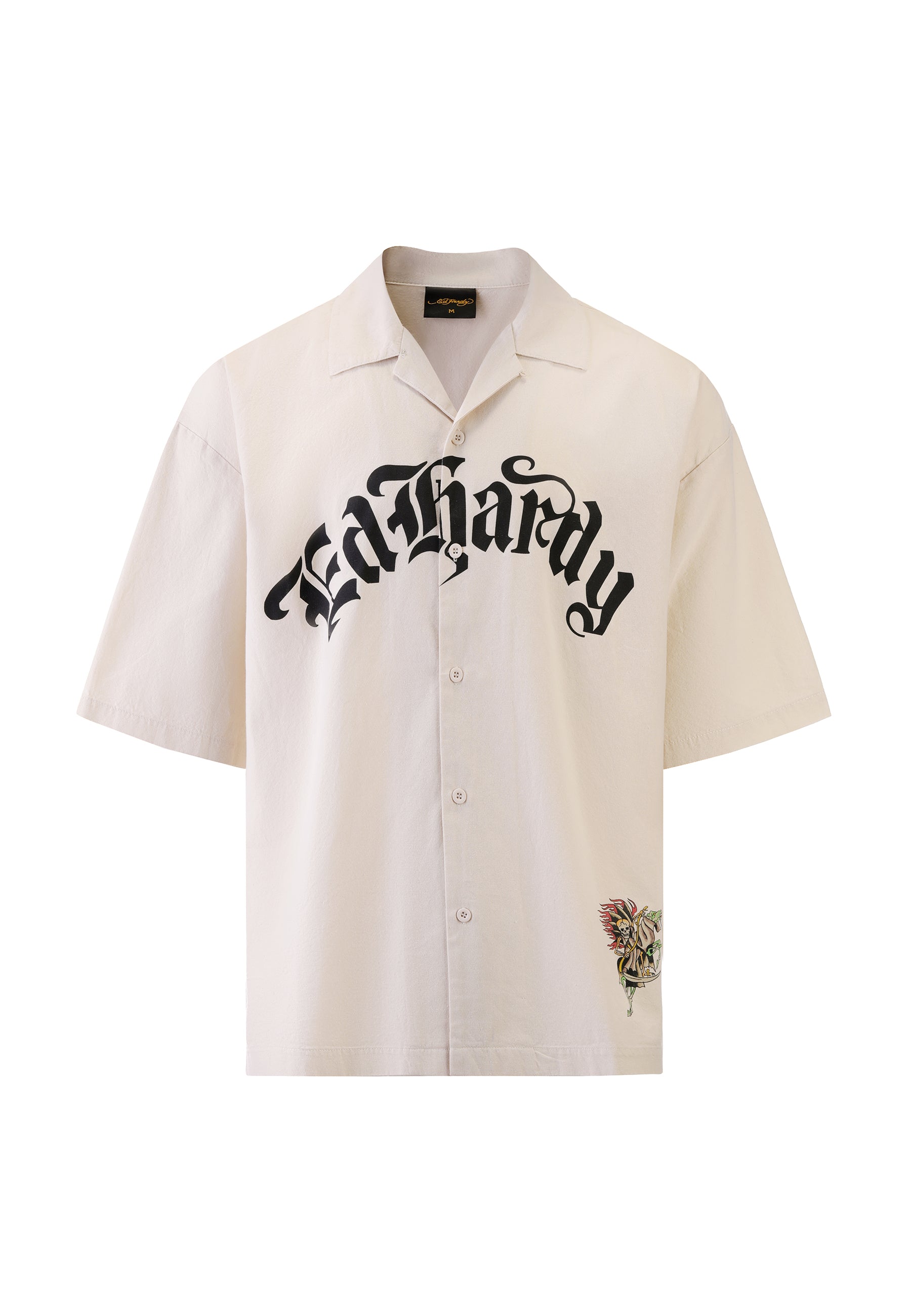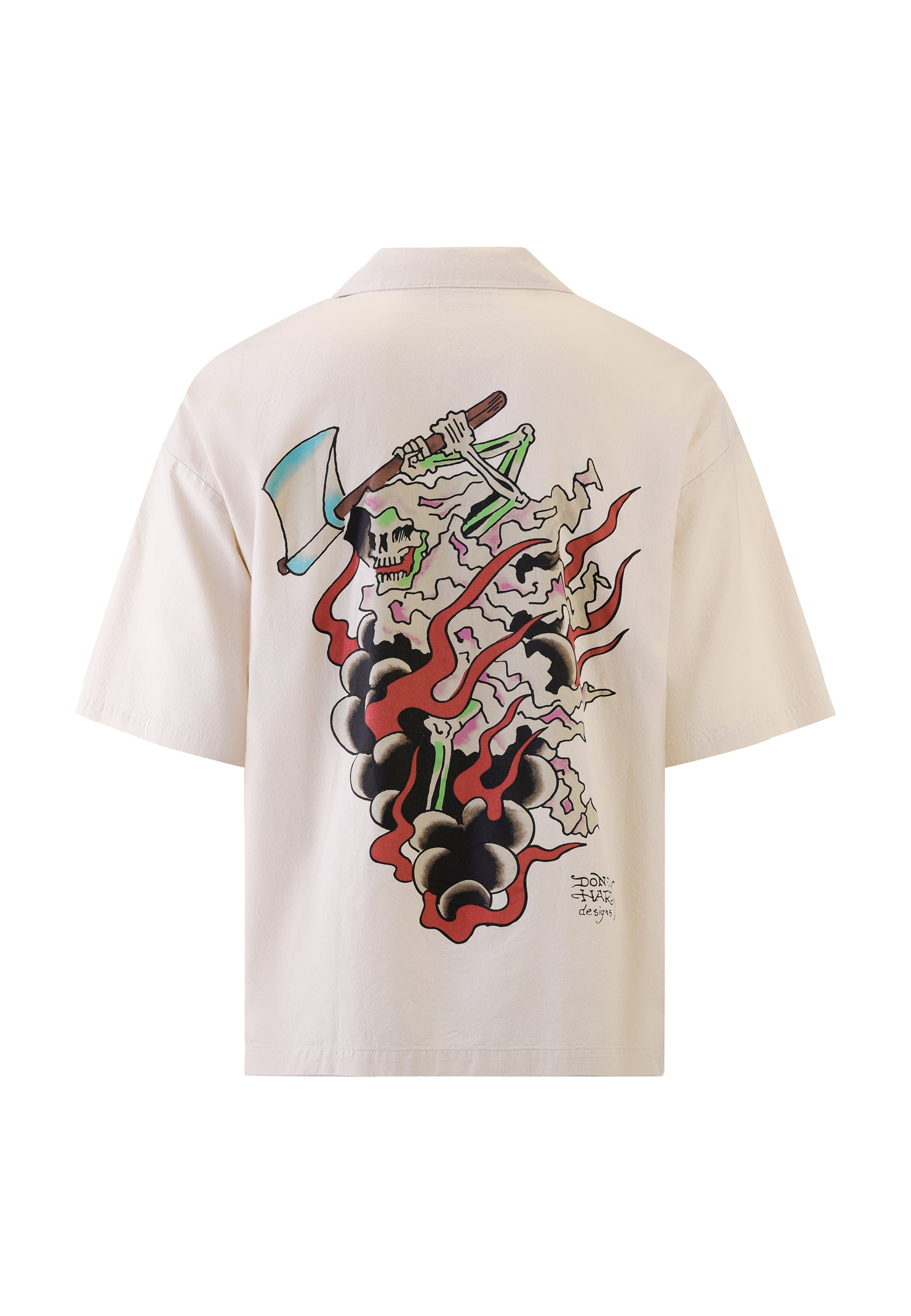 Mens Death Fighter Camp Short Sleeve Shirt - Beige