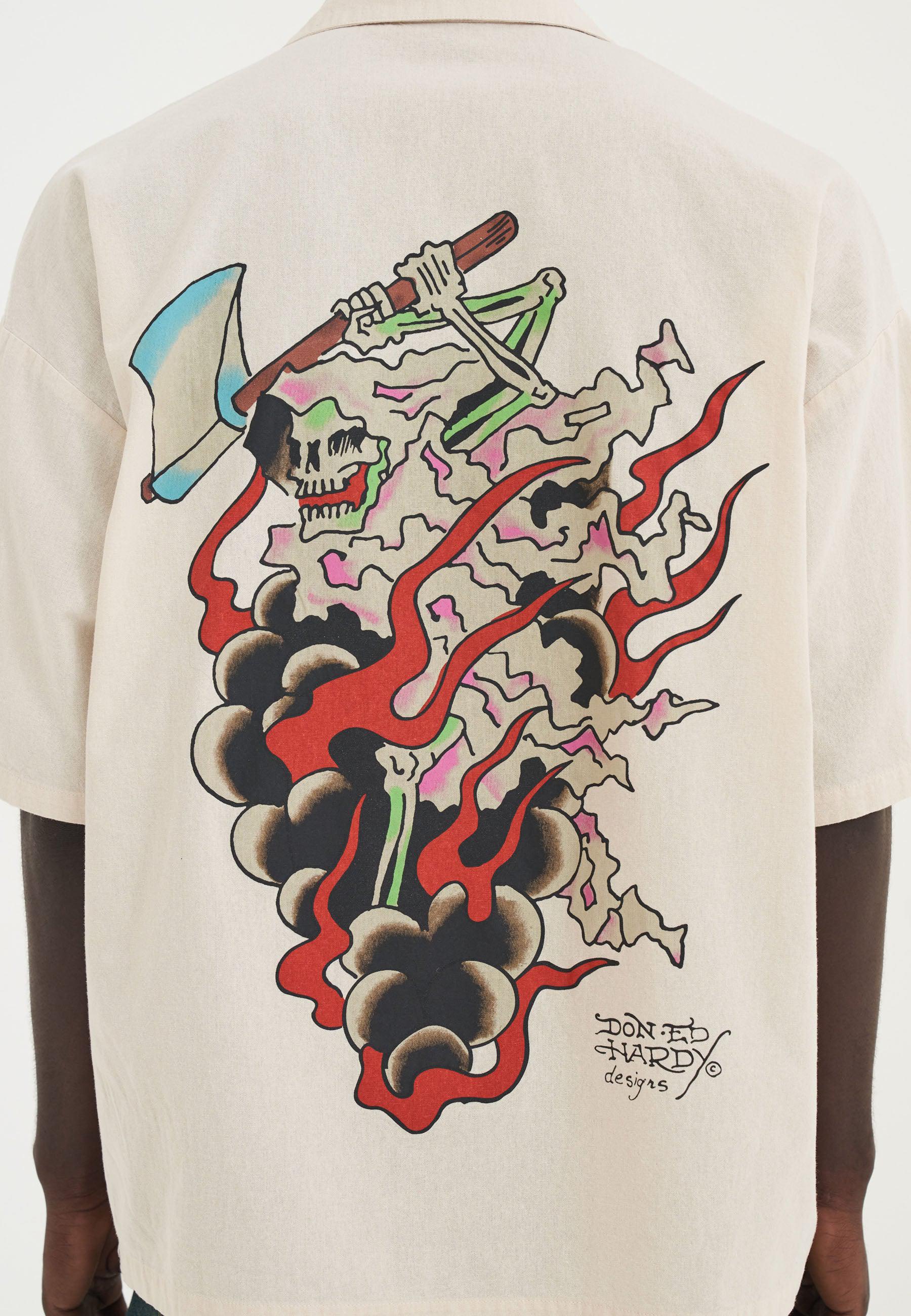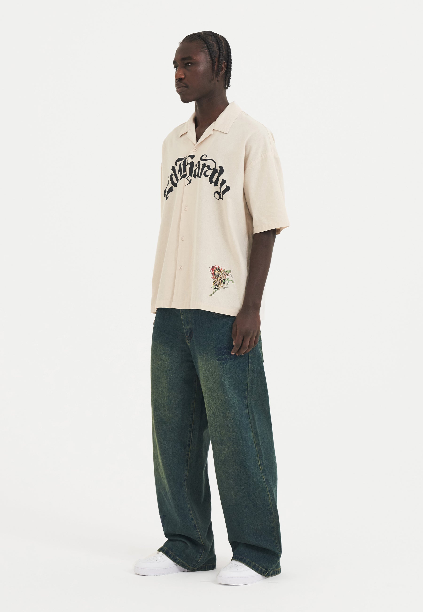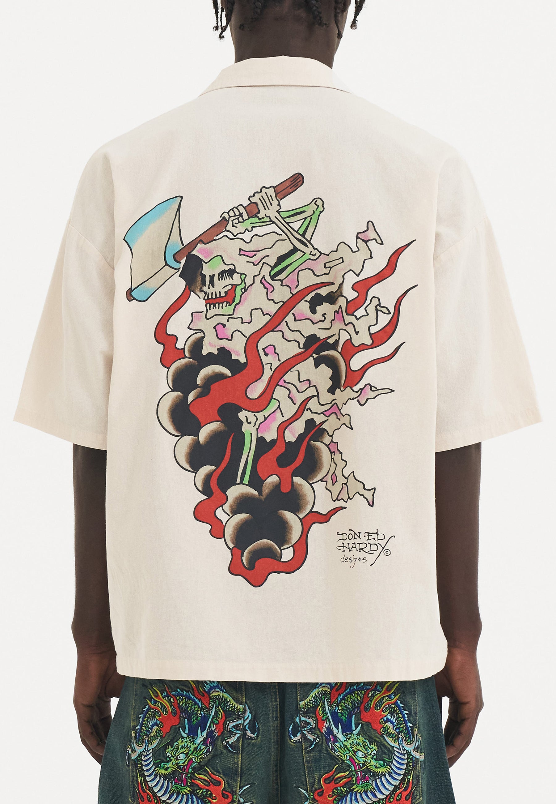 Mens Death Fighter Camp Short Sleeve Shirt - Beige