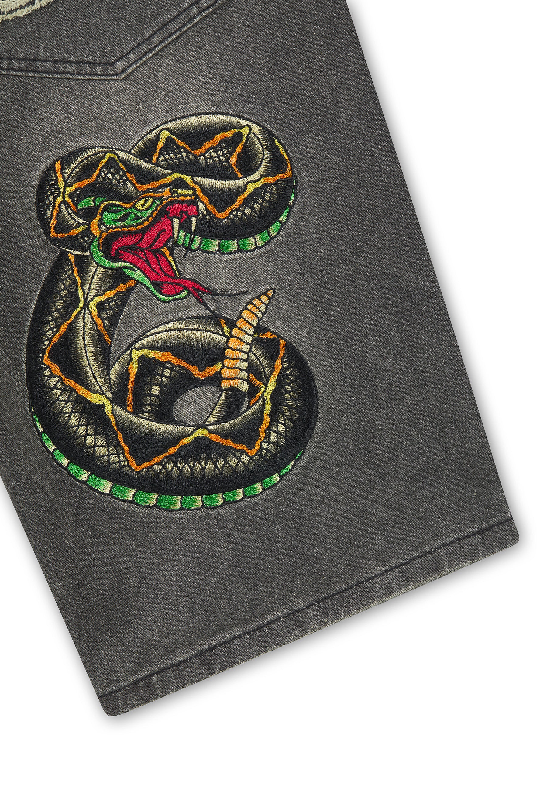 Mens Desert Snake Relaxed Denim Jort - Black Sandy Wash