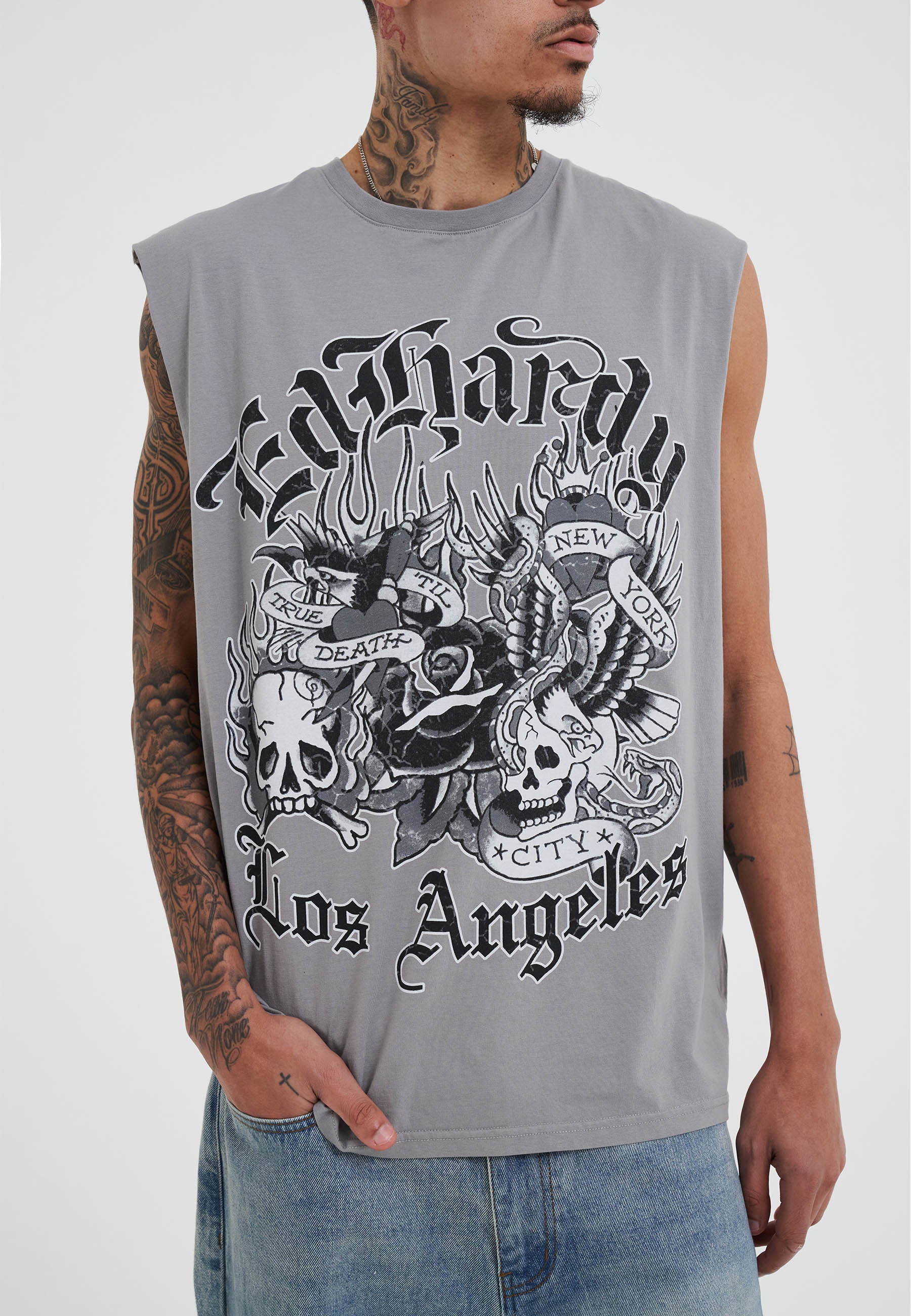 Mens Don Ed Montage Sleeveless T-Shirt - Grey