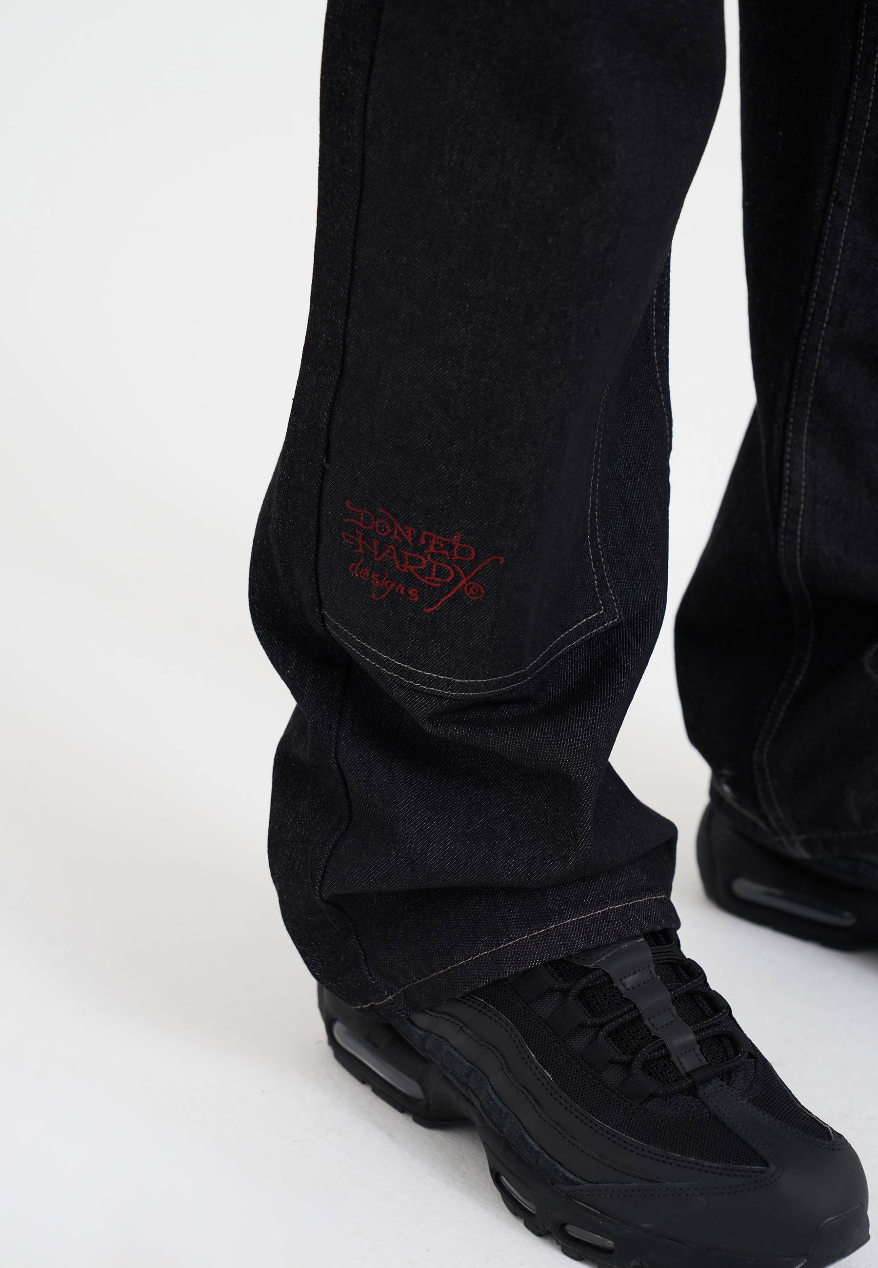Mens Double Knee Drag Dagger Denim Trousers Jeans - Black