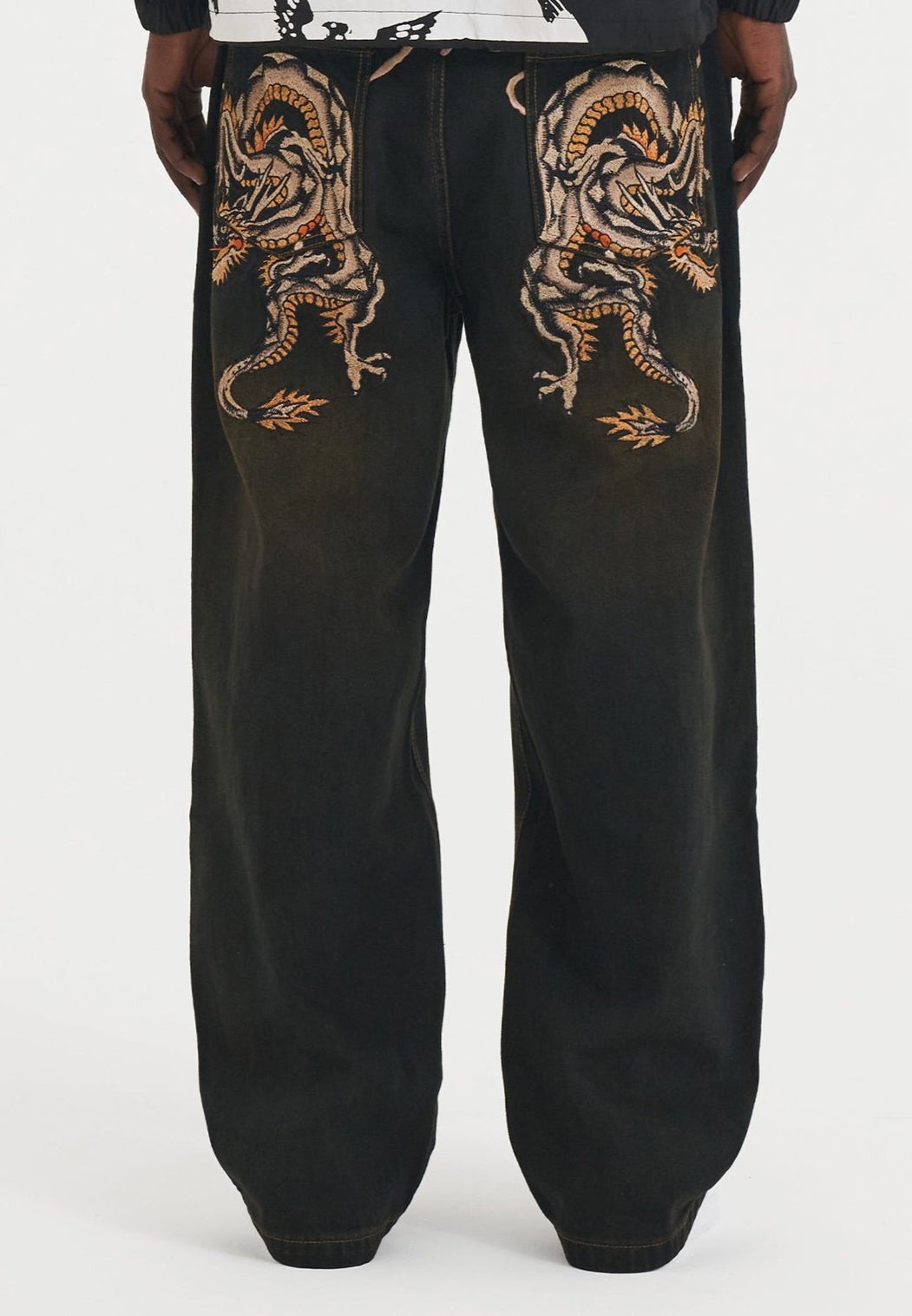 Step into the punk-inspired revolution with our revamped cult denim classic and the Dragon Crawl Jeans, now in the latest Brown Tint Denim Wash.