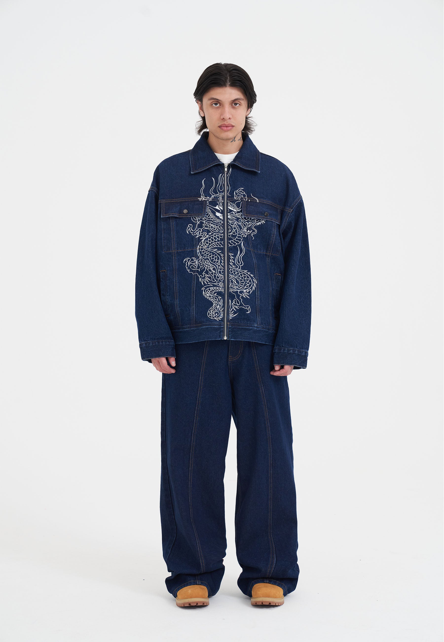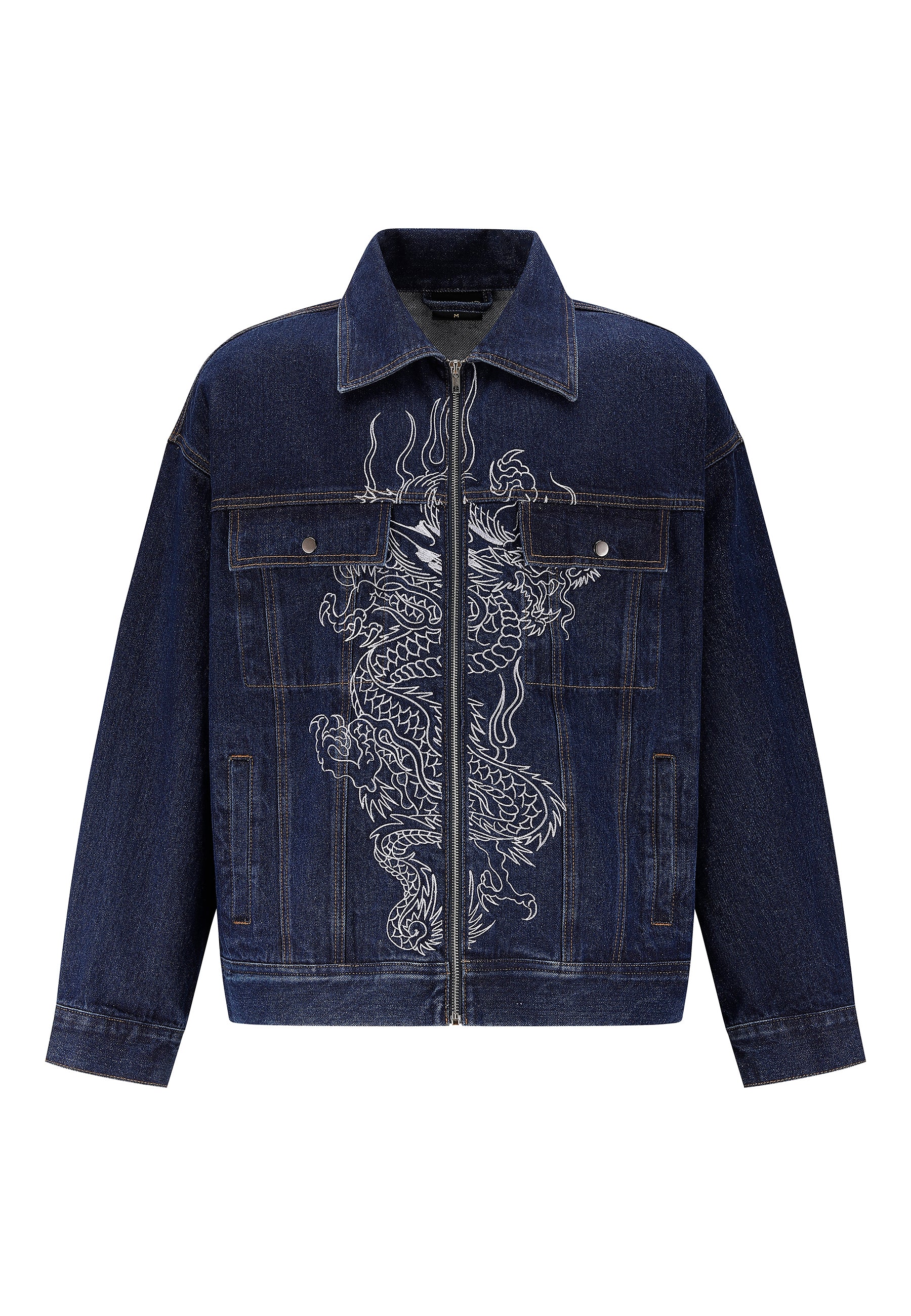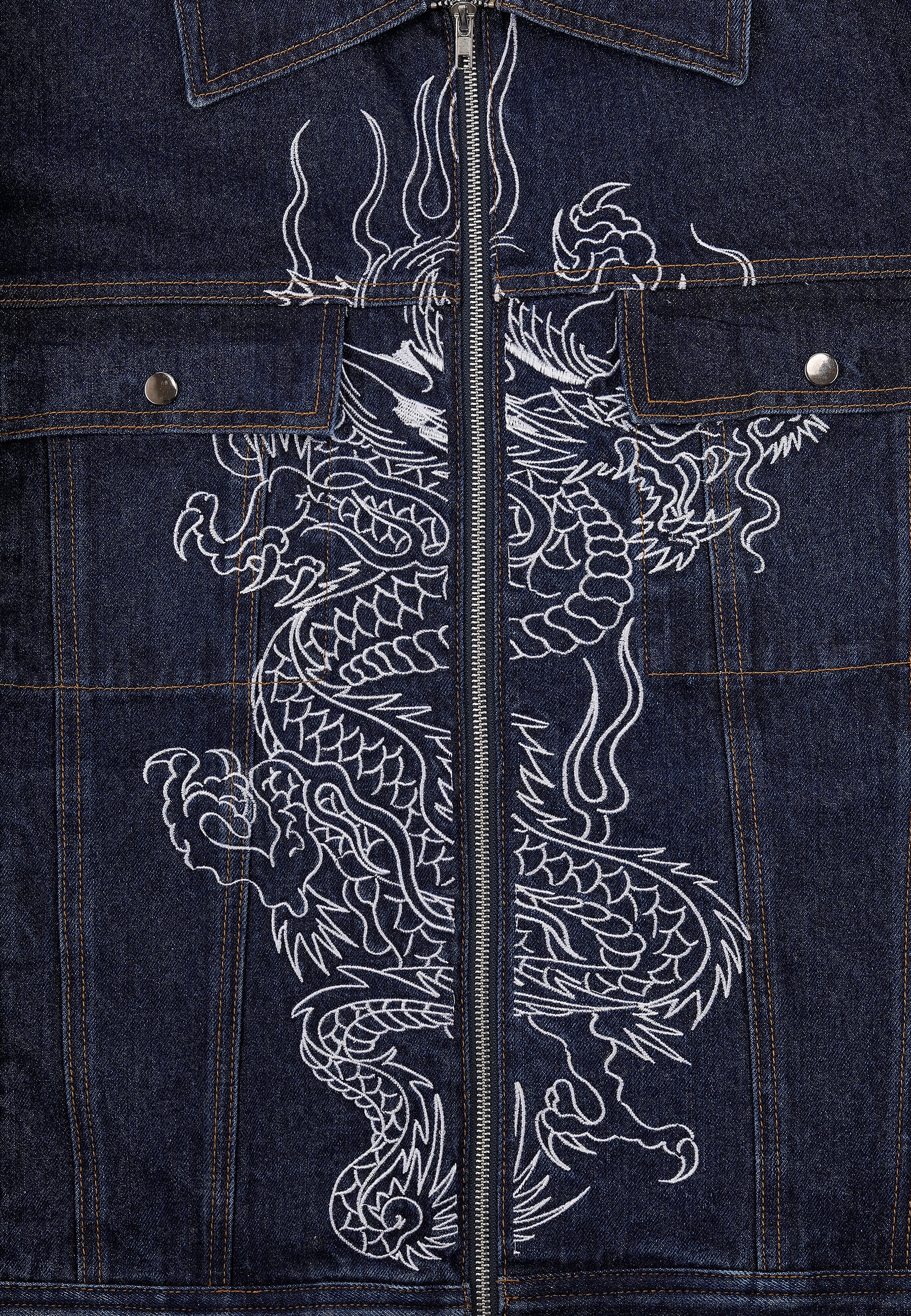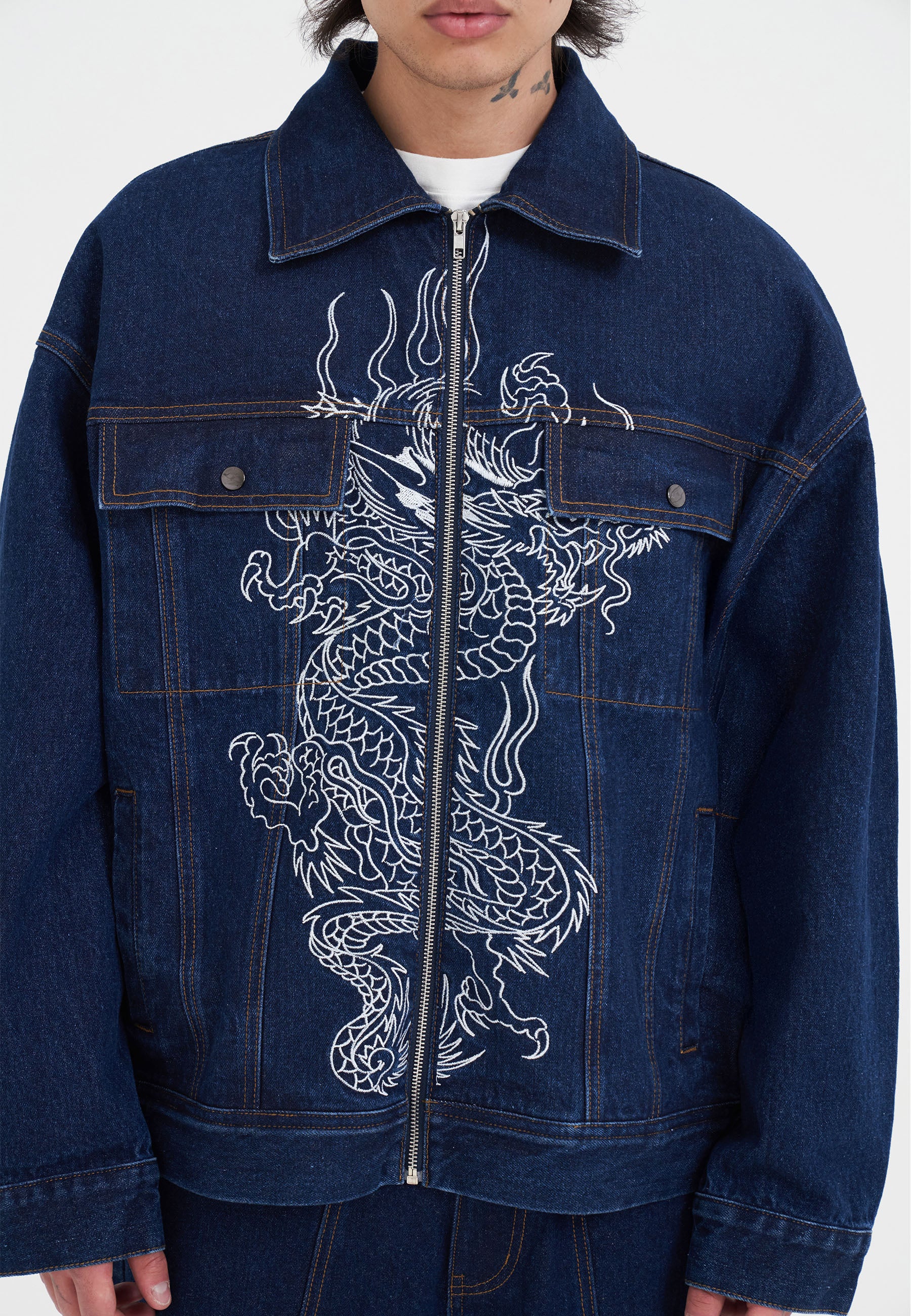 MENS DRAGON EMBRIODERED DENIM JACKET in Indigo
