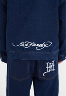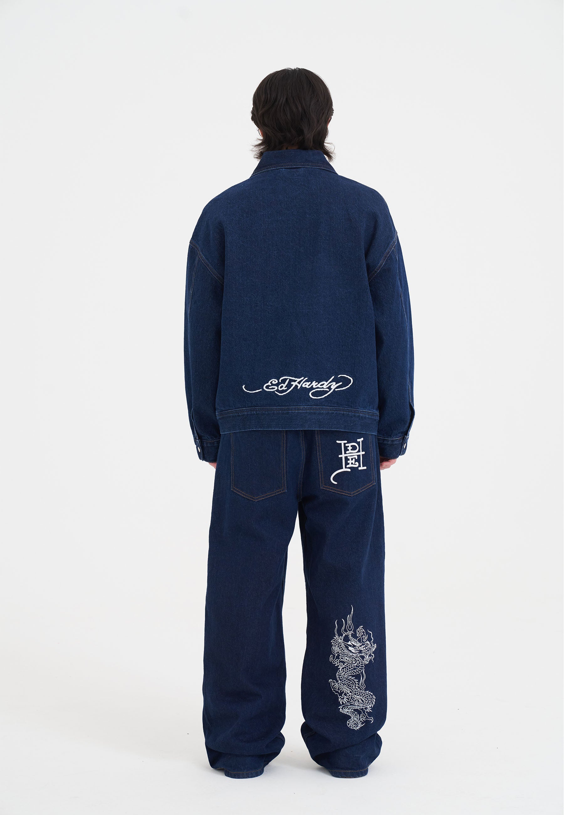 Mens Dragon Embroidered Denim Jacket - Indigo