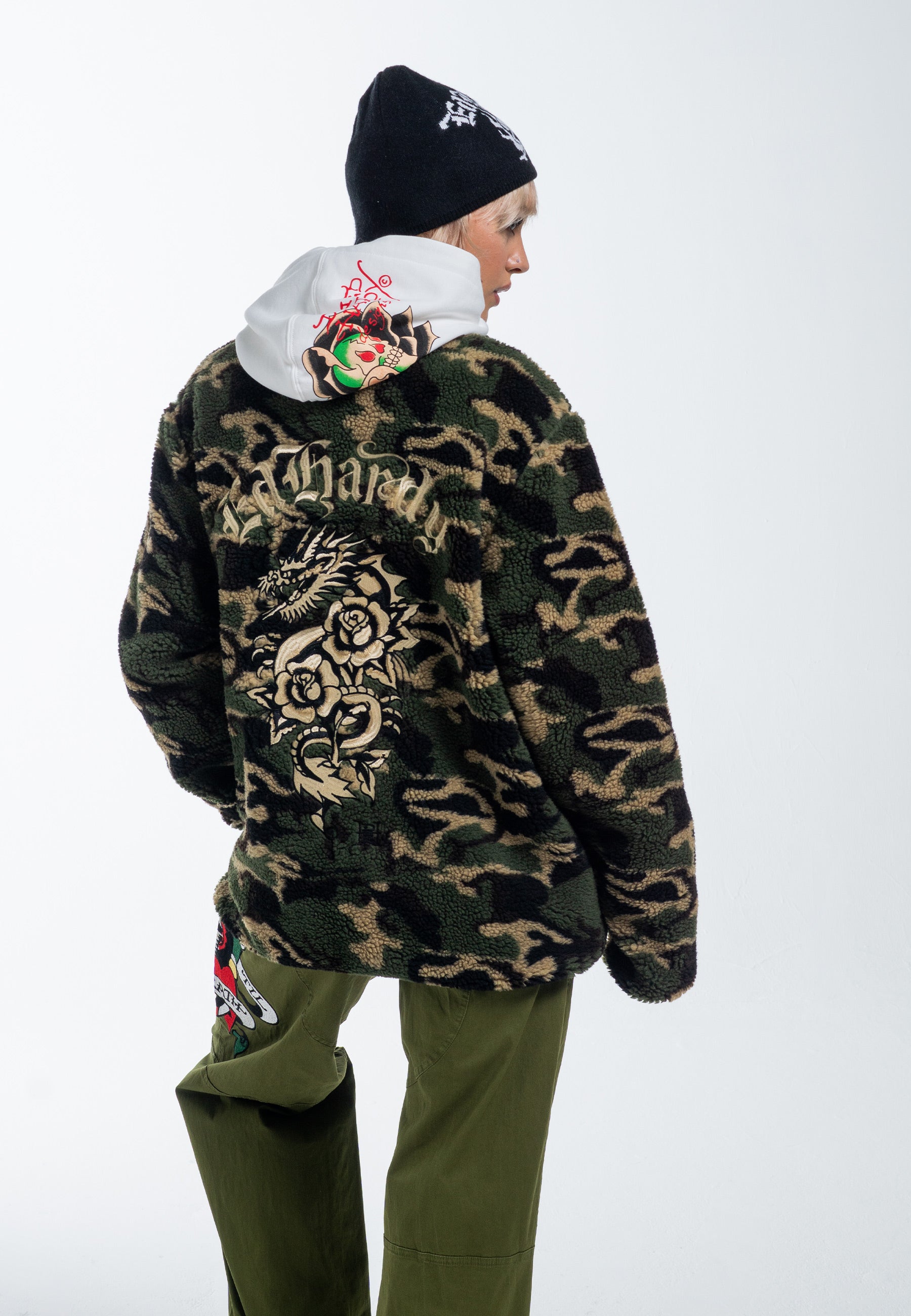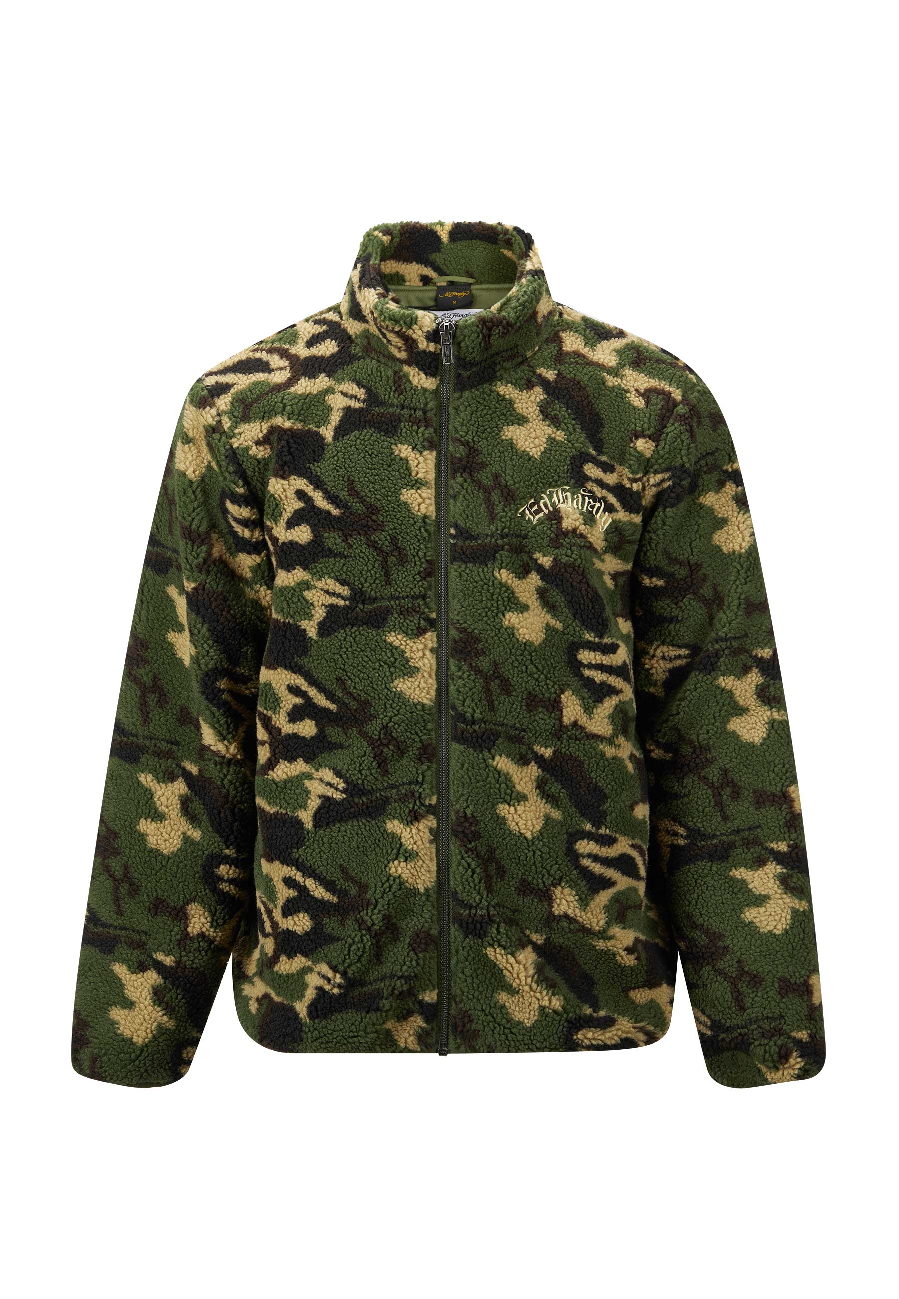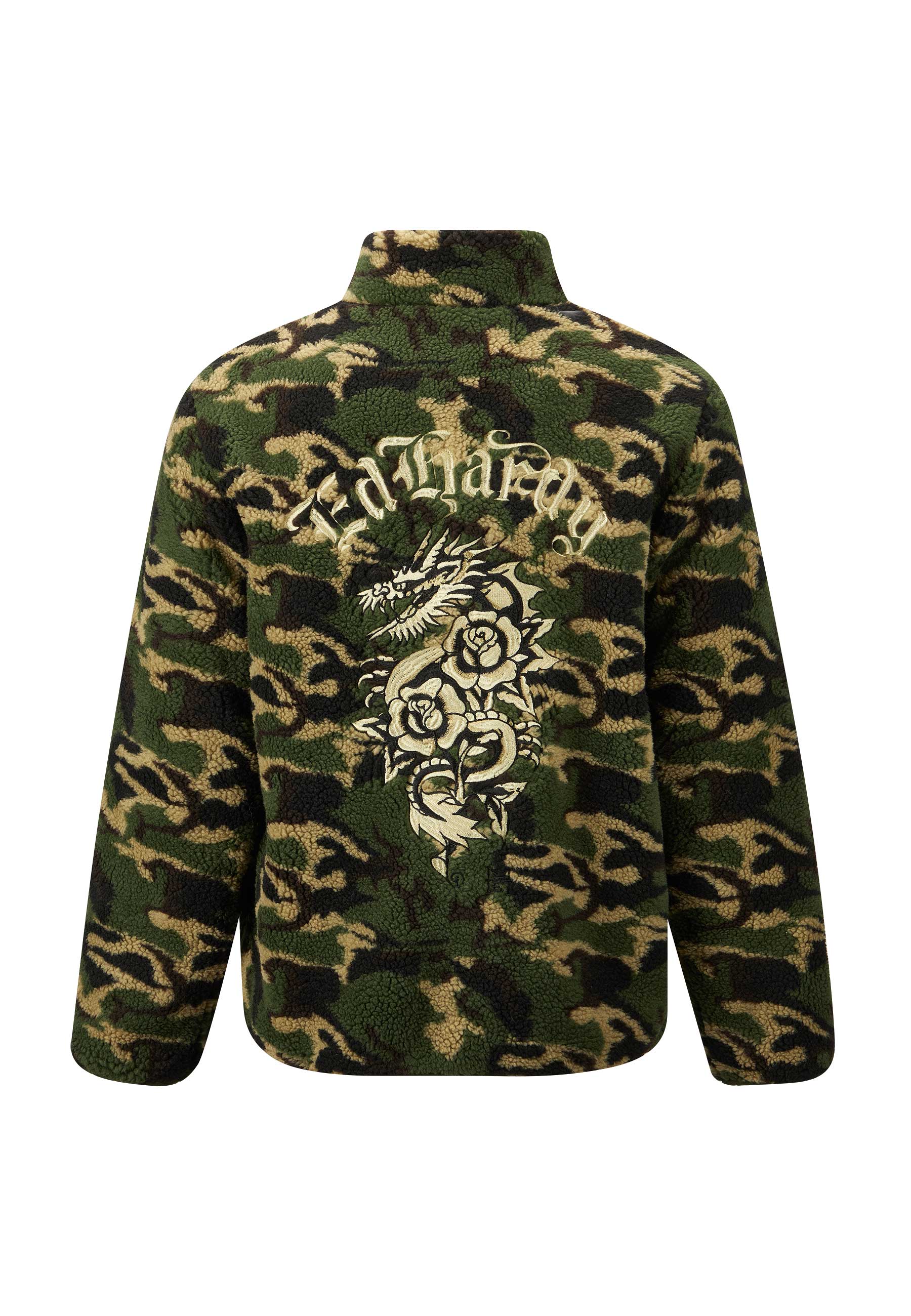 Mens Dragon & Rose Camo Zip Thru Borg Fleece Jacket - Green Camo