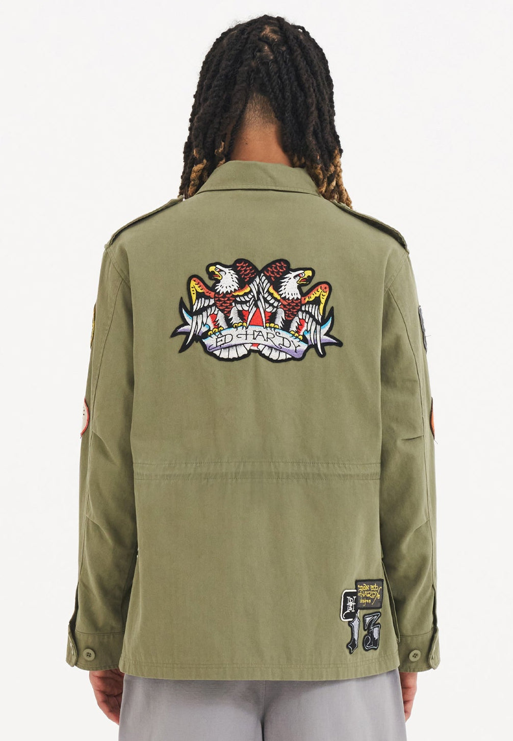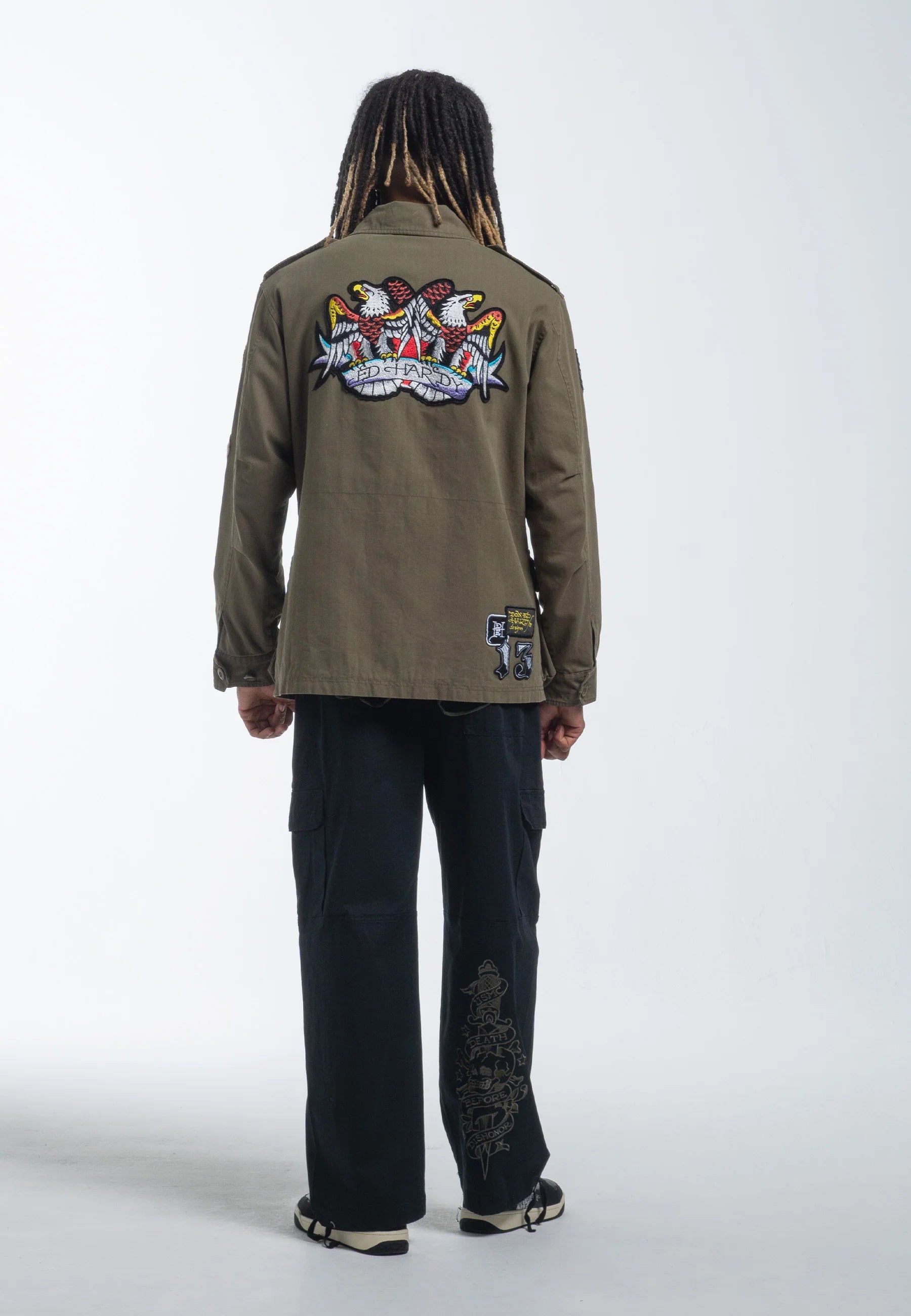Mens Eagle Crystal Rock Field Jacket - Khaki