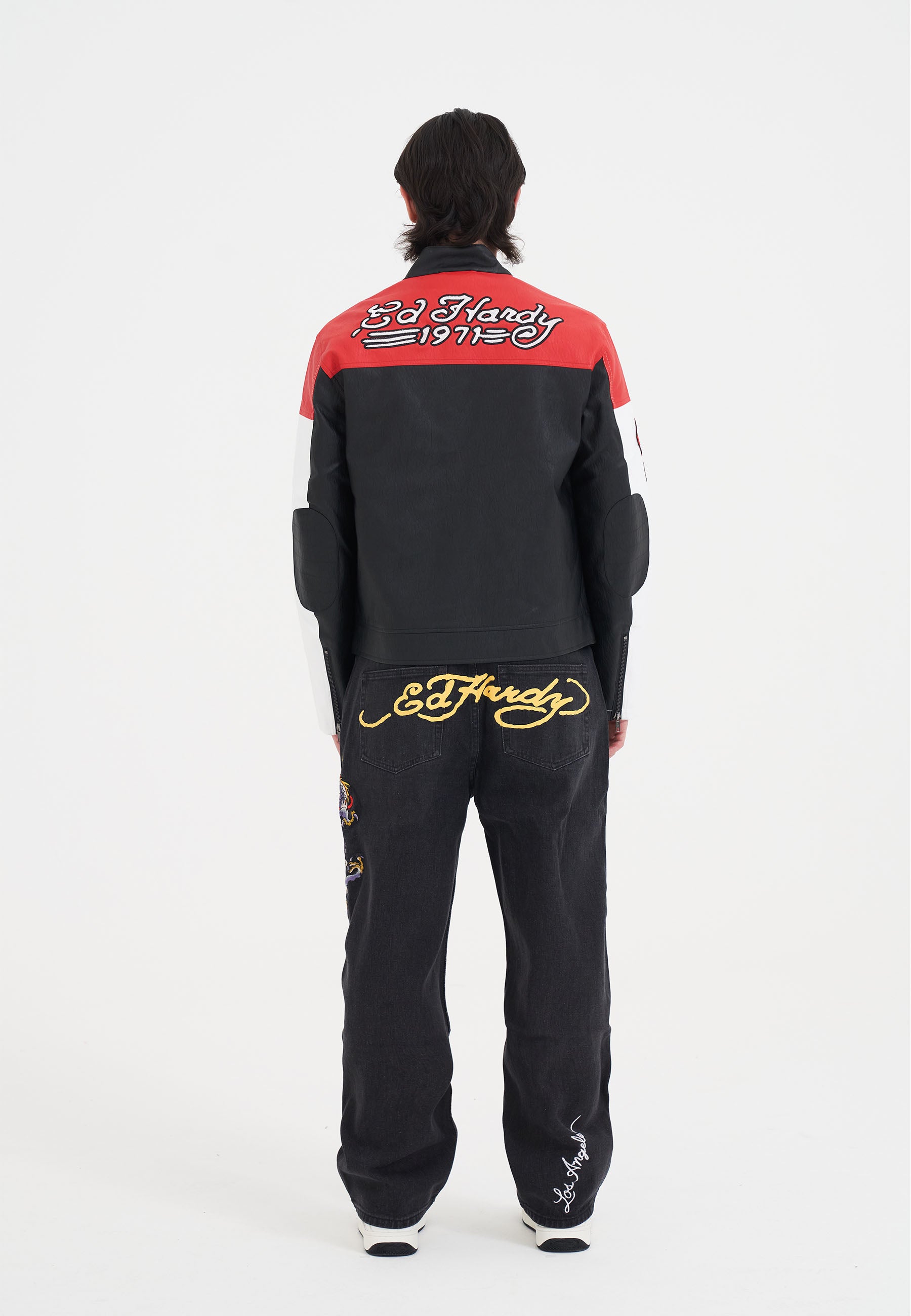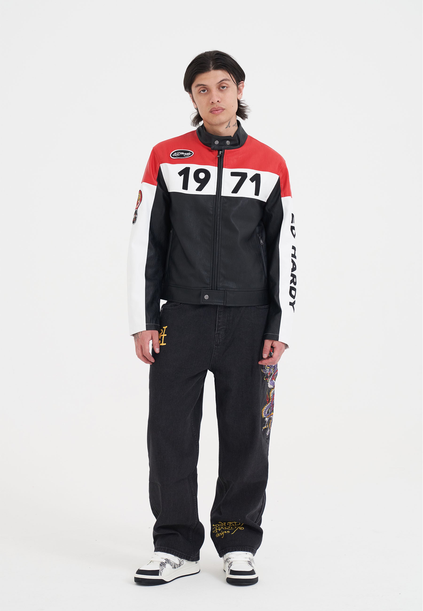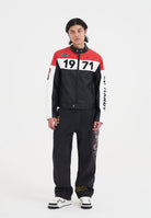 Unisex ED-1971 Moto Biker Jacket- Black/Red/White