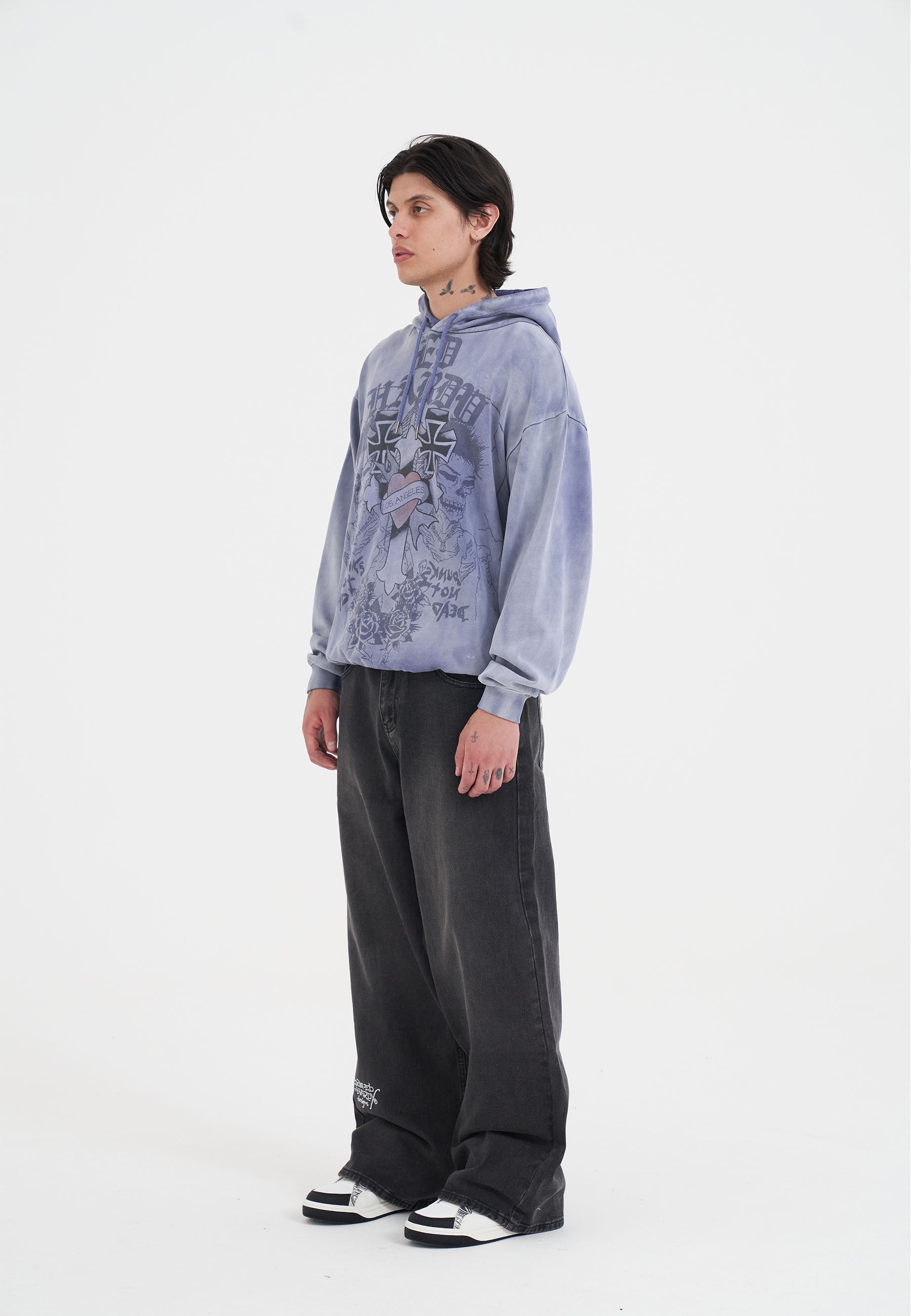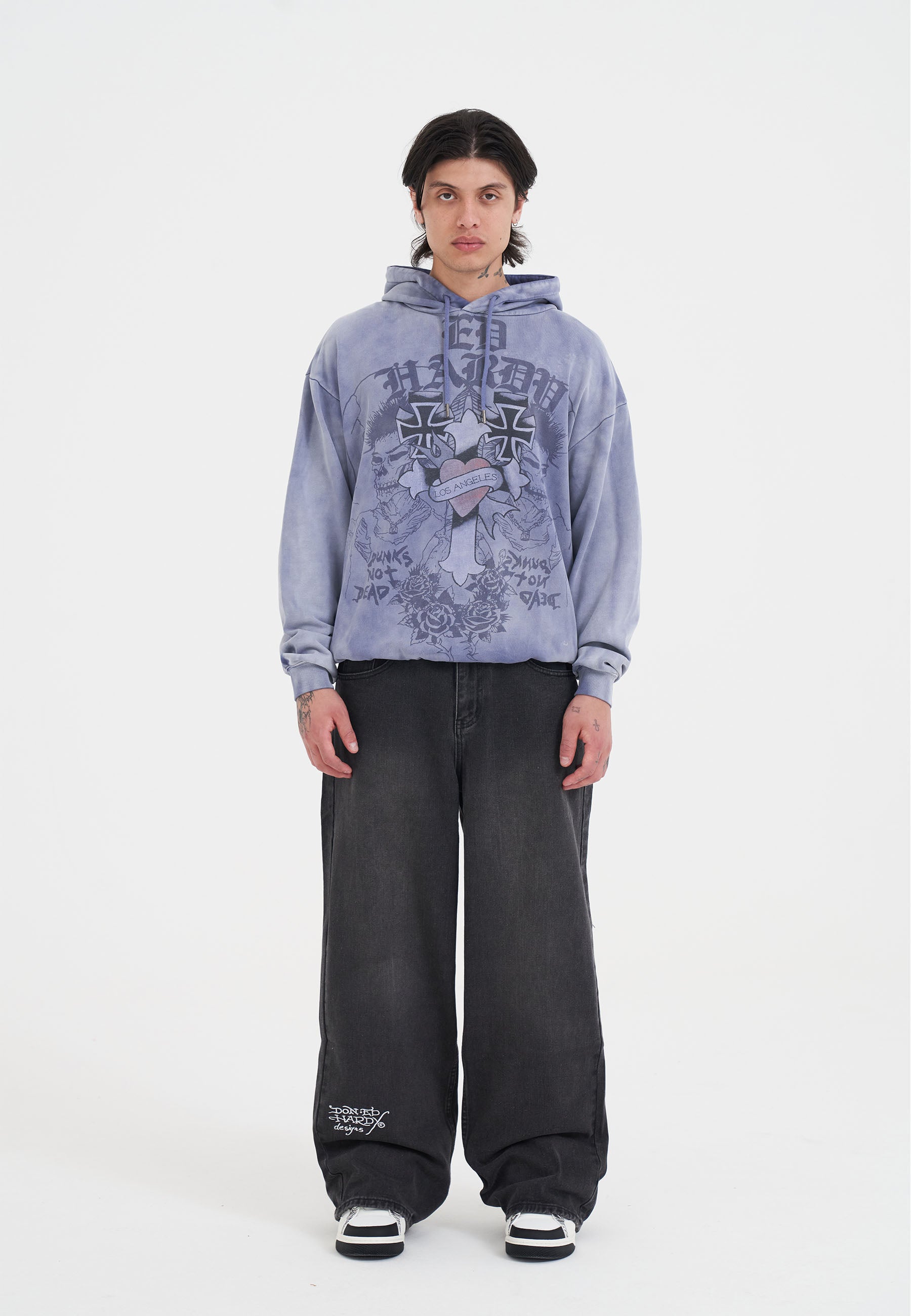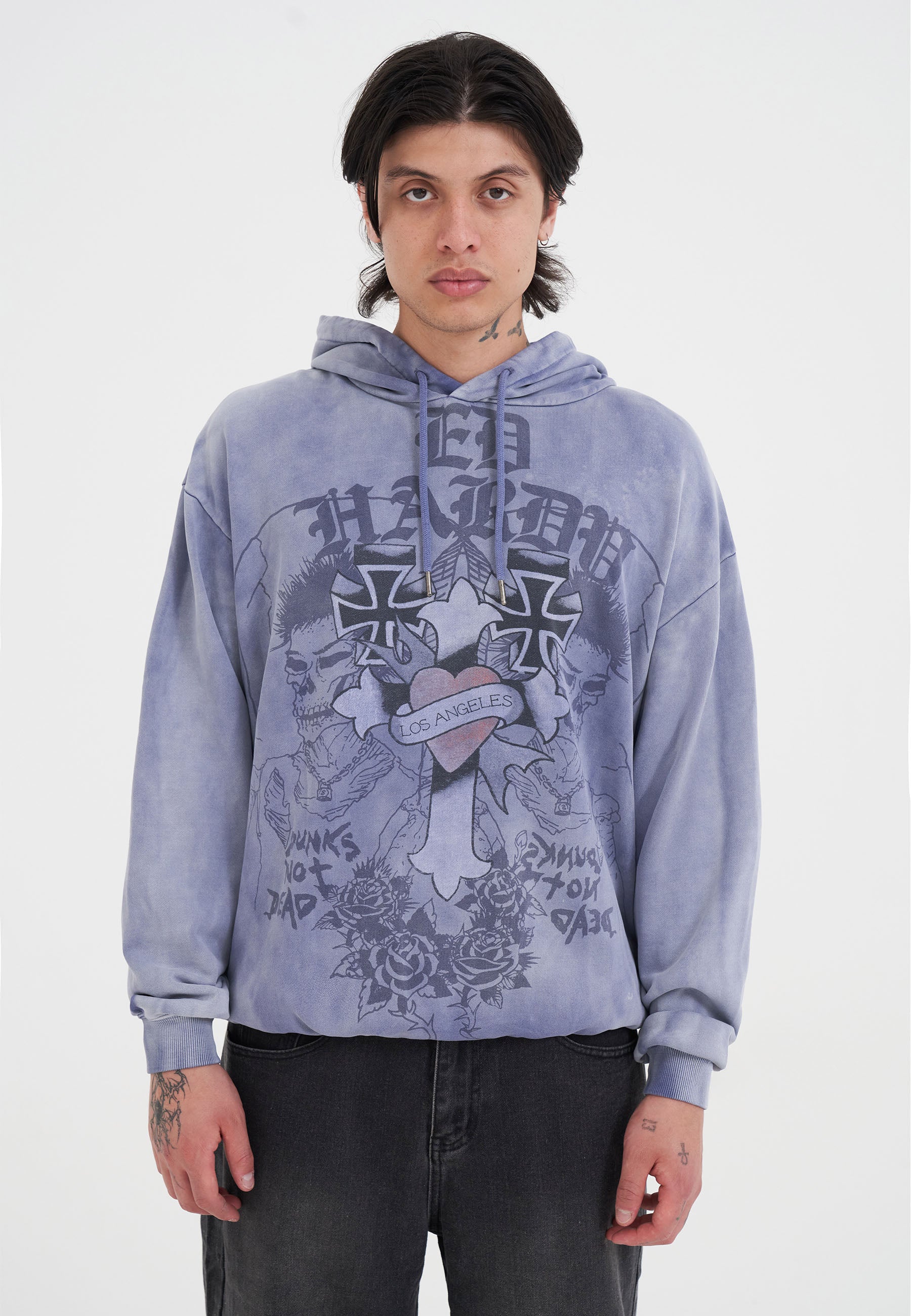 MENS ED HARDY GOTHIC CROSS HOODIE in Indigo