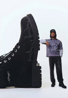 - White flame embroidery graphic decorates the shoe, adding a touch of dynamism and uniqueness.