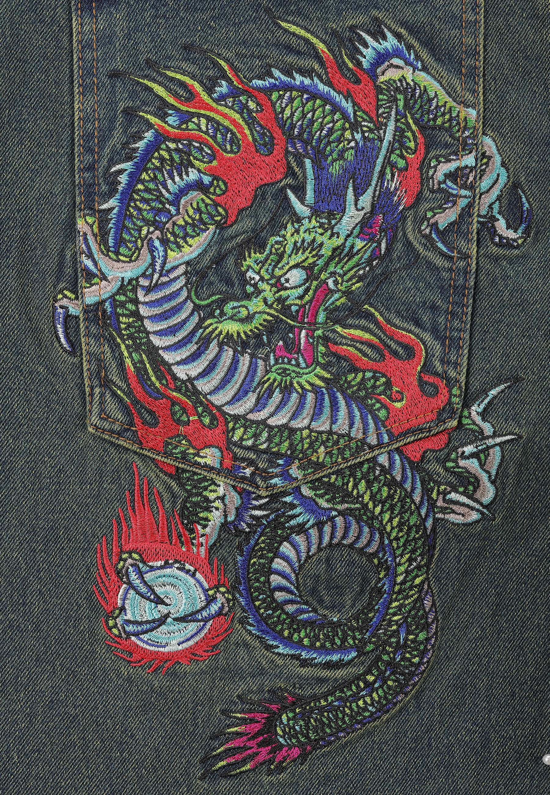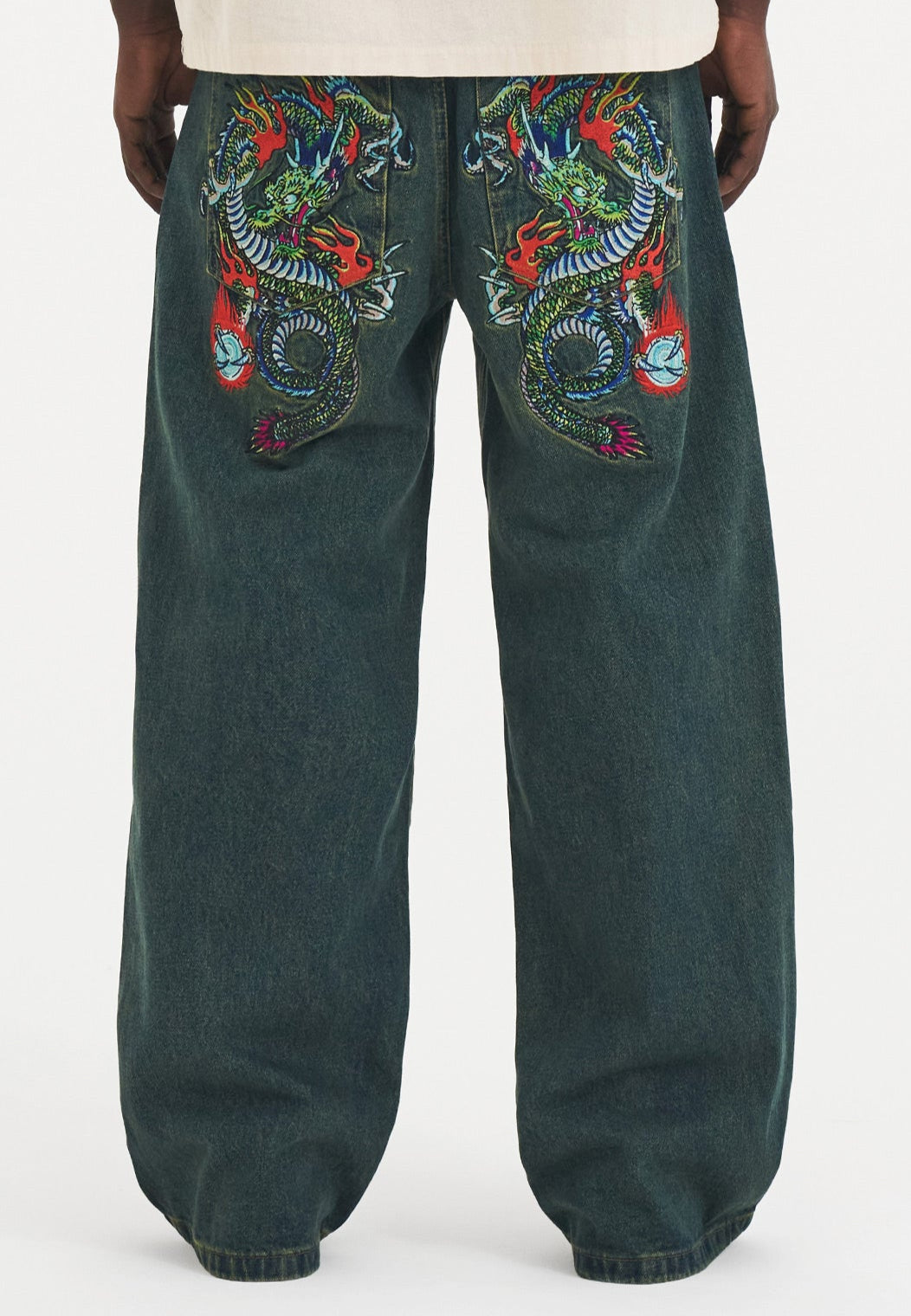 Meet the Fireball Dragon Denim Jeans. Punk could never.