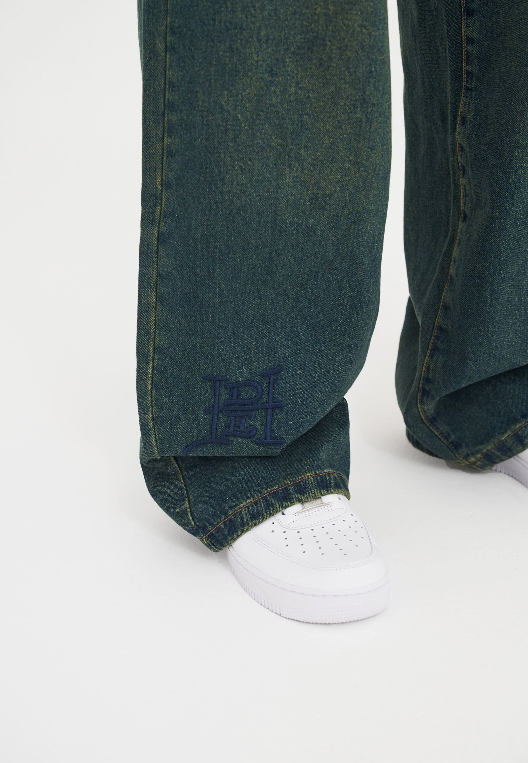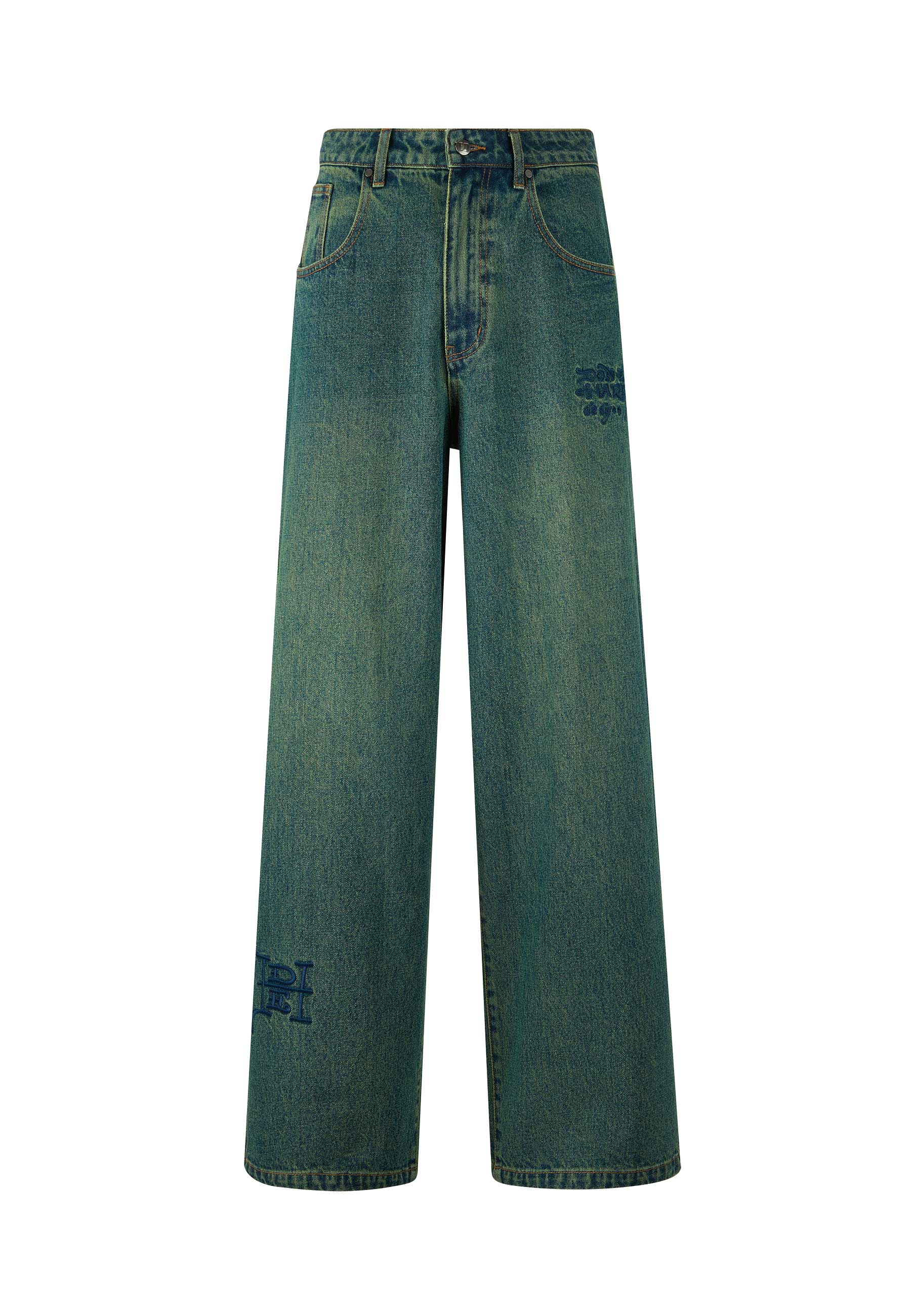 Mens Fireball Dragon Dirty Wash Denim Trousers Jeans - Green