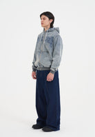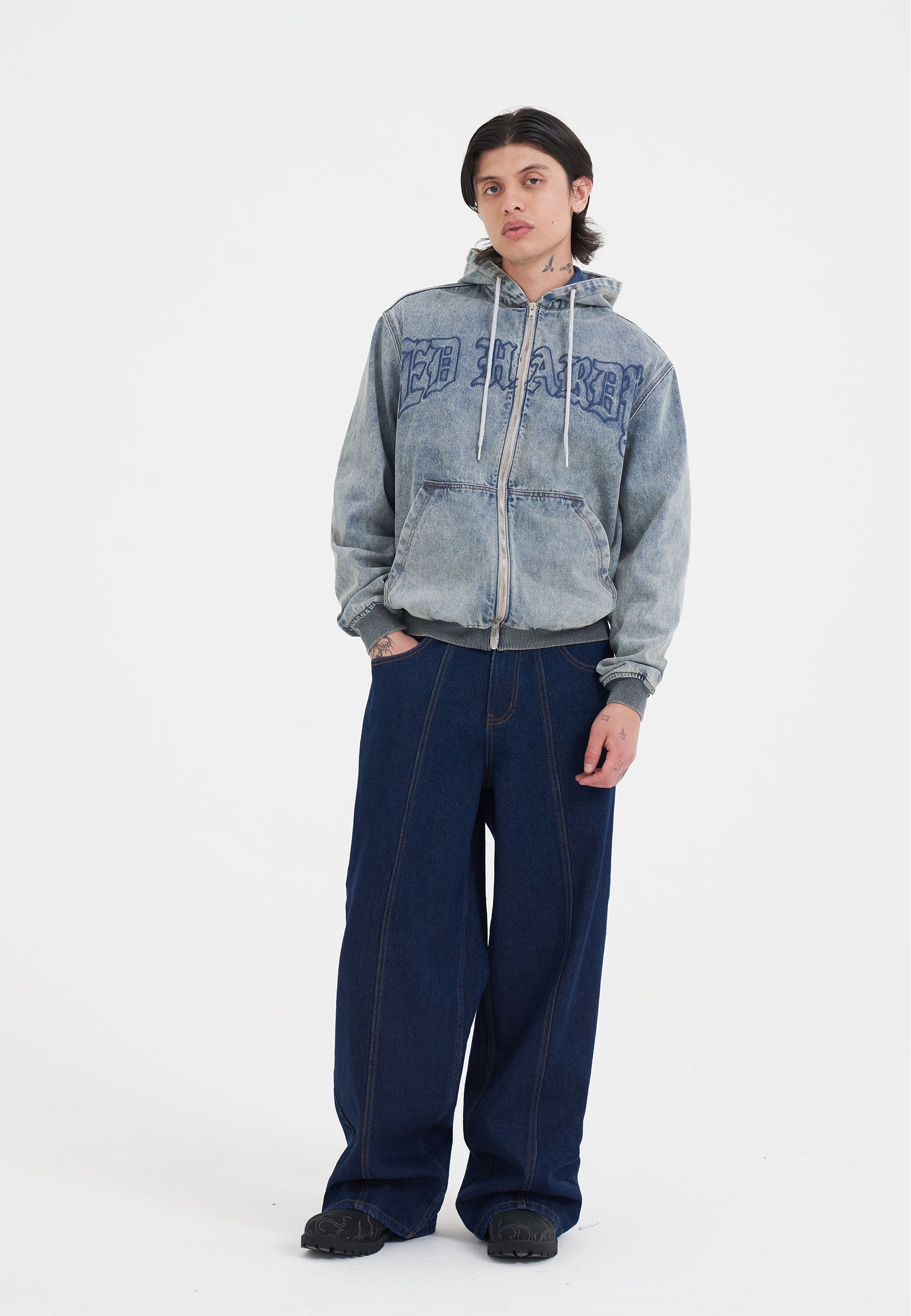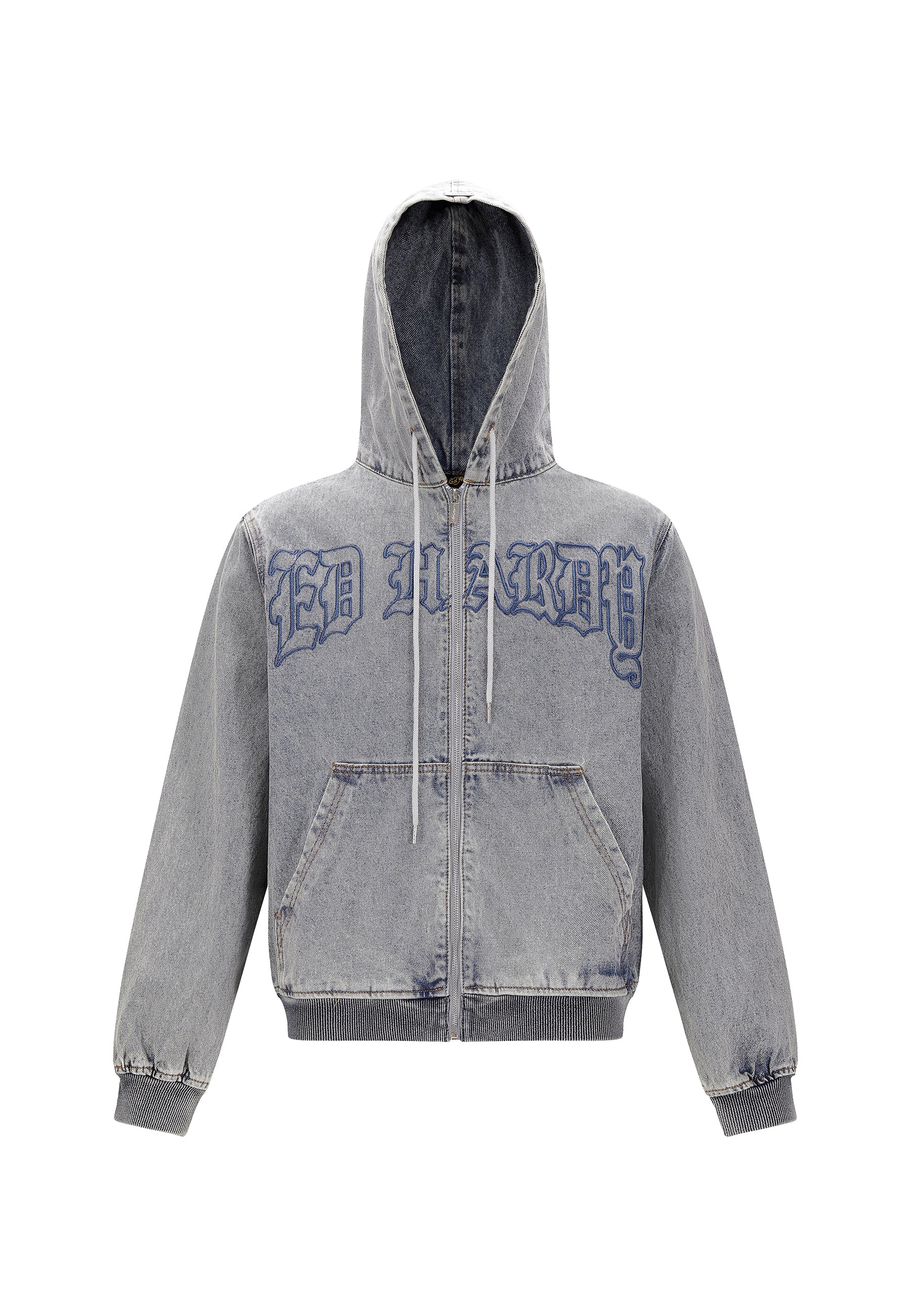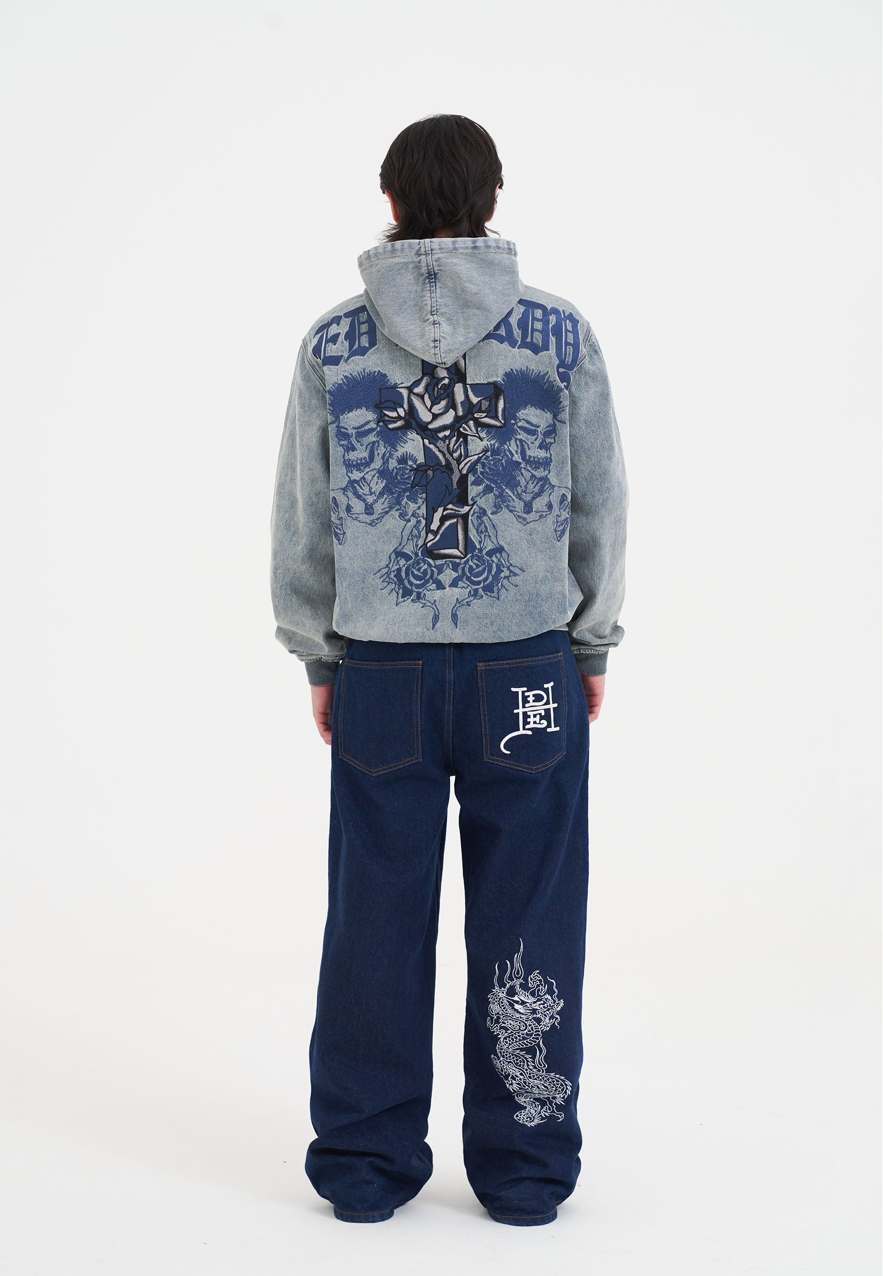 MENS FLAMING CROSS DENIM ZIP THRU HOODIE in Bleach