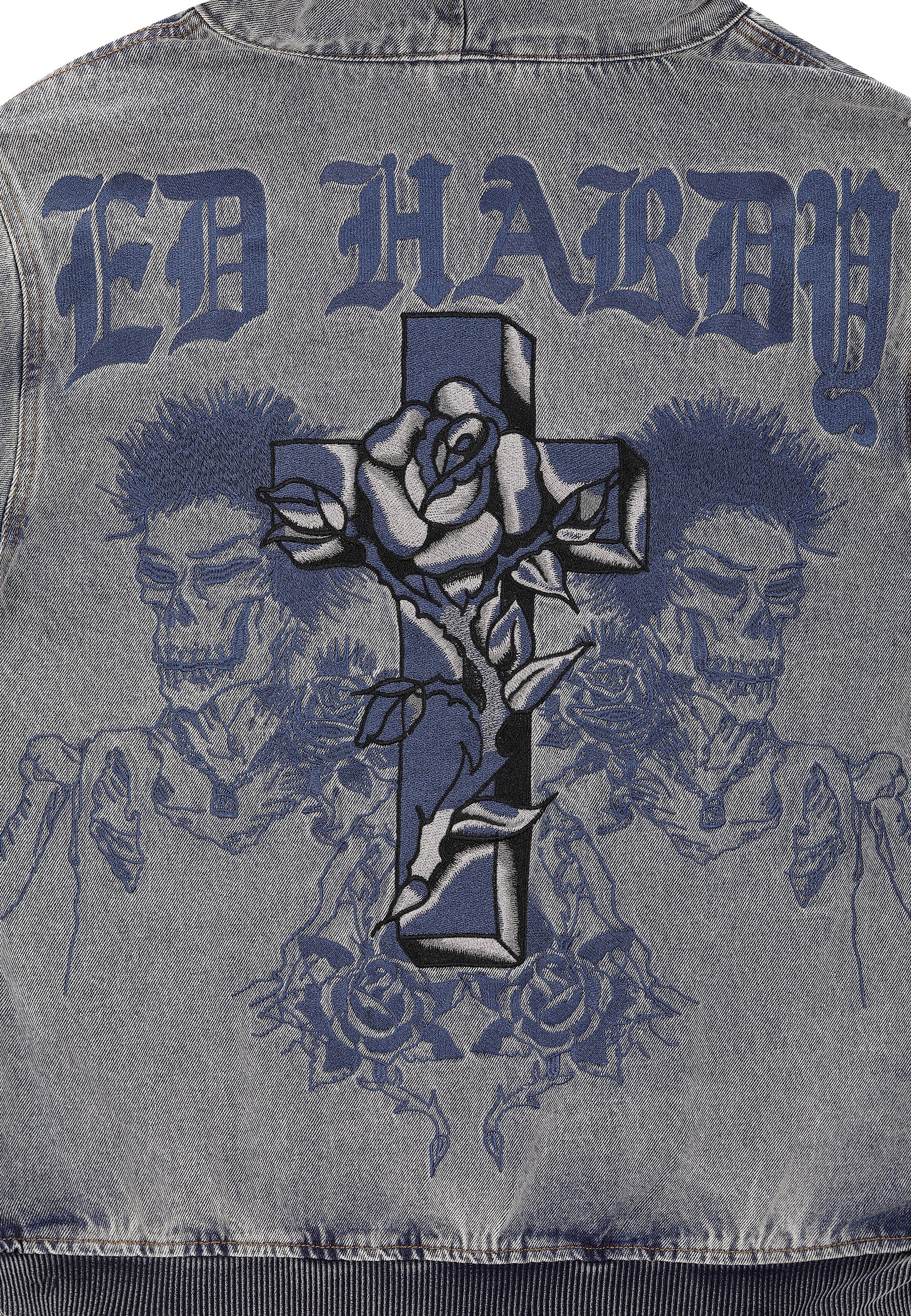 - ED HARDY CROSS EMBROIDERED ARTWORK AT CENTRE BACK