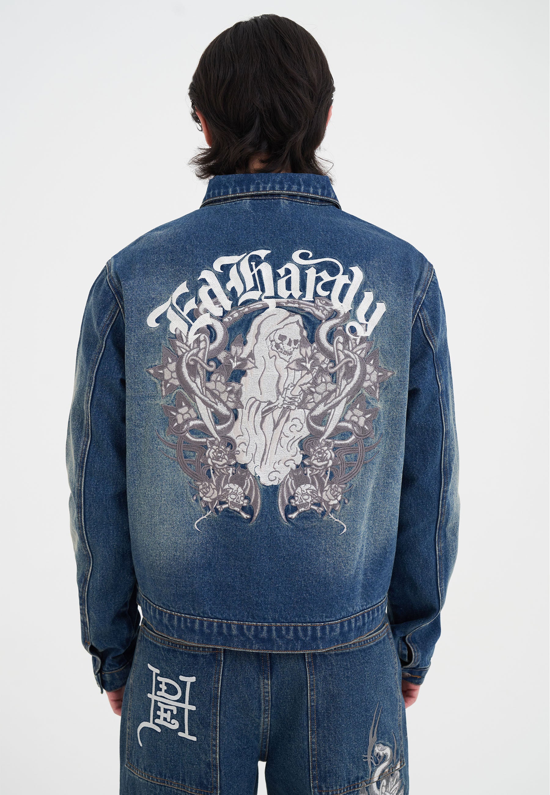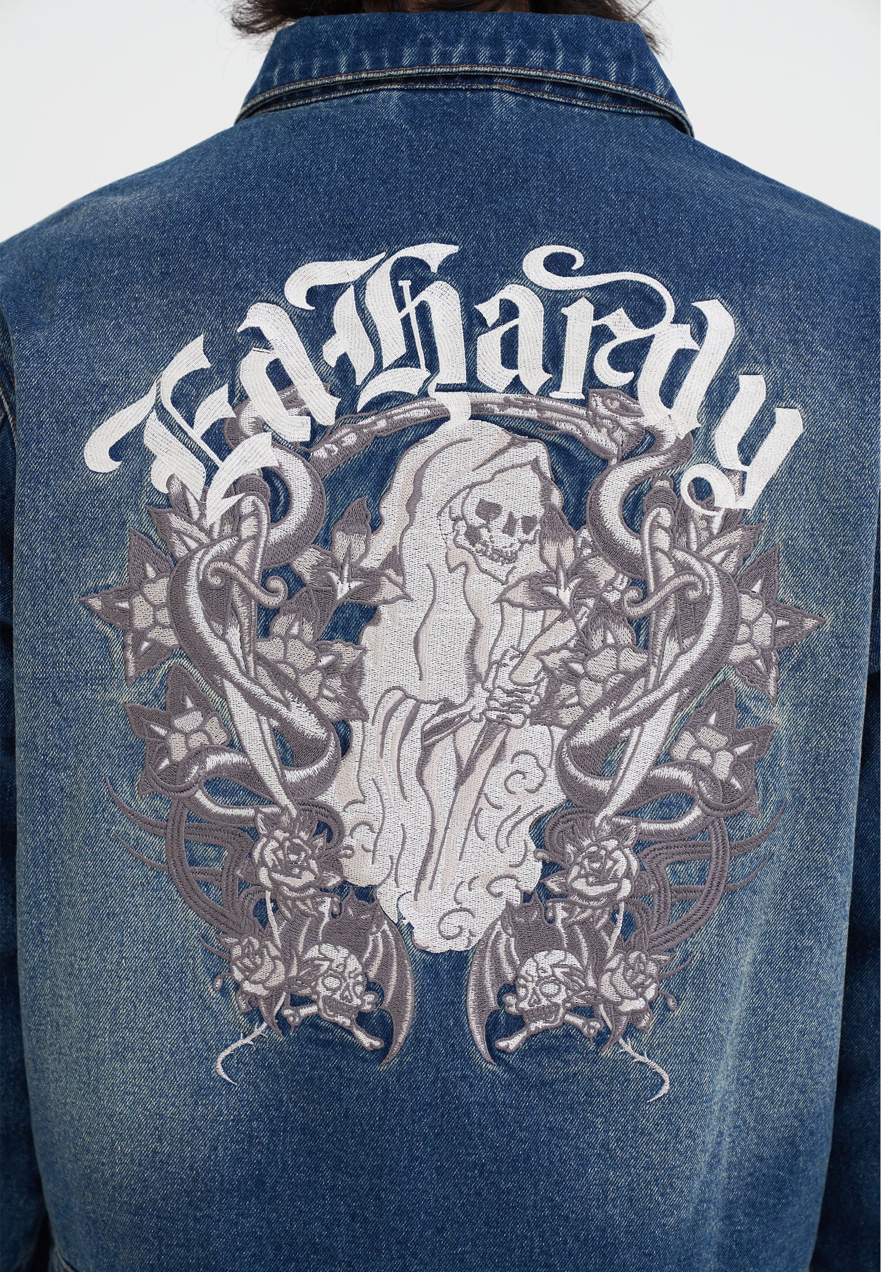 - GOTHIC ED HARDY SKULL EMBROIDERY AT CENTRE BACK