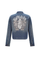 MENS FLAMING SKULL DENIM JACKET in Indigo