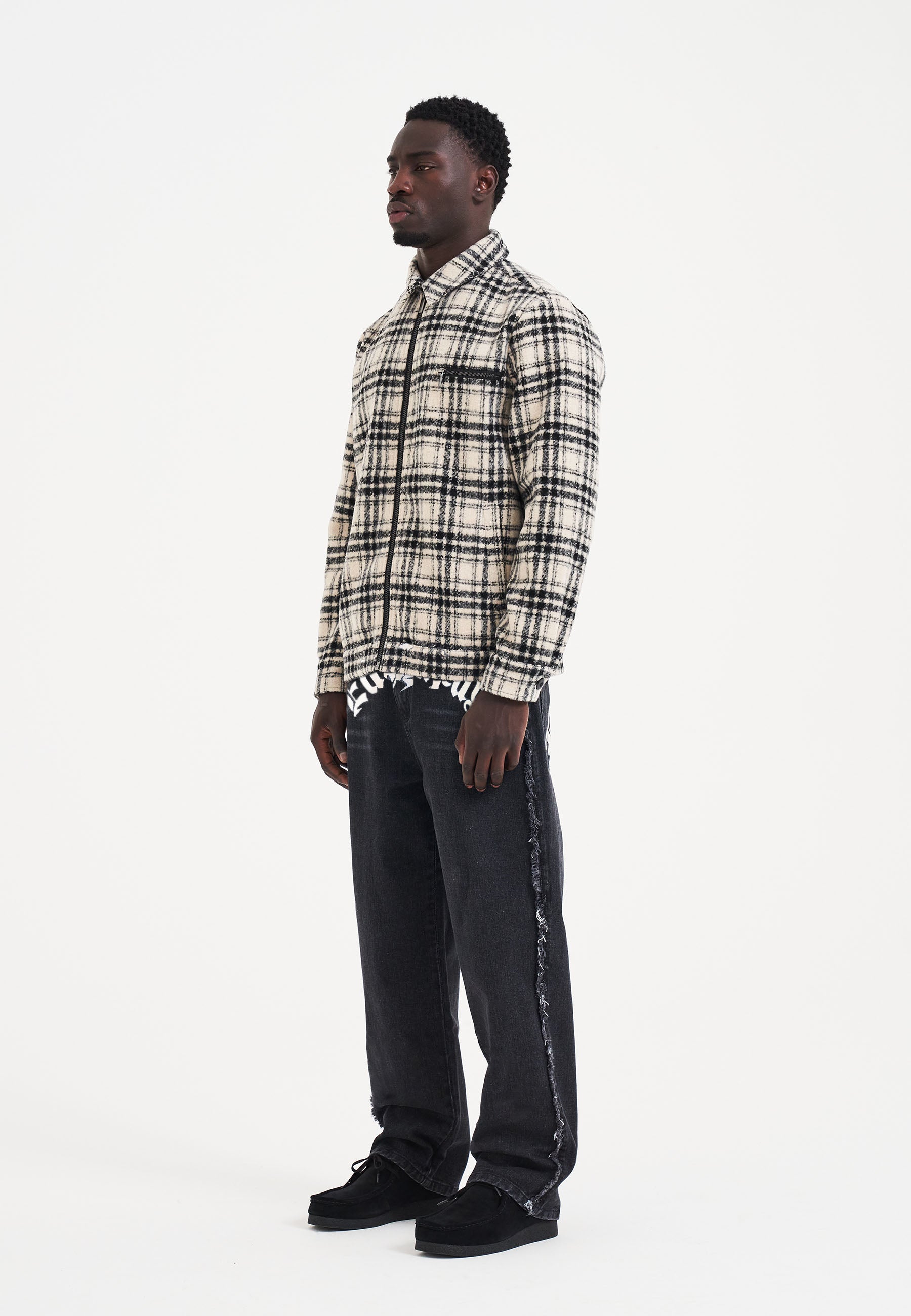 Welcome to a new era of Ed Hardy: the Gothic Frayed Panel Denim Jeans in black, showcasing the evolution of the brand.